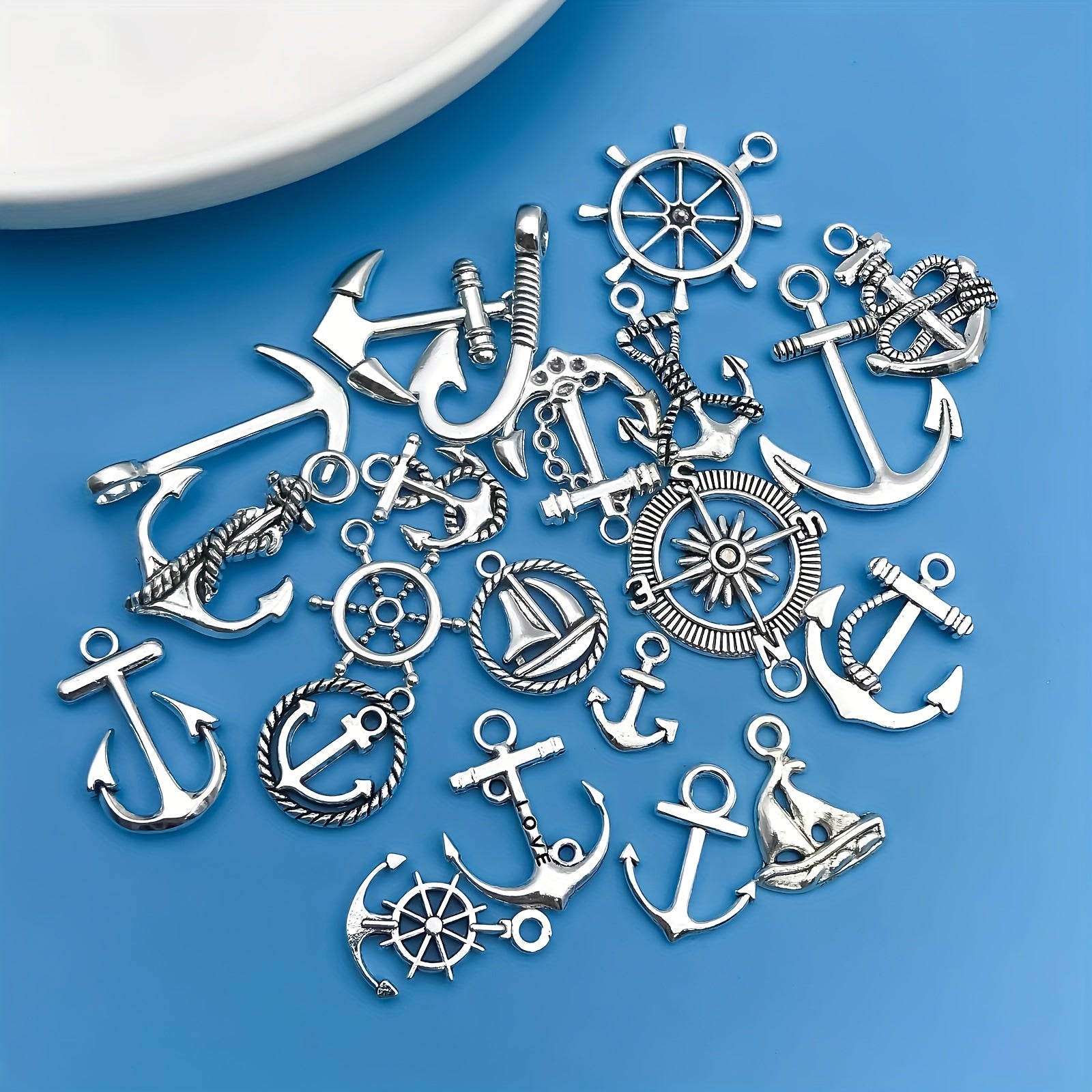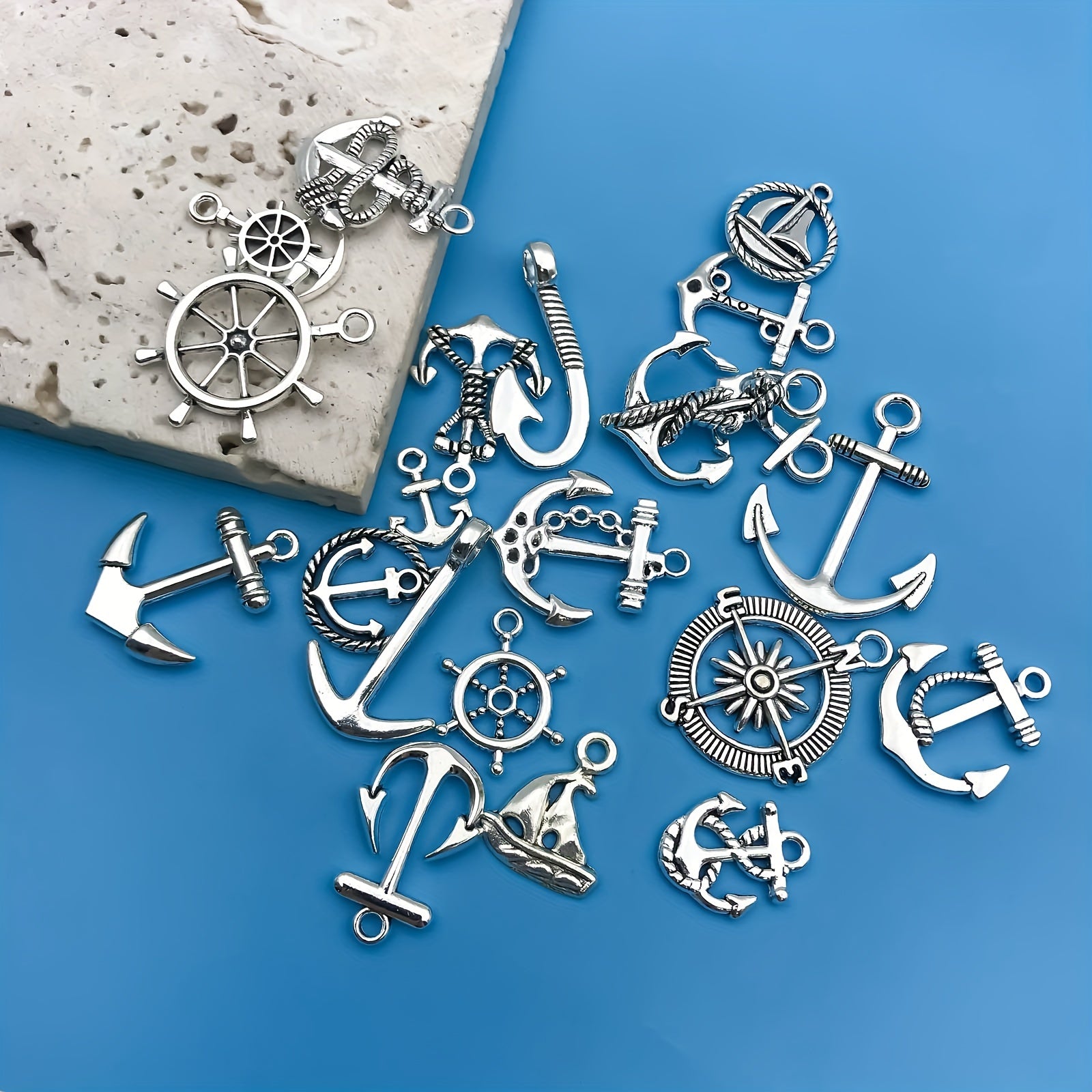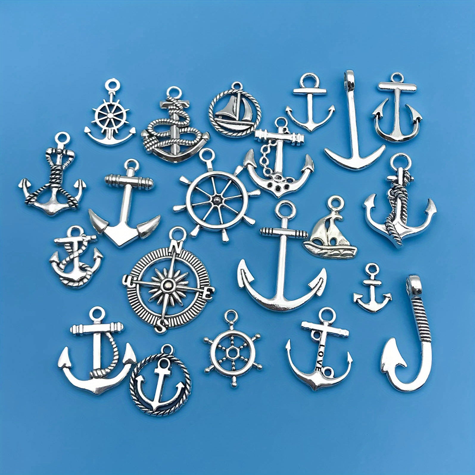 Create your own unique jewelry with this set of 20 anchor shaped charms pendants. Perfect for necklaces, bracelets, earrings, and more.