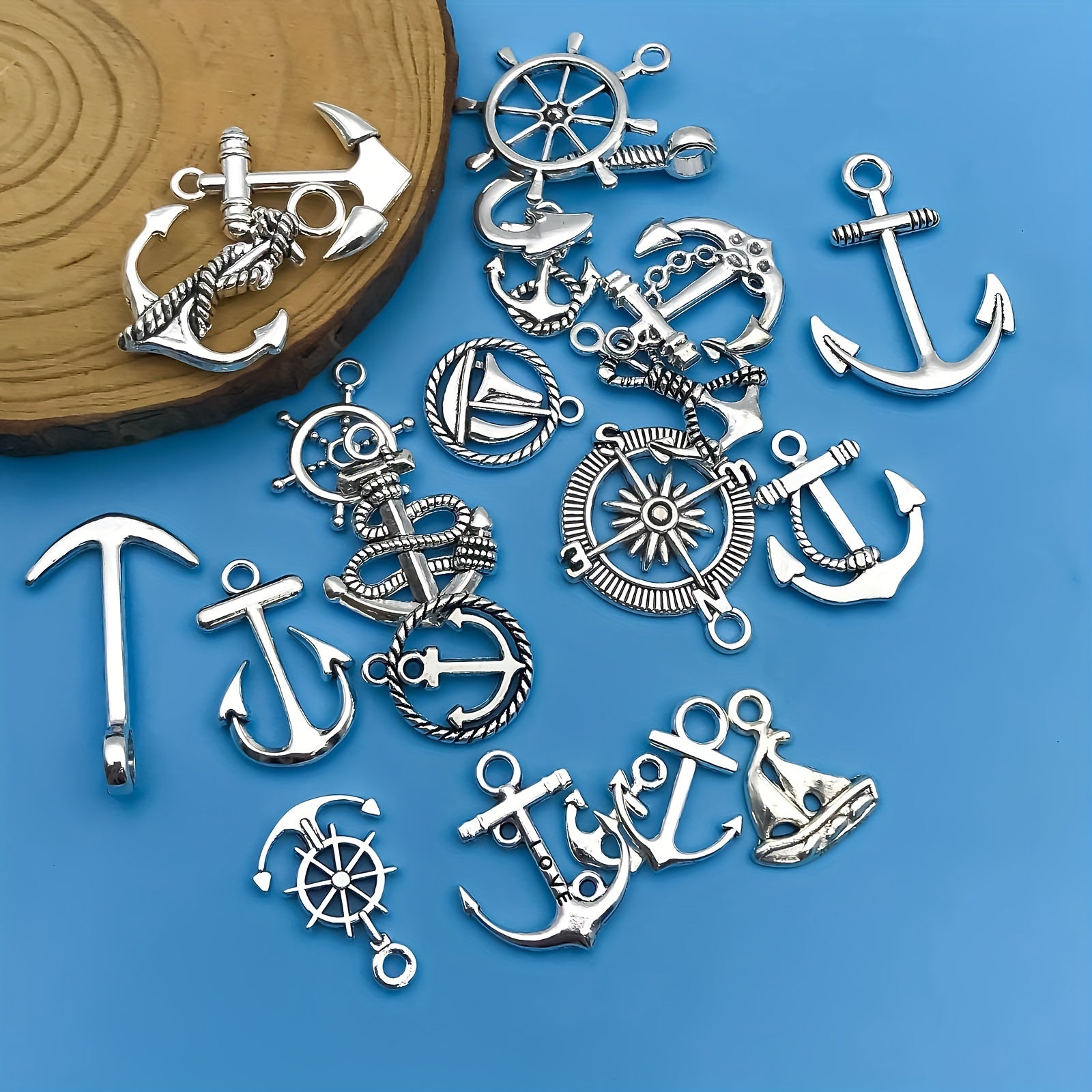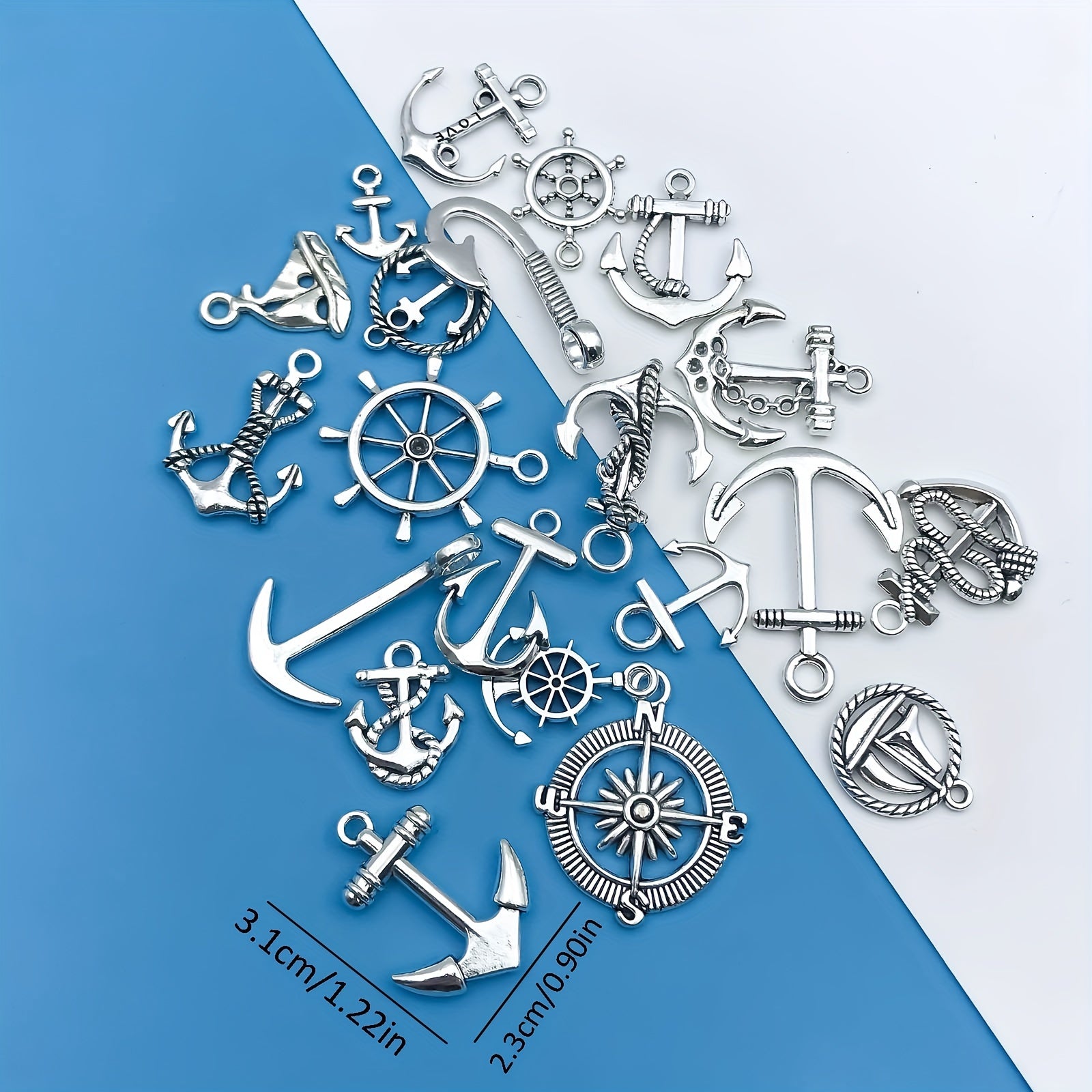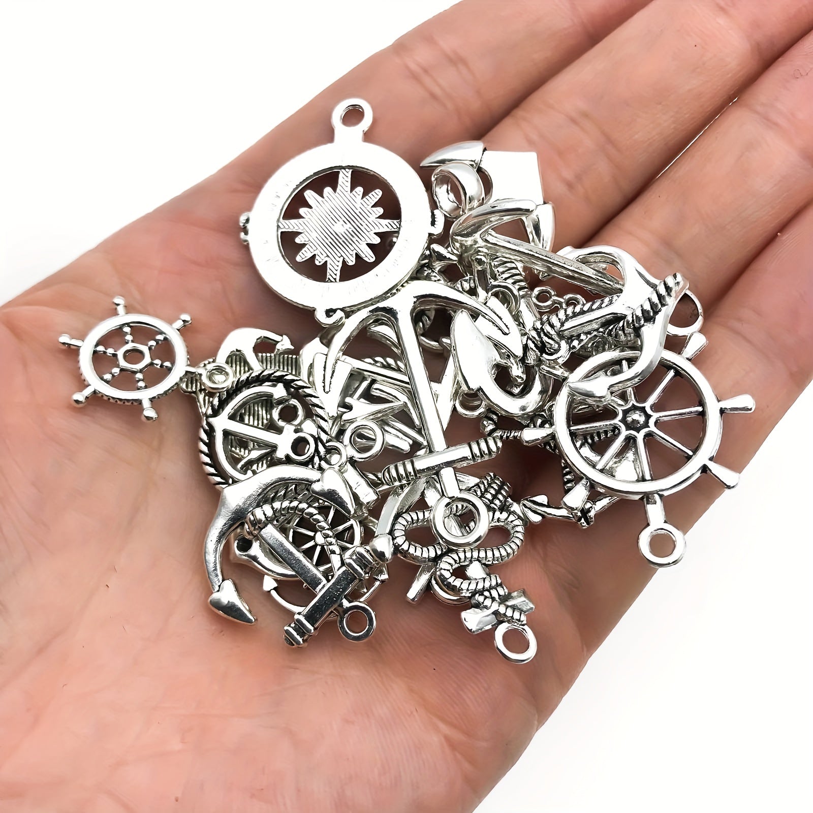 Create your own unique jewelry with this set of 20 anchor shaped charms pendants. Perfect for necklaces, bracelets, earrings, and more.