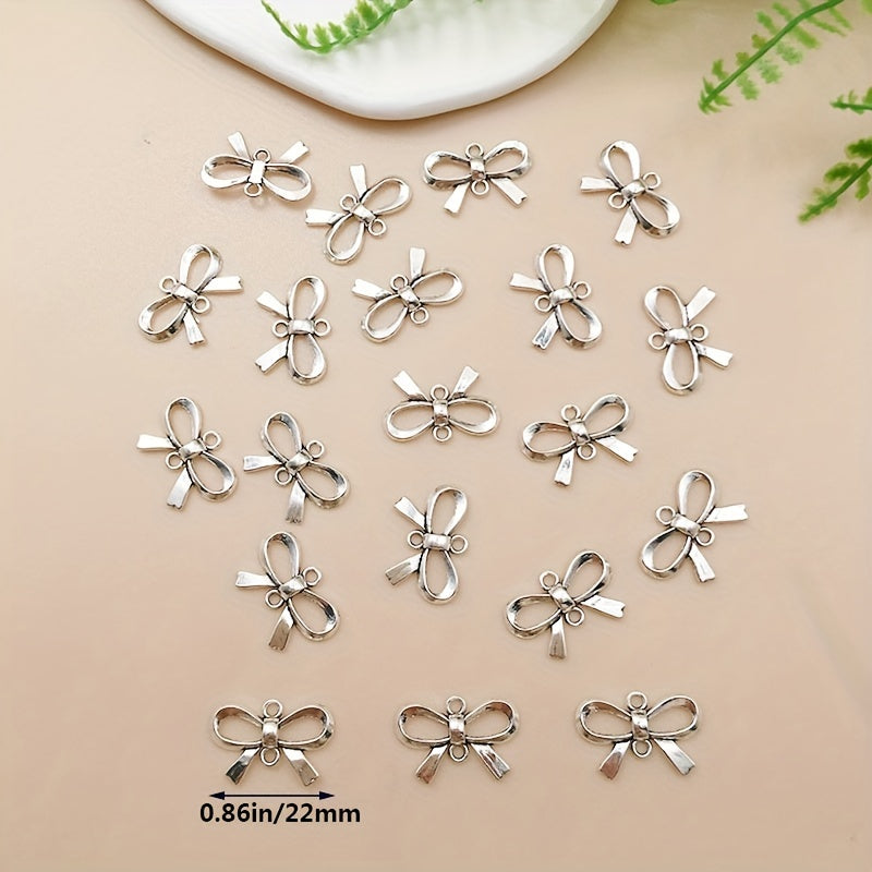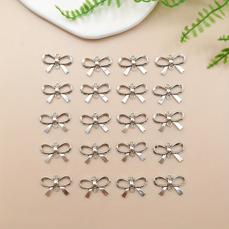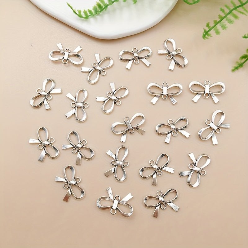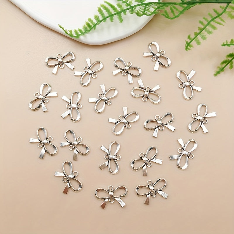These antique silvery bow shape pendants are perfect for creating your own necklaces, bracelets, and other jewelry pieces. Add a touch of elegance to your DIY projects with these charms.