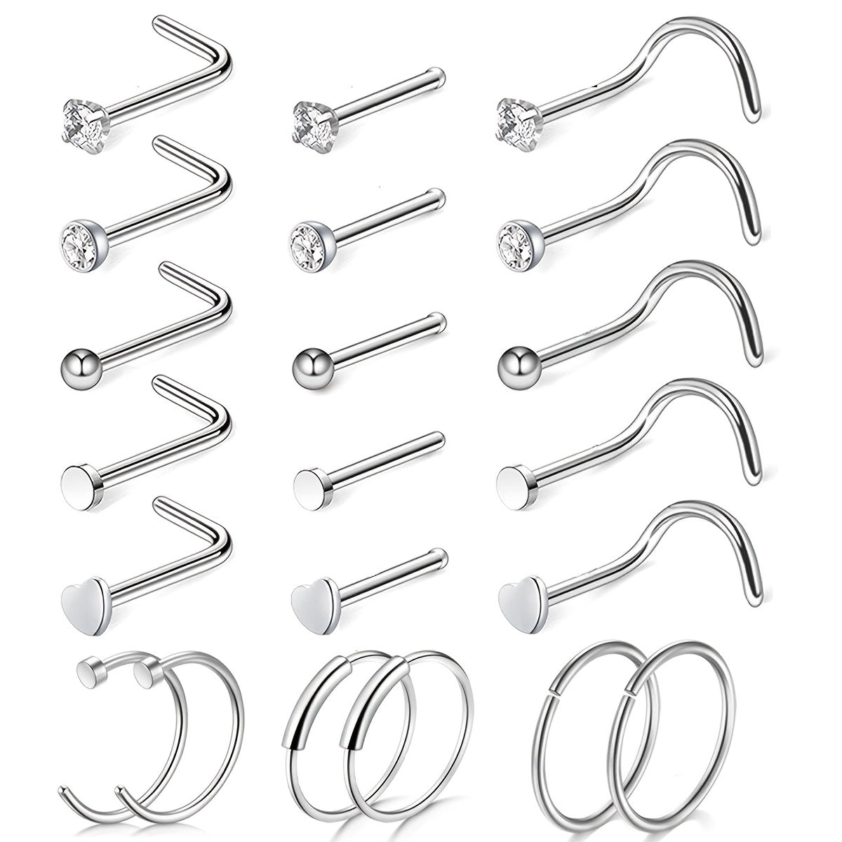 21pcs Nose Rings Surgical Steel Nose Piercing Jewelry For Women Girls