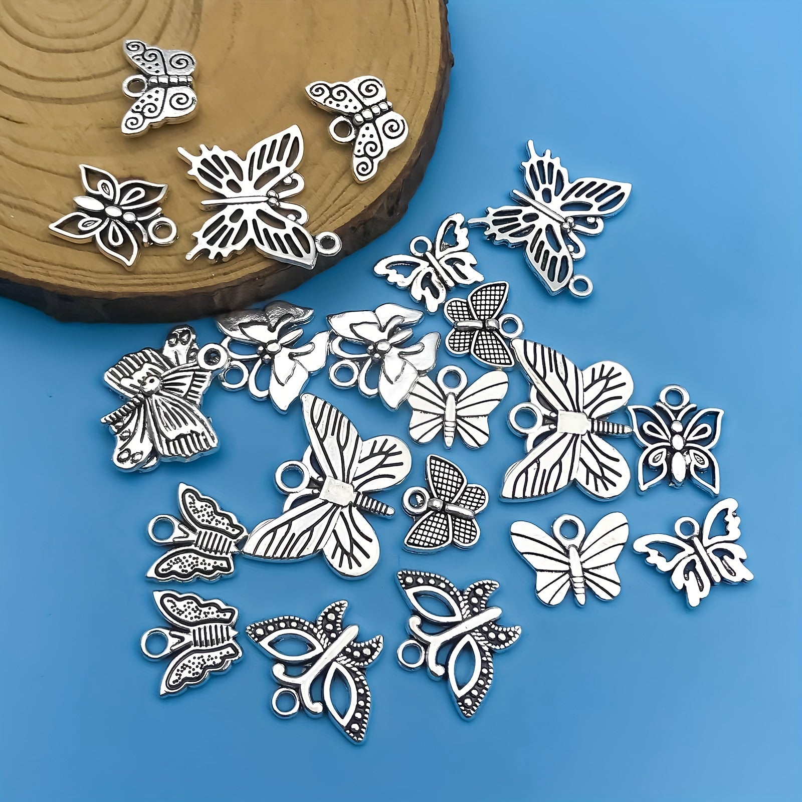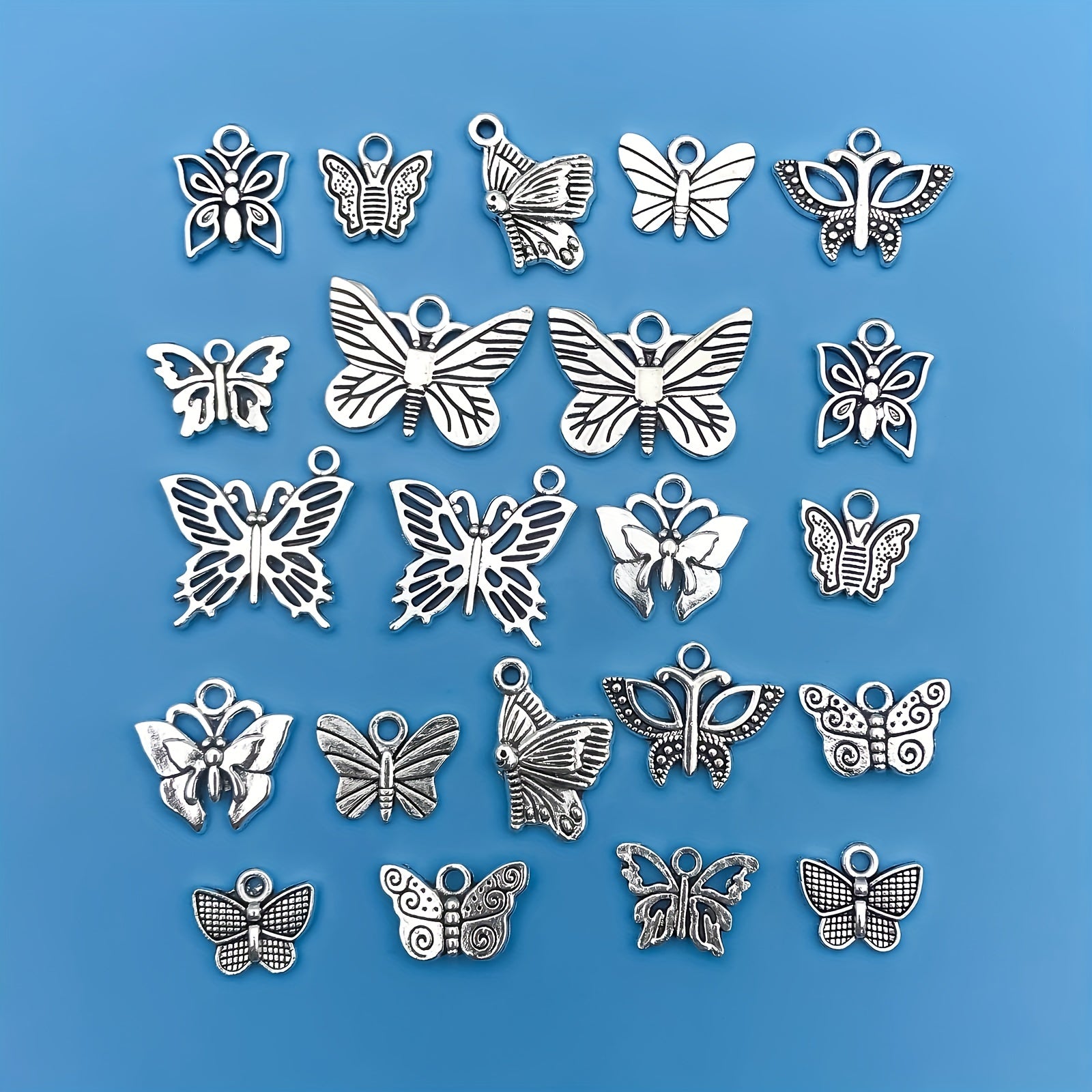 Create beautiful jewelry with this set of 22 butterfly shaped charms pendants. Made of zinc alloy with an antique silver finish, these charms are perfect for necklaces, bracelets, and earrings.