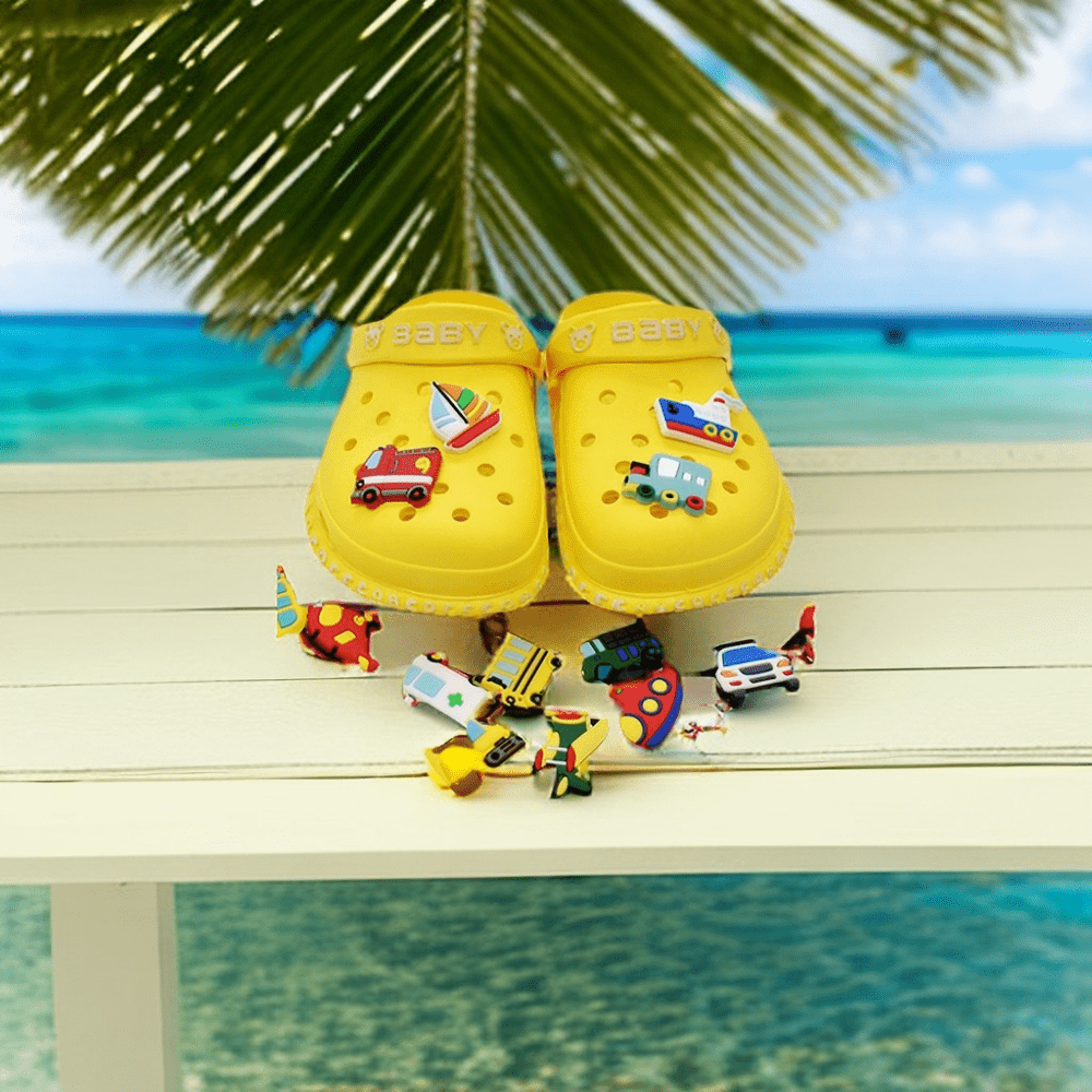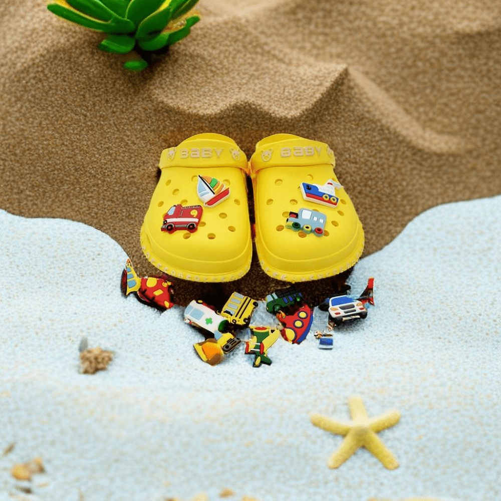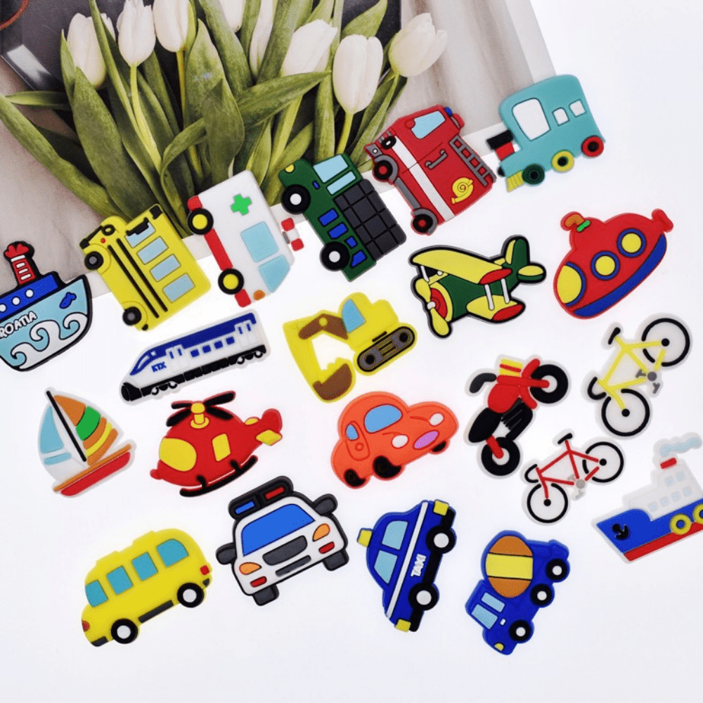 Enhance your garden shoes with these 22pcs cartoon vehicle themed rubber shoe buckles. Made of soft PVC rubber, these removable buckles are easy to attach and add a fun touch to your footwear. Perfect for DIY shoe decoration projects.