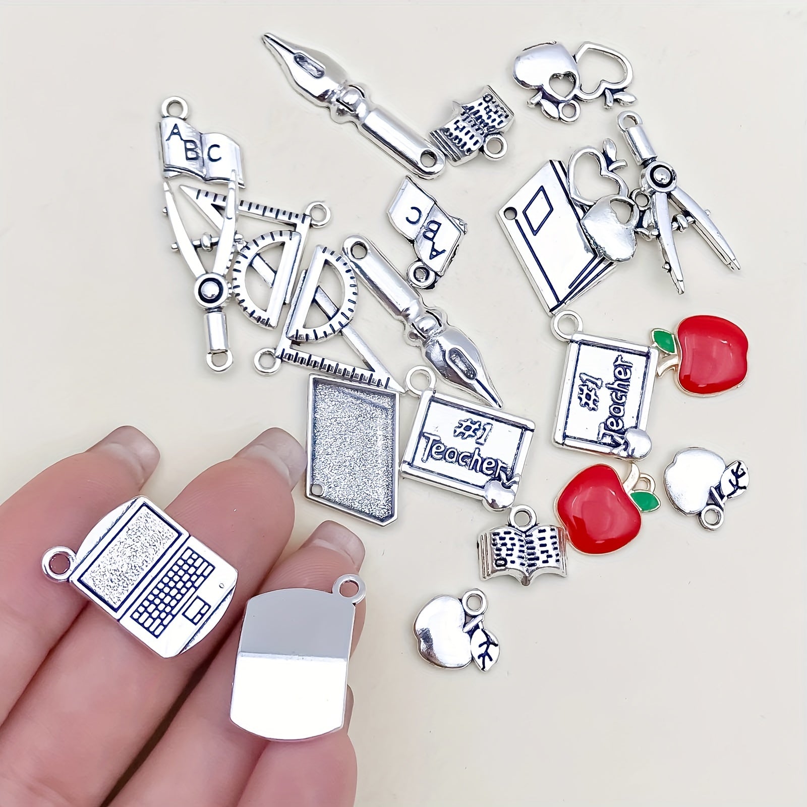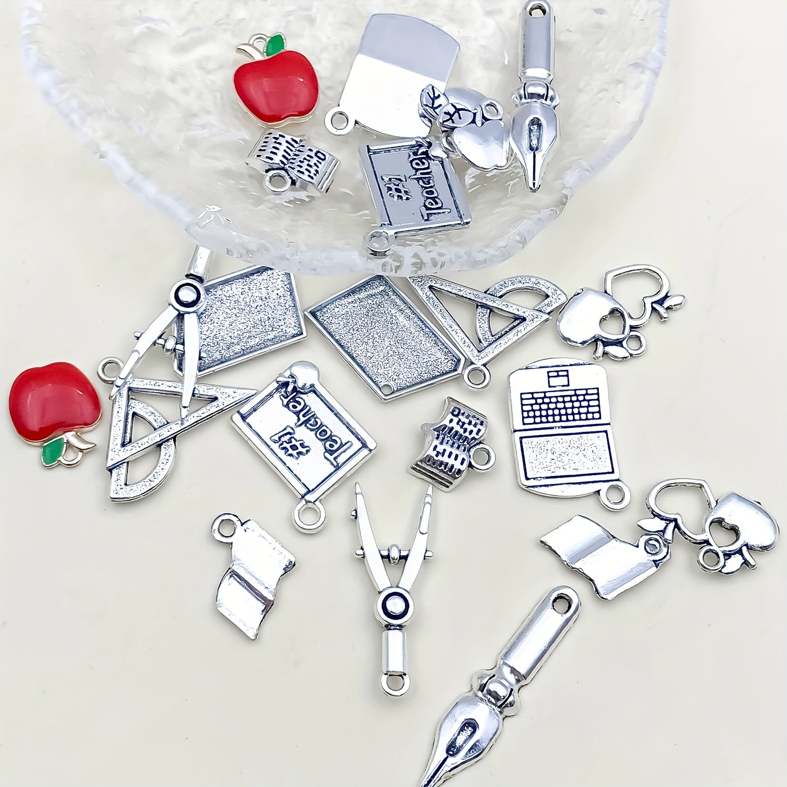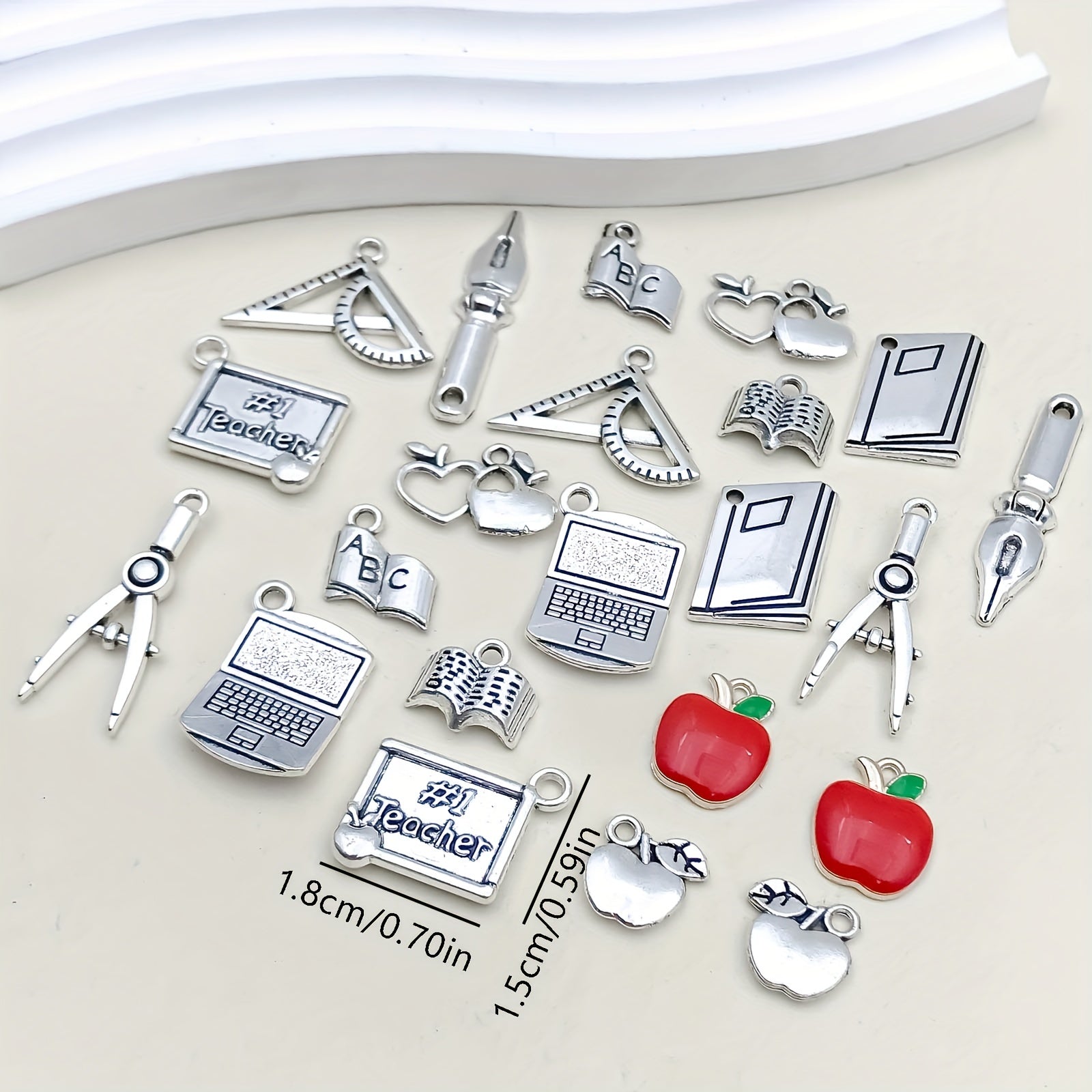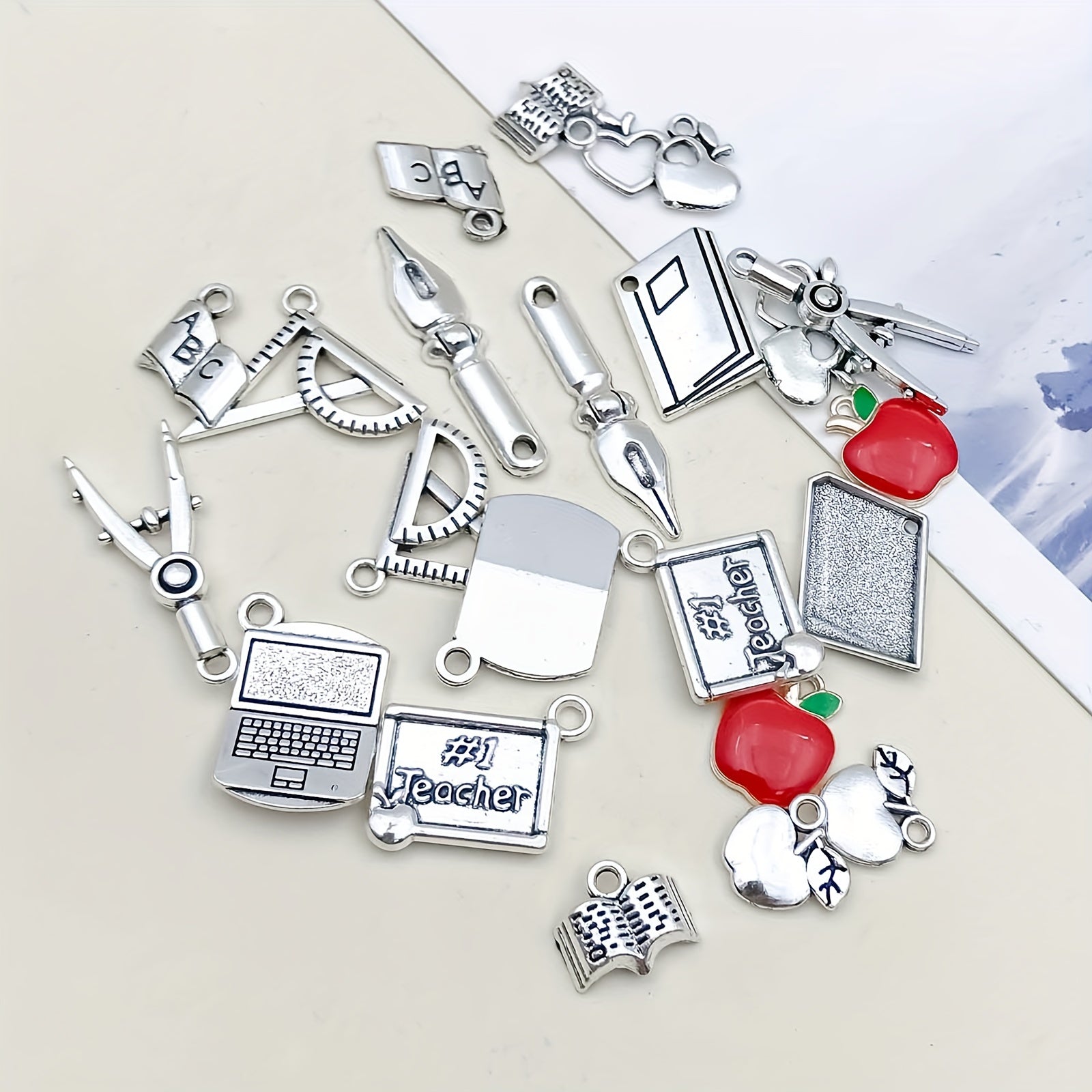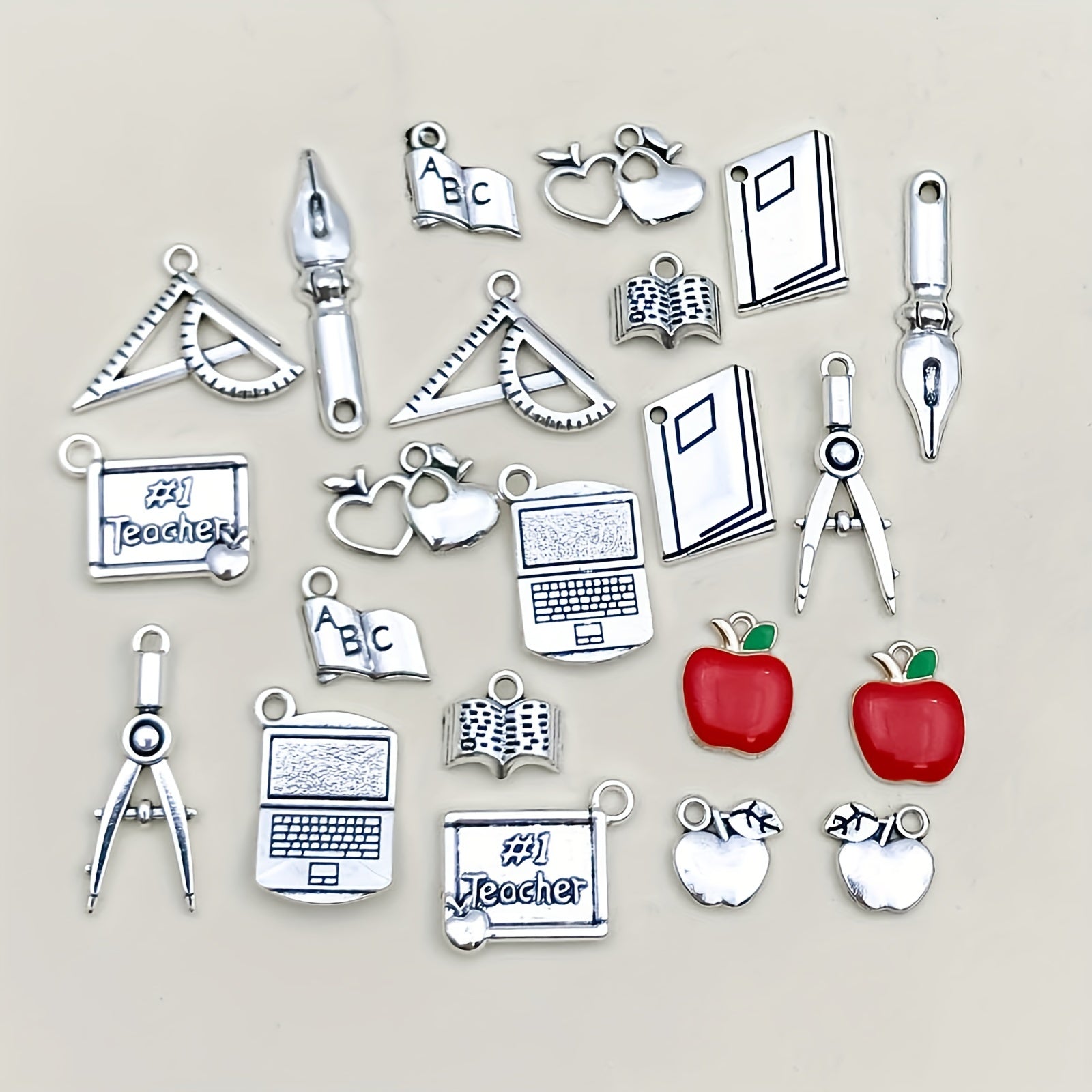 Enhance your DIY jewelry with this set of zinc alloy pendants. Perfect for teachers' day gifts, each charm is shaped like a book, pen, or ruler. Mix and match to create unique necklaces, bracelets, or earrings.