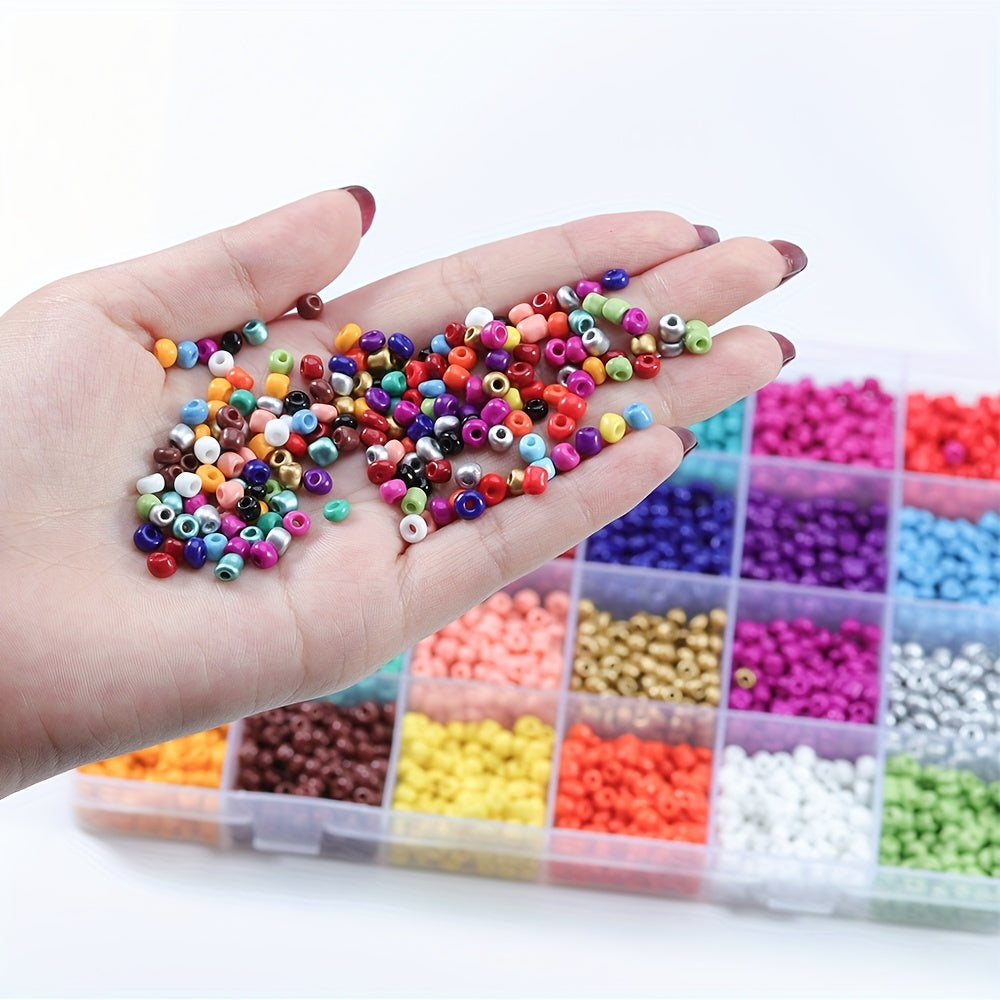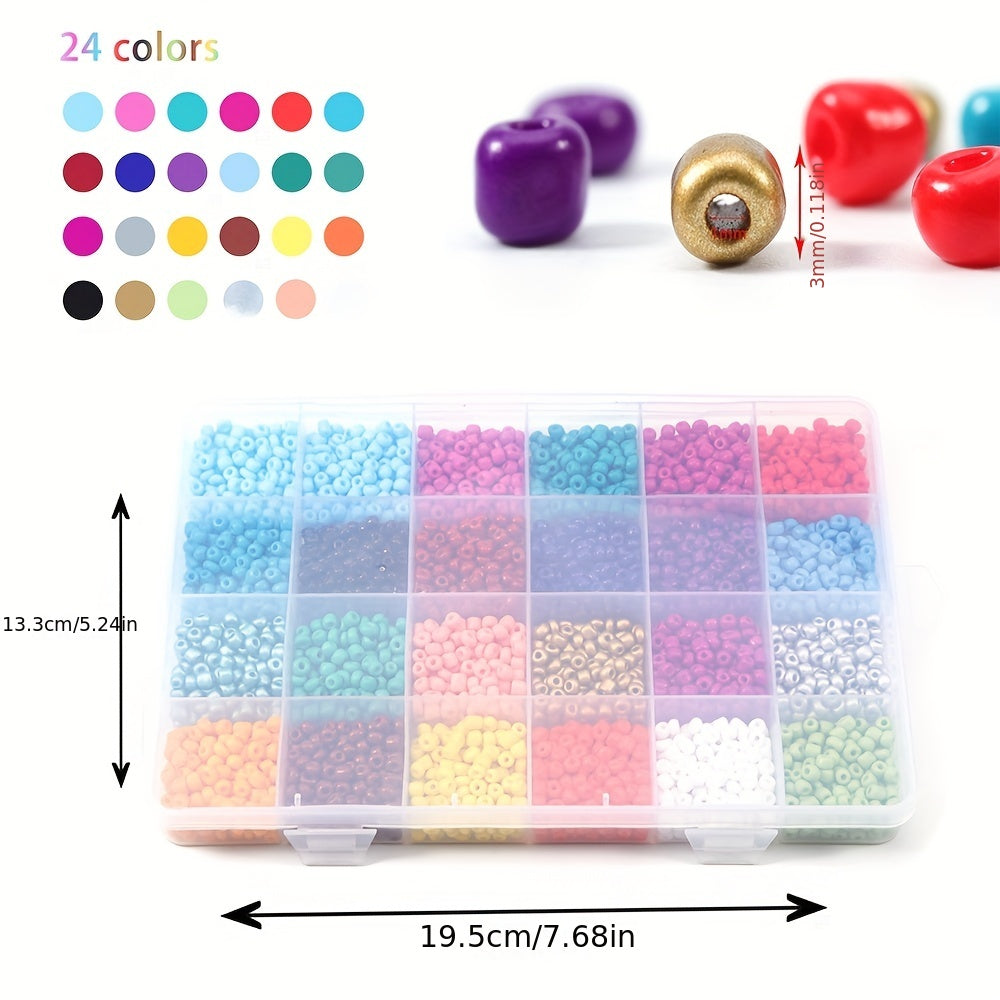Create beautiful DIY jewelry with this set of 24 compartments containing 24 colors of glass rice beads. Perfect for crafting unique accessories.