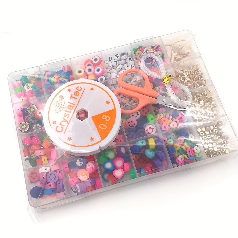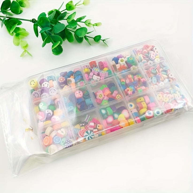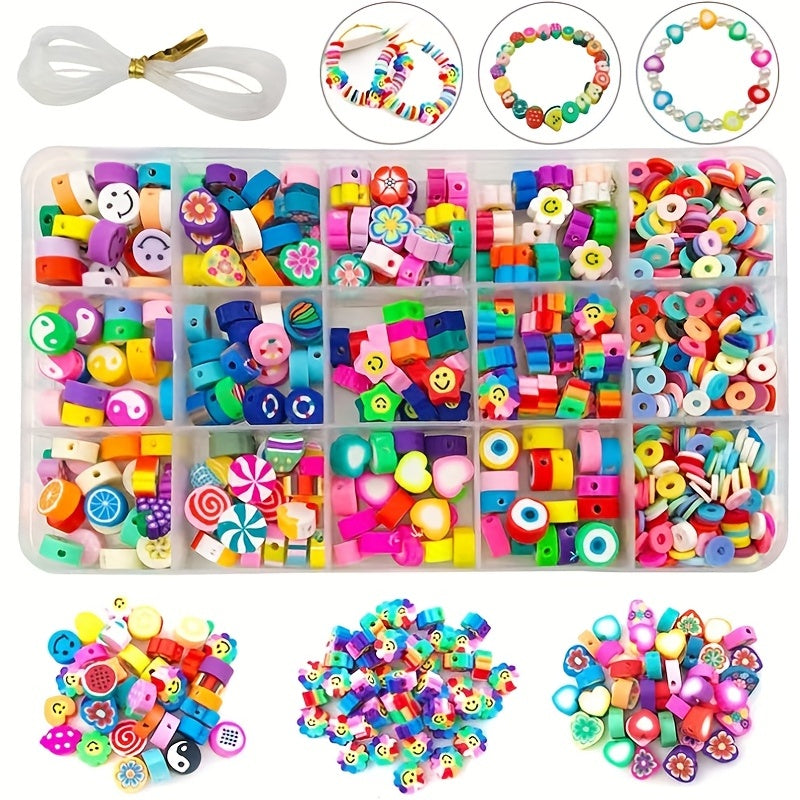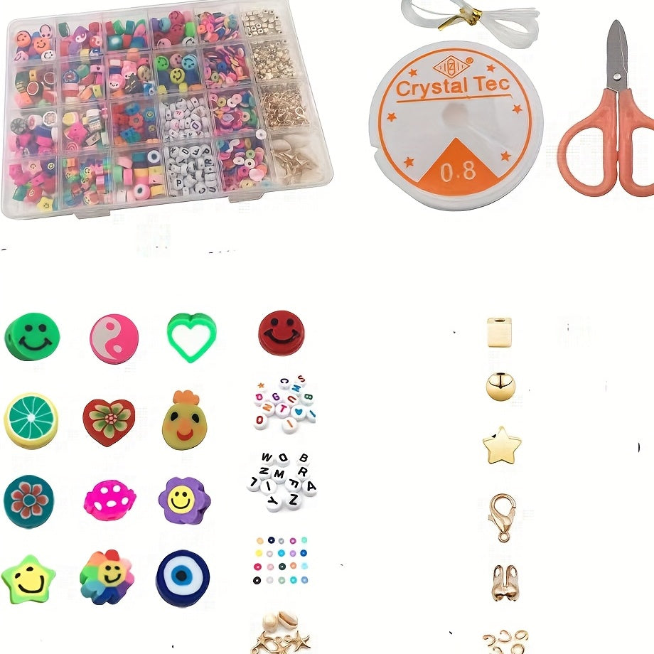 Create your own unique jewelry pieces with this set of 24 soft pottery beads featuring fruit smiley face designs. Perfect for bracelets and necklaces.