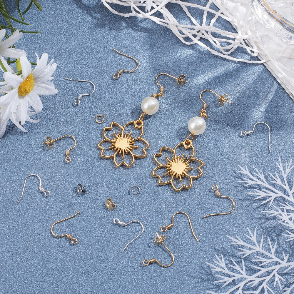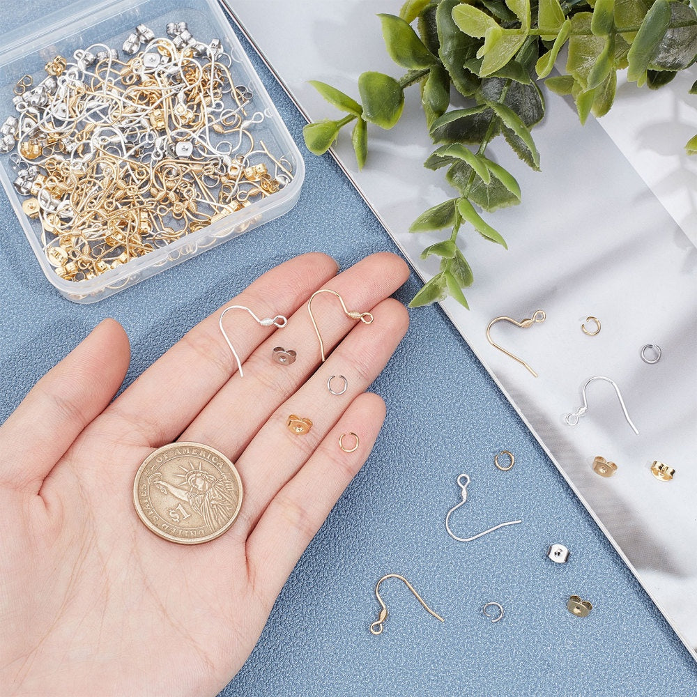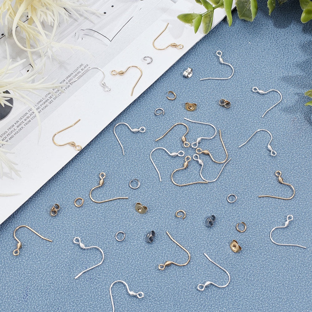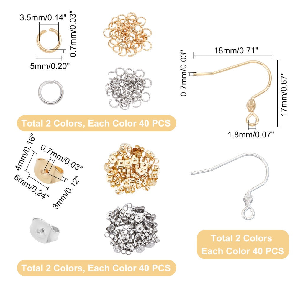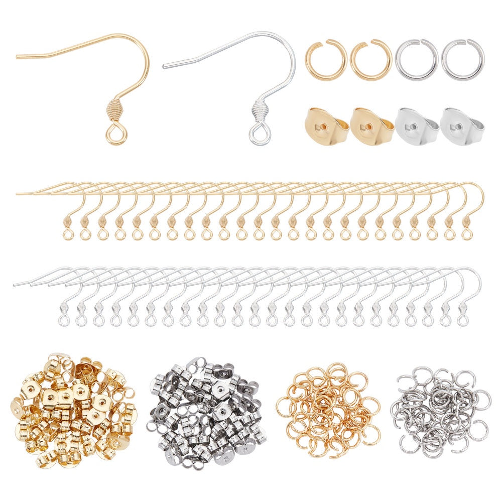 This set includes 240 pieces of 304 stainless steel mixed DIY earrings accessories, featuring earring hooks, ear studs, and open jump rings. Ideal for crafting unique and personalized earrings.