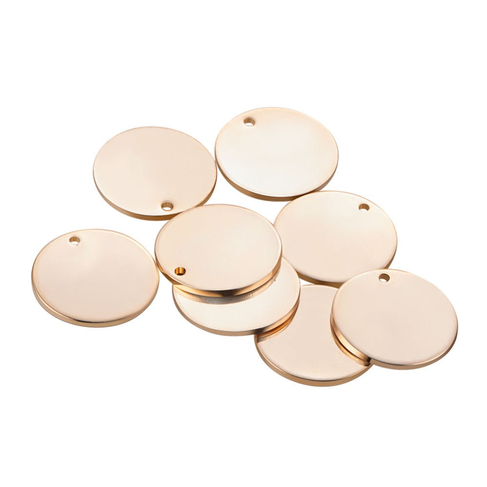 Create beautiful bracelets and earrings with these flat round stamping blanks. The gold-plated charms add a touch of elegance to your handmade jewelry pieces.