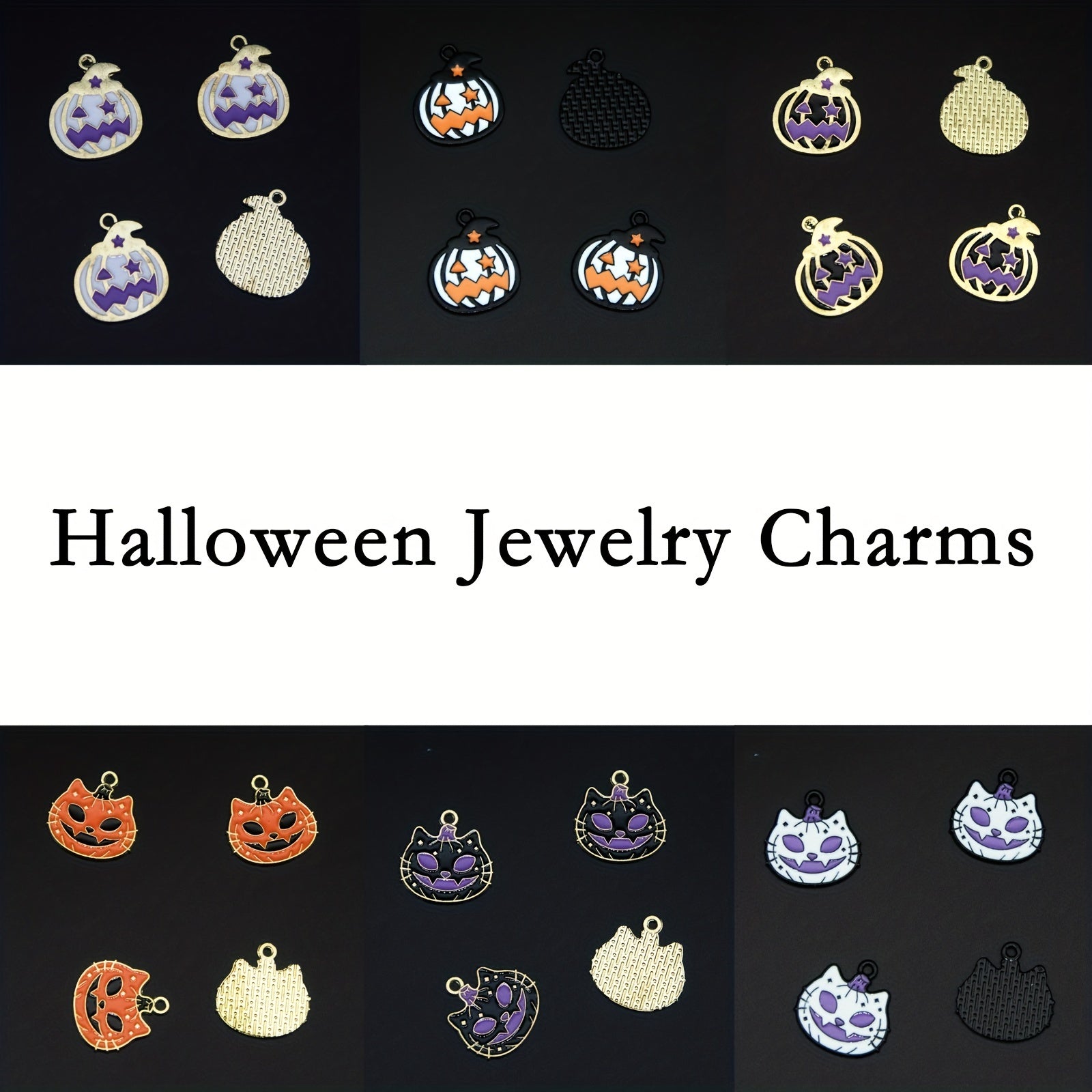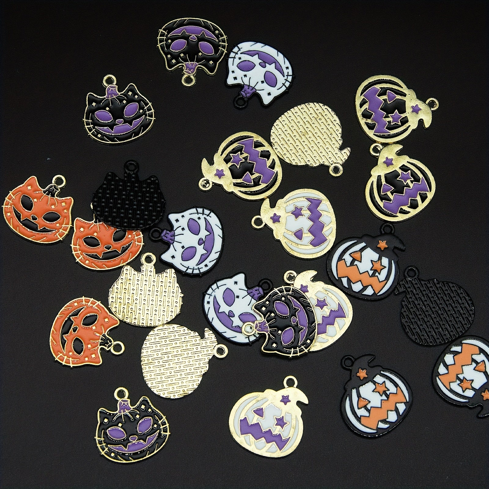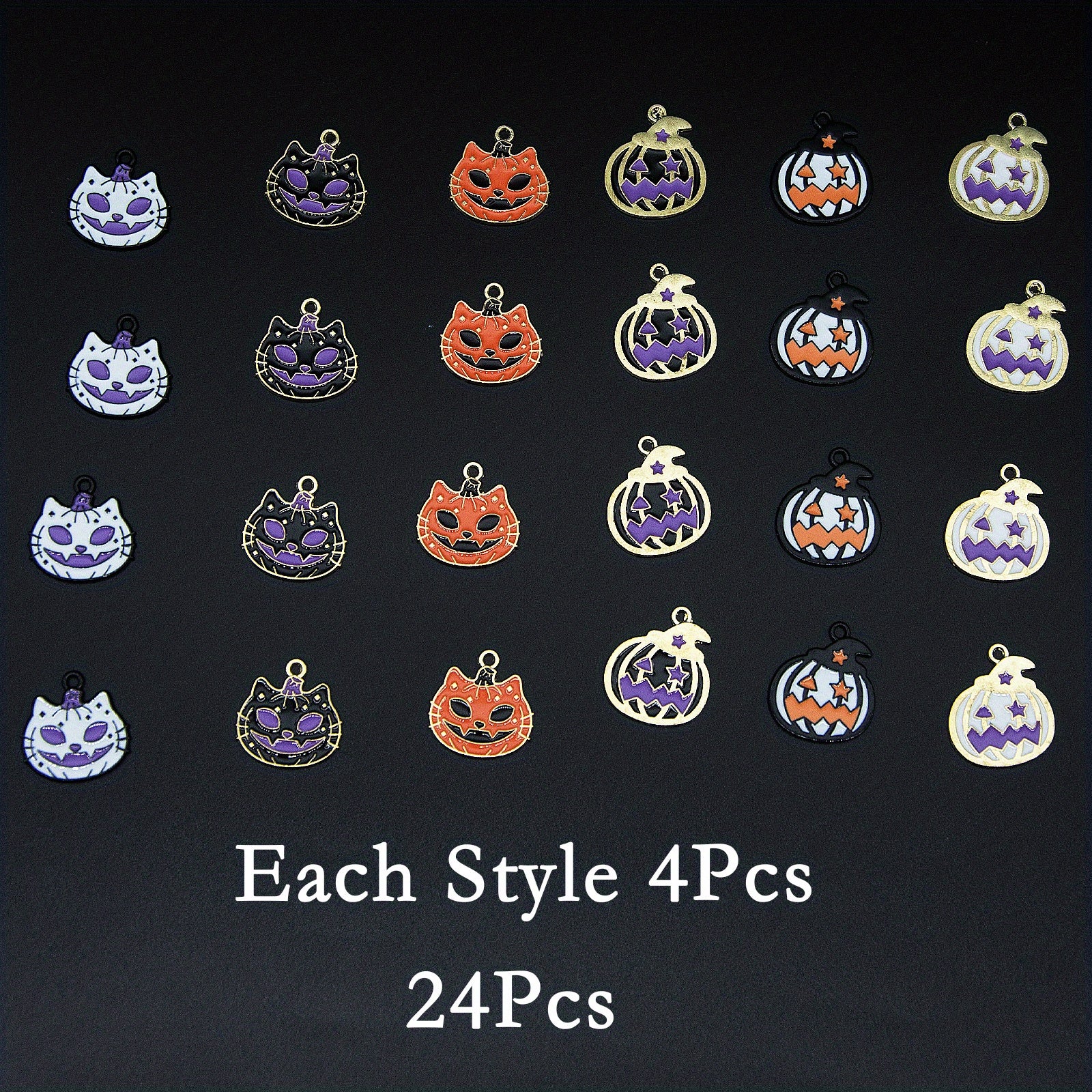 24pcs Halloween Charms Enamel Pumpkin Cat Charms DIY Necklace Bracelet Earring