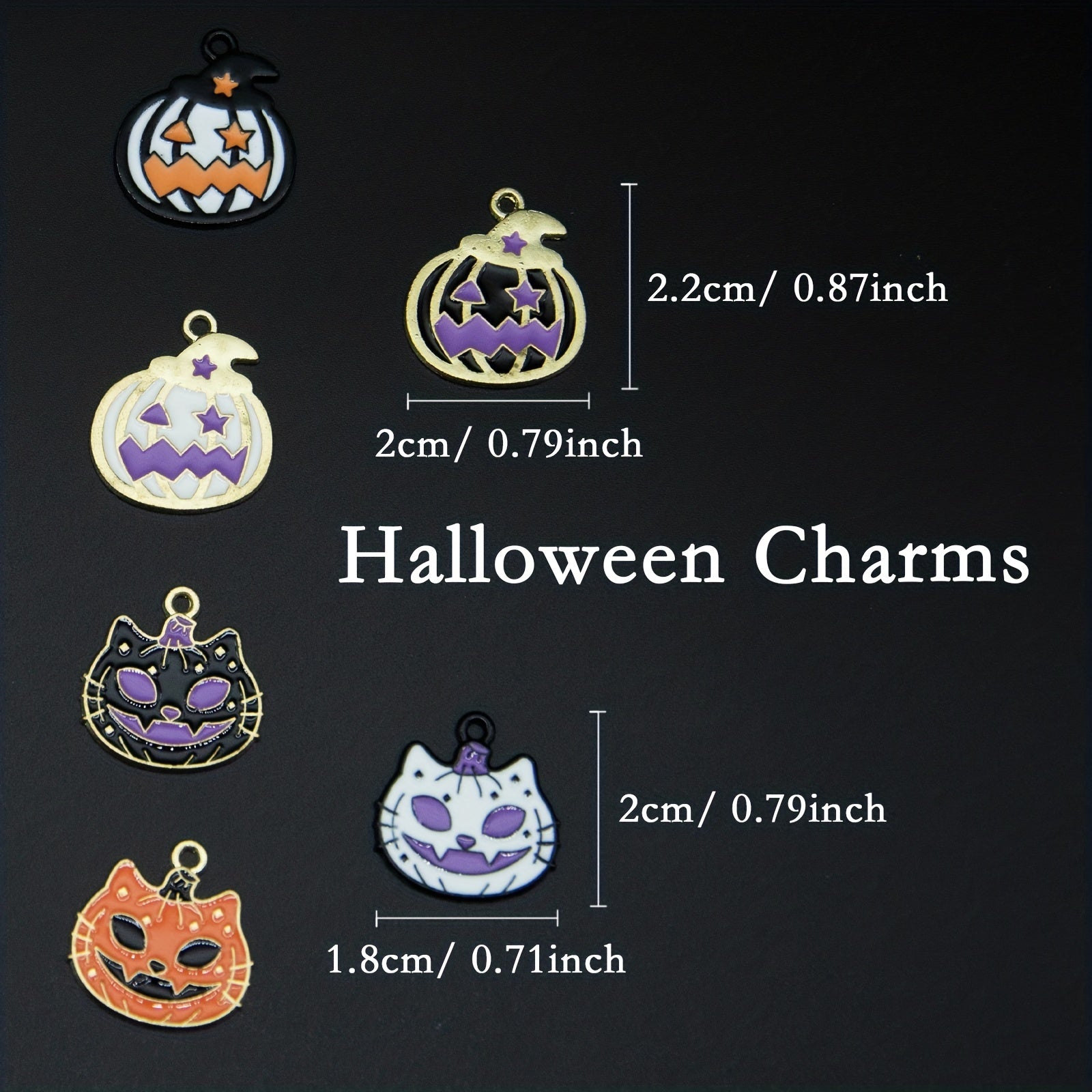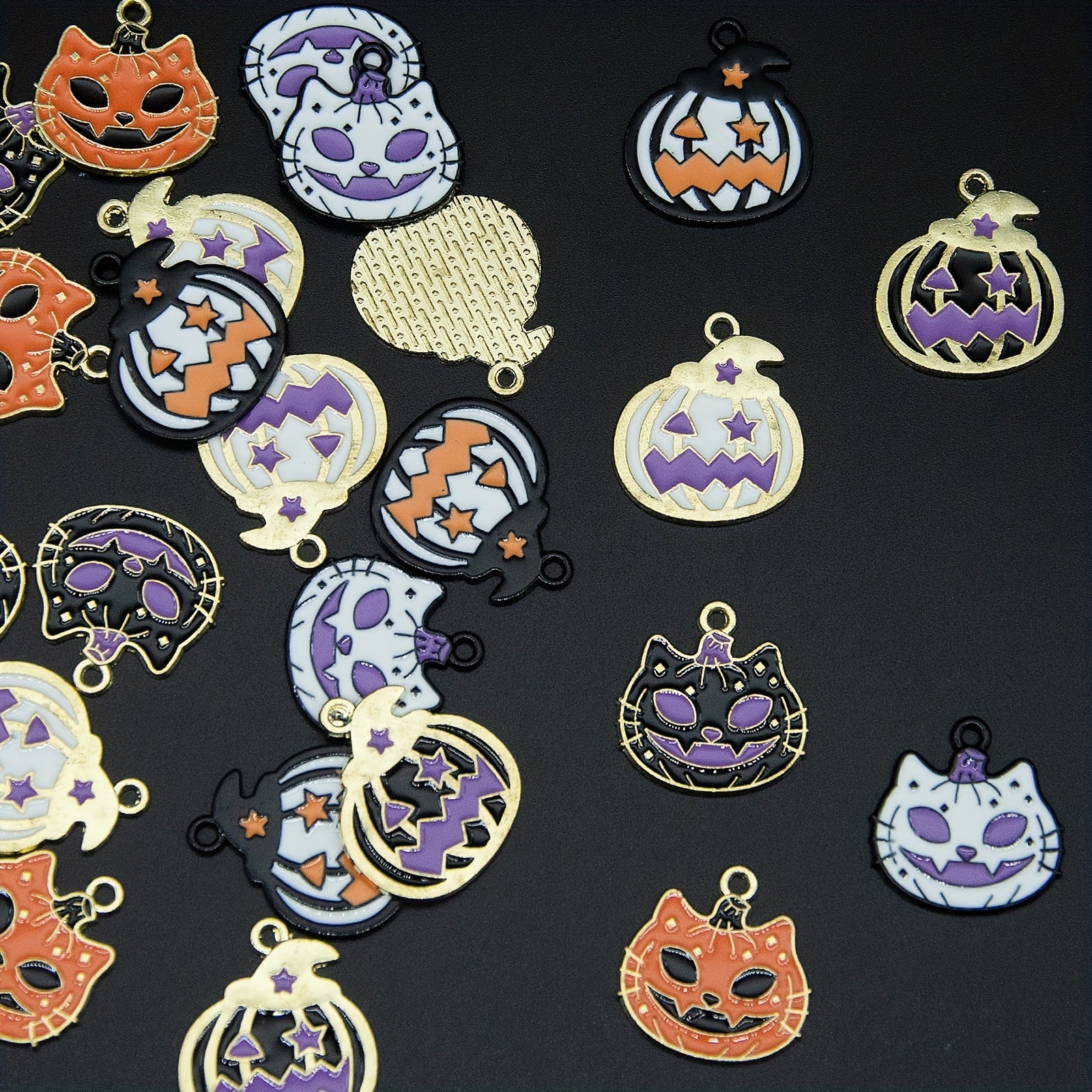 • Enamel pumpkin, cat, and other spooky charms