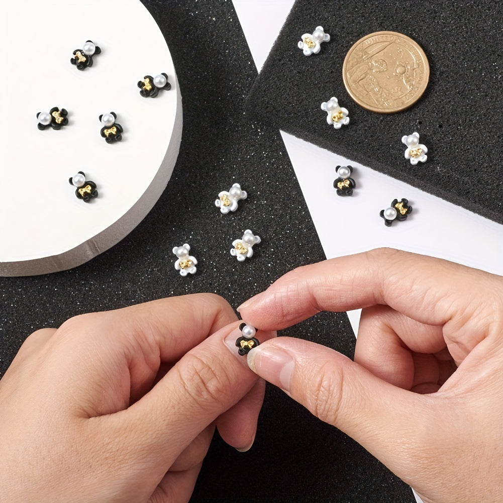 Enhance your bracelet, necklace, or other accessories with these 24pcs pearl beads panda nail patch charms. Made from zinc alloy, they add a touch of cuteness to your style.