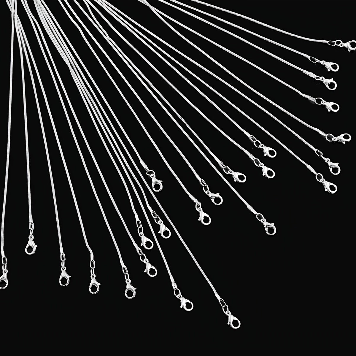 This set includes 24 pieces of 925 silver plated snake chain charms with lobster clasps. Perfect for creating artificial jewelry pieces.