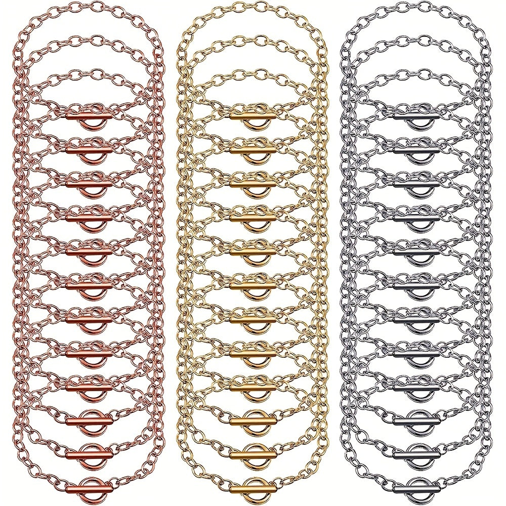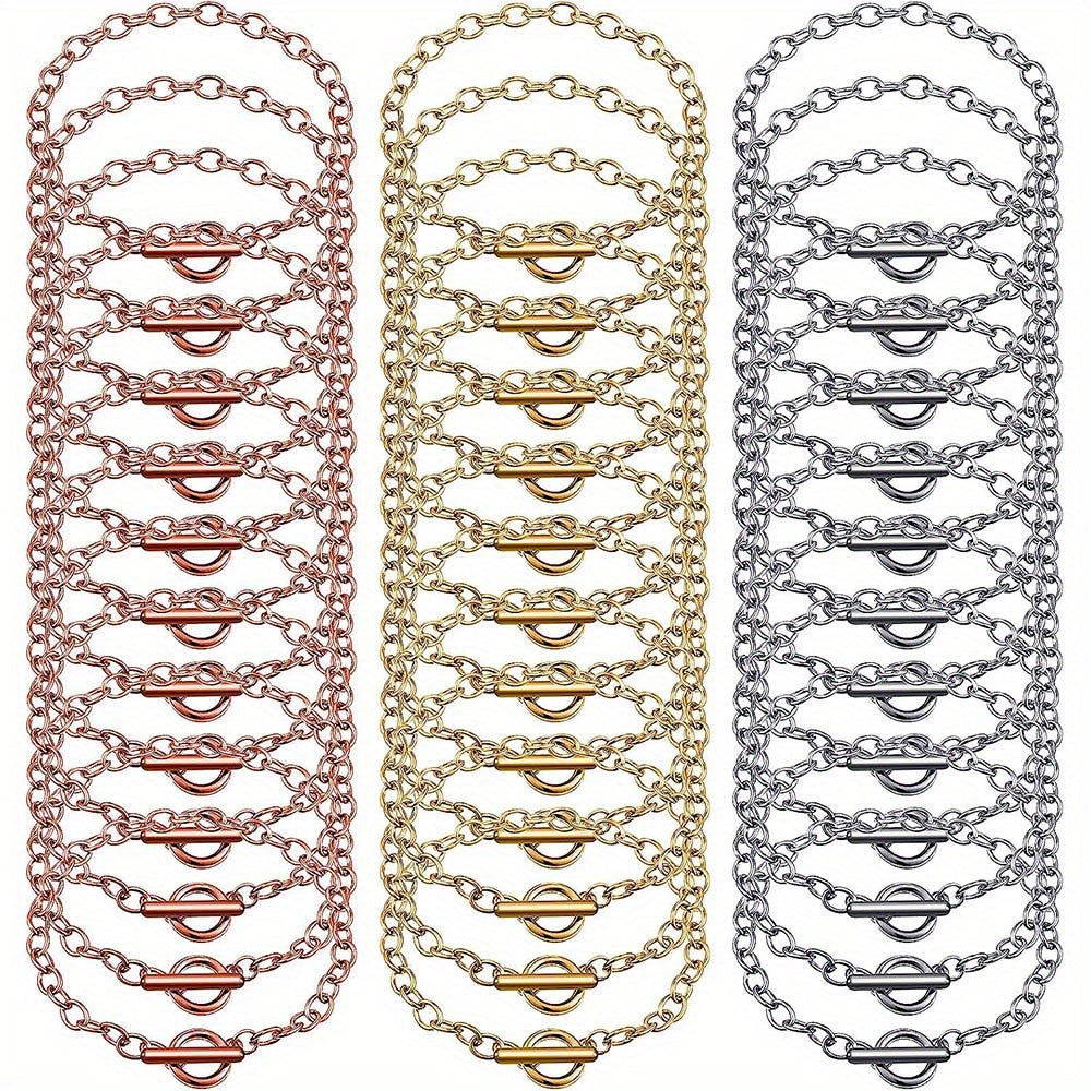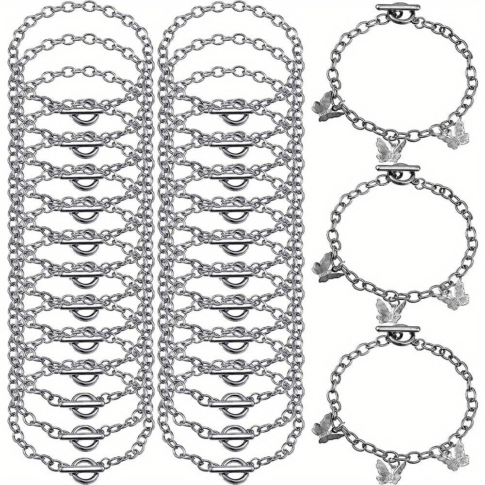 Create stunning bracelets with this set of 24 toggle clasp alloy bracelet chains. Perfect for DIY jewelry making projects.
