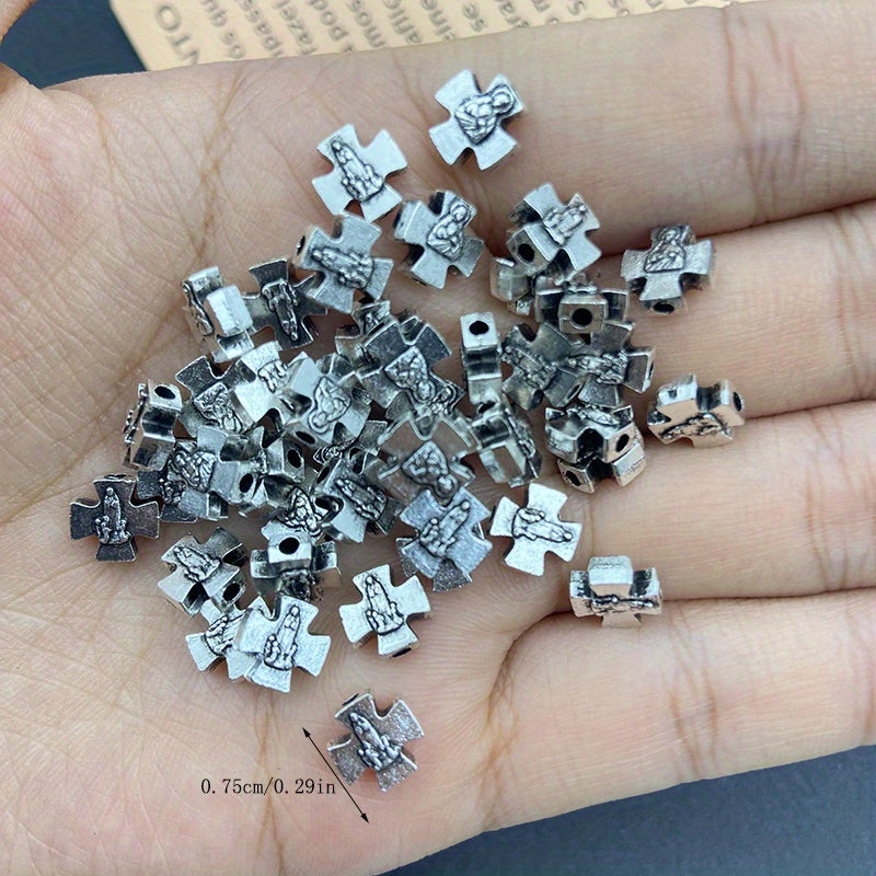 Get 24 mini connectors featuring the Virgin Mary and Cross for DIY bracelet and necklace projects. Ideal for crafting religious-themed jewelry.