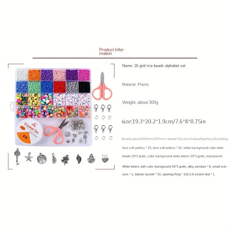Create beautiful bracelets with this DIY material set including rice beads, letter beads, and soft pottery beads.