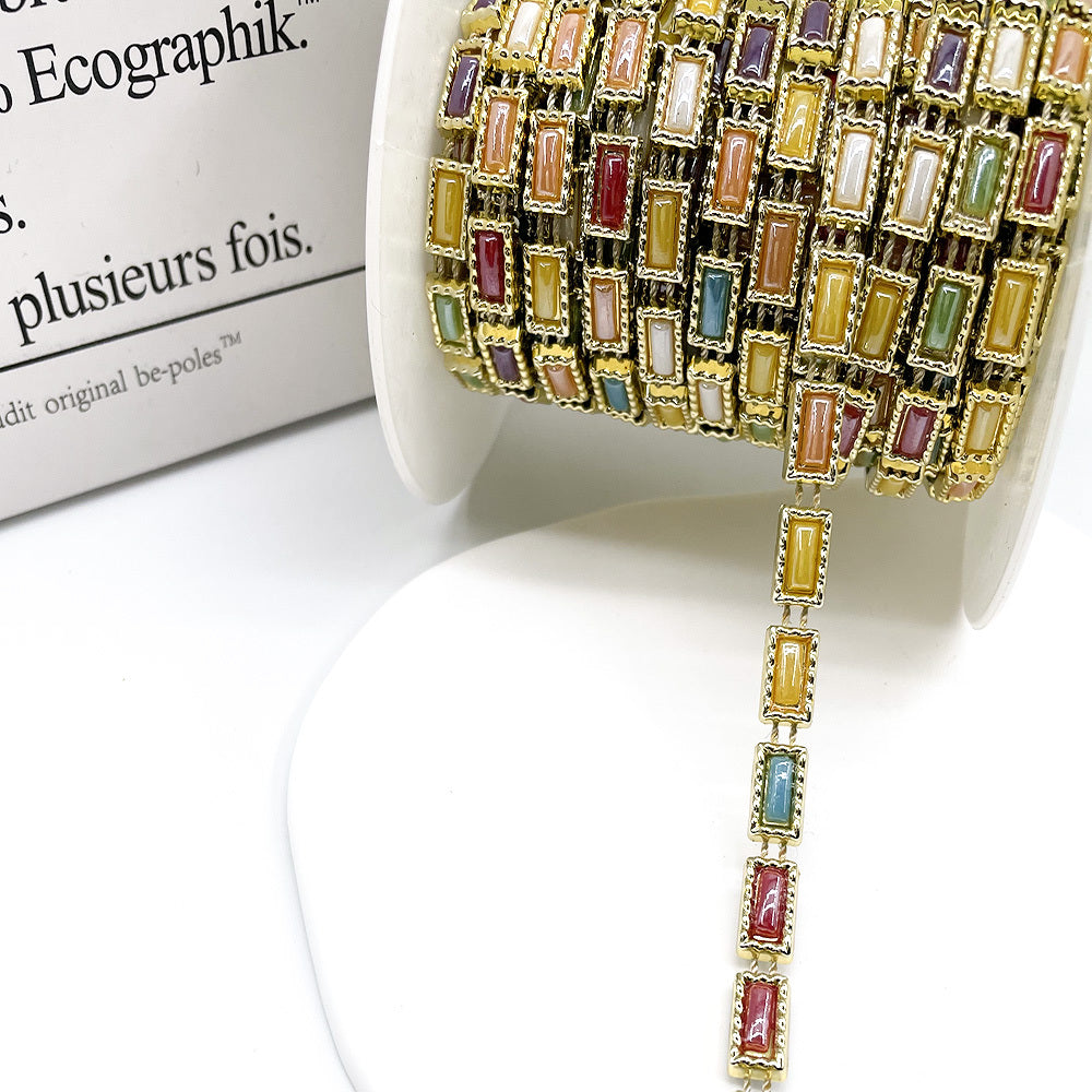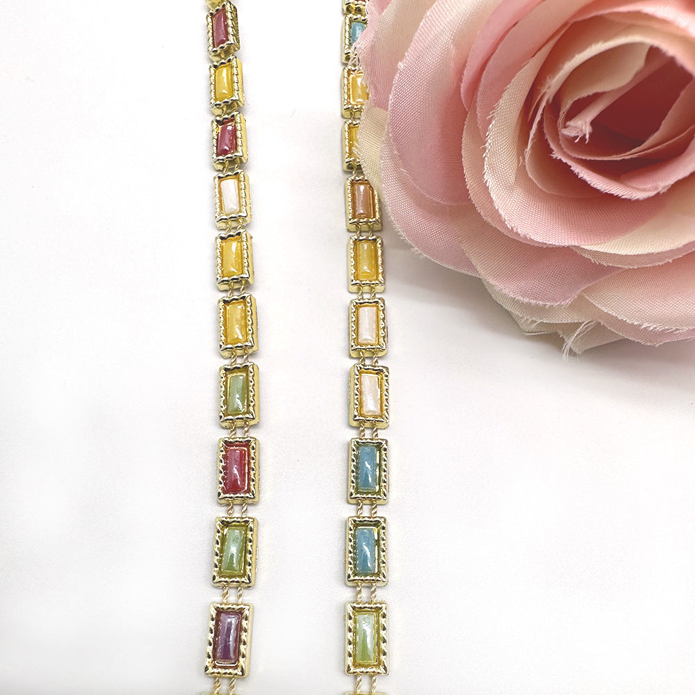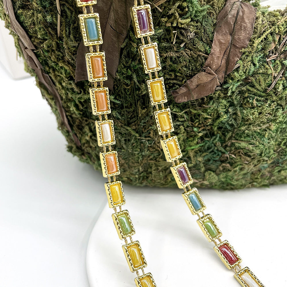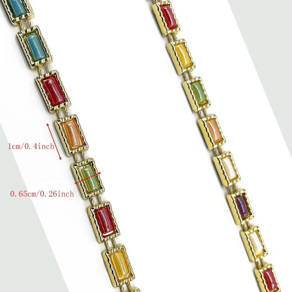 Create beautiful accessories with this 26-inch square connected colored gemstone chain beads. Perfect for clothing, wedding decor, lace embellishments, and headdress accessories.