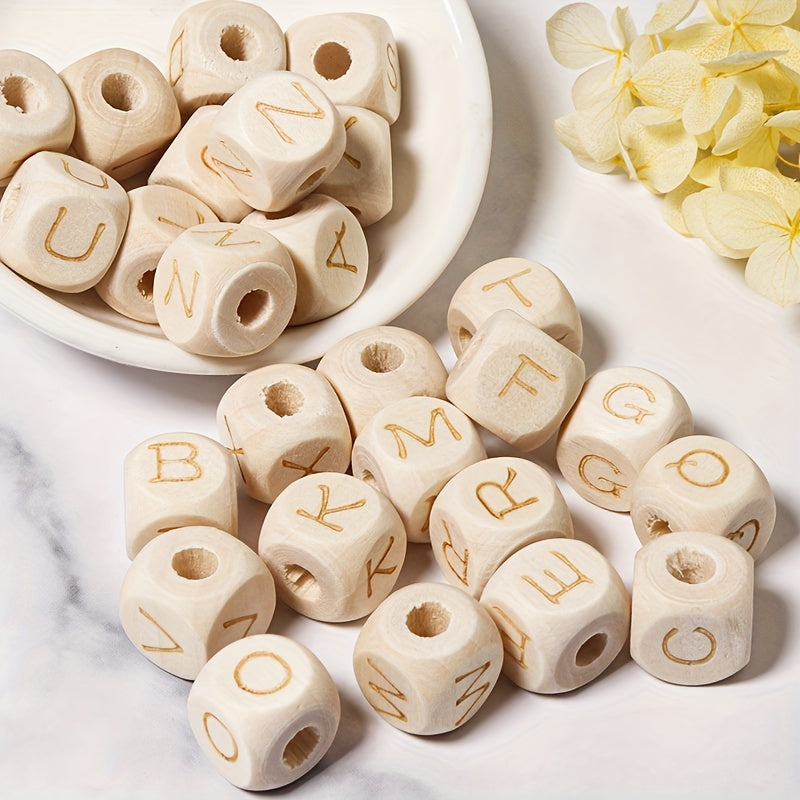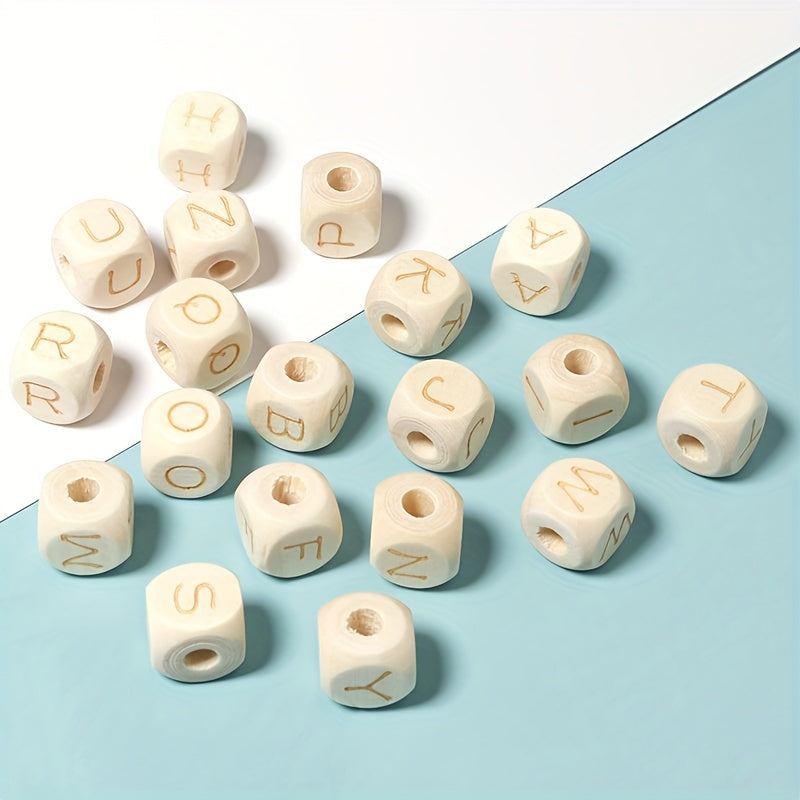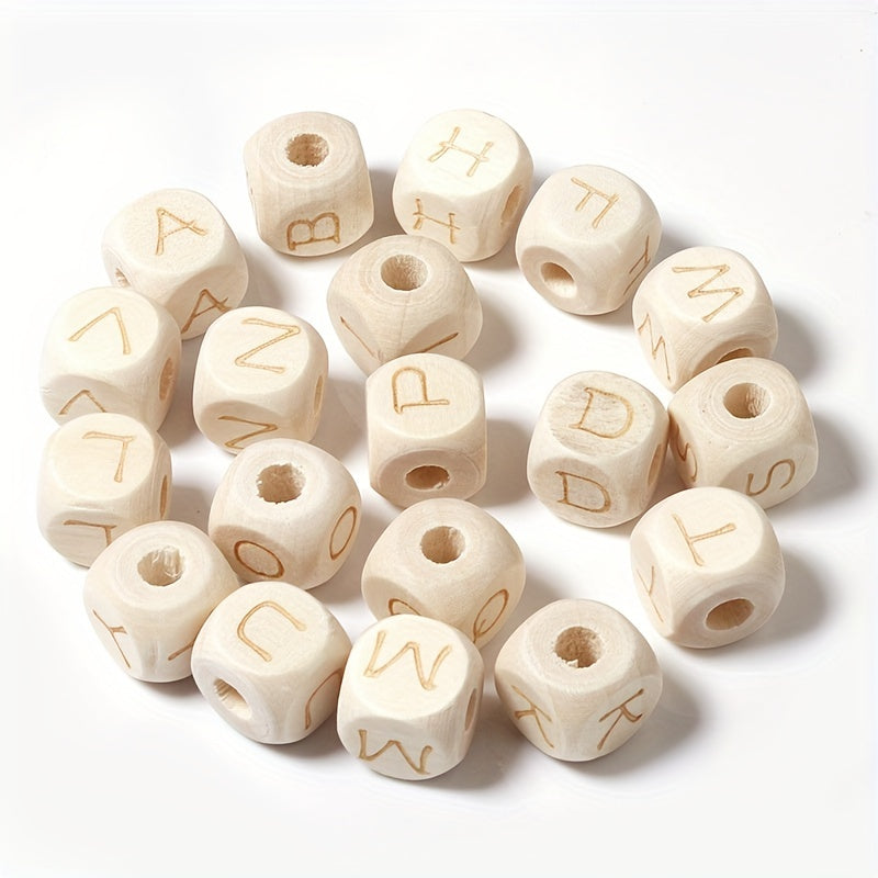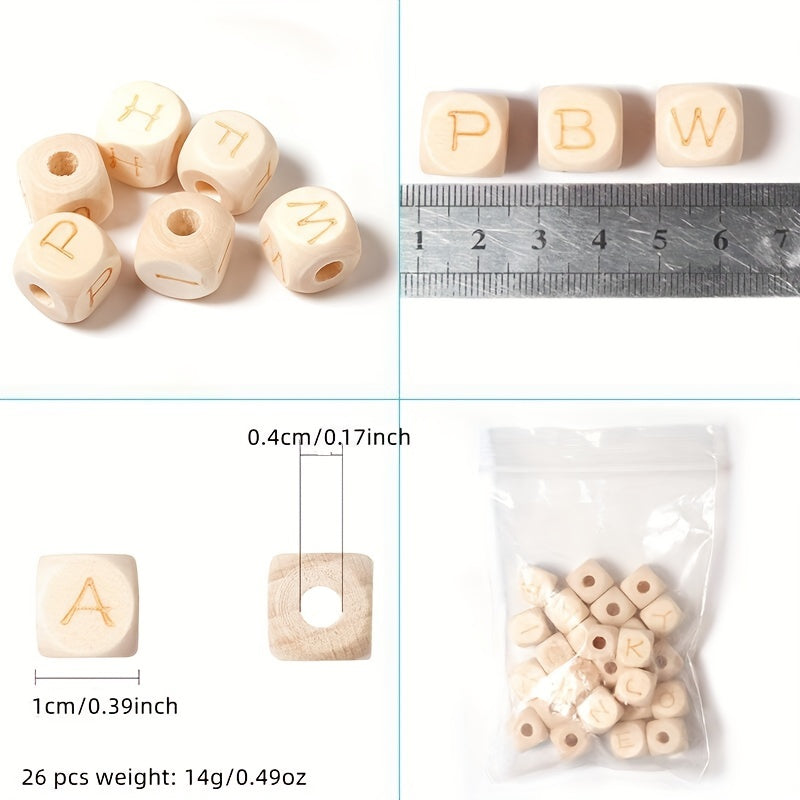 Create personalized jewelry with this set of 26 log printed wood beads featuring 26 English letter beads. Perfect for DIY projects and crafting.