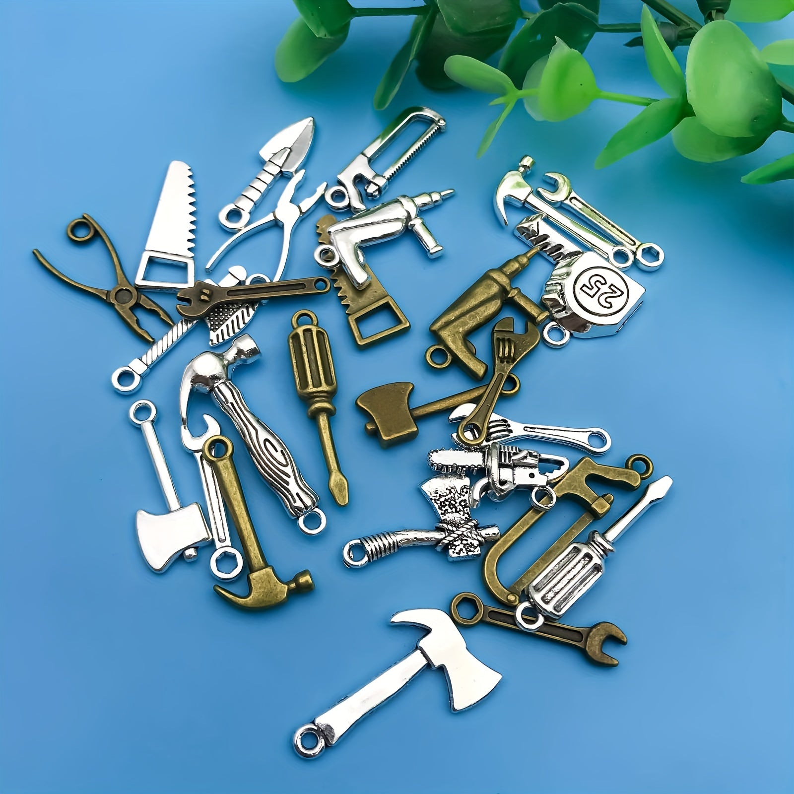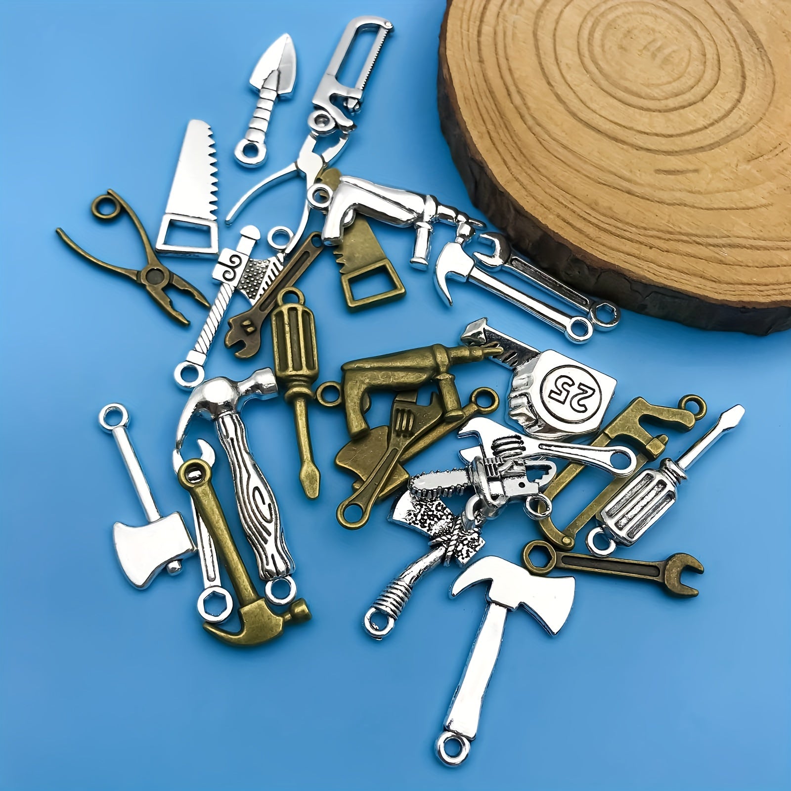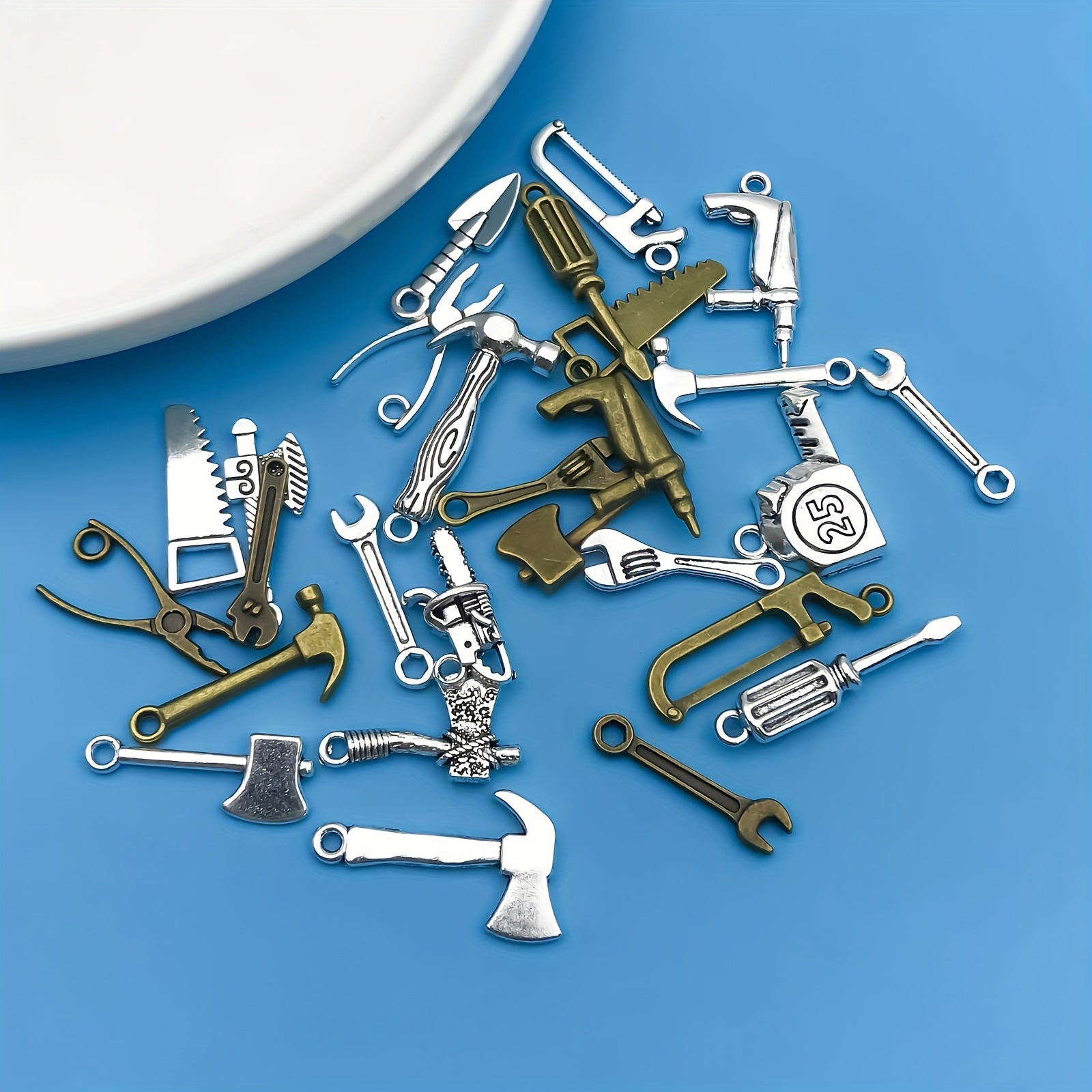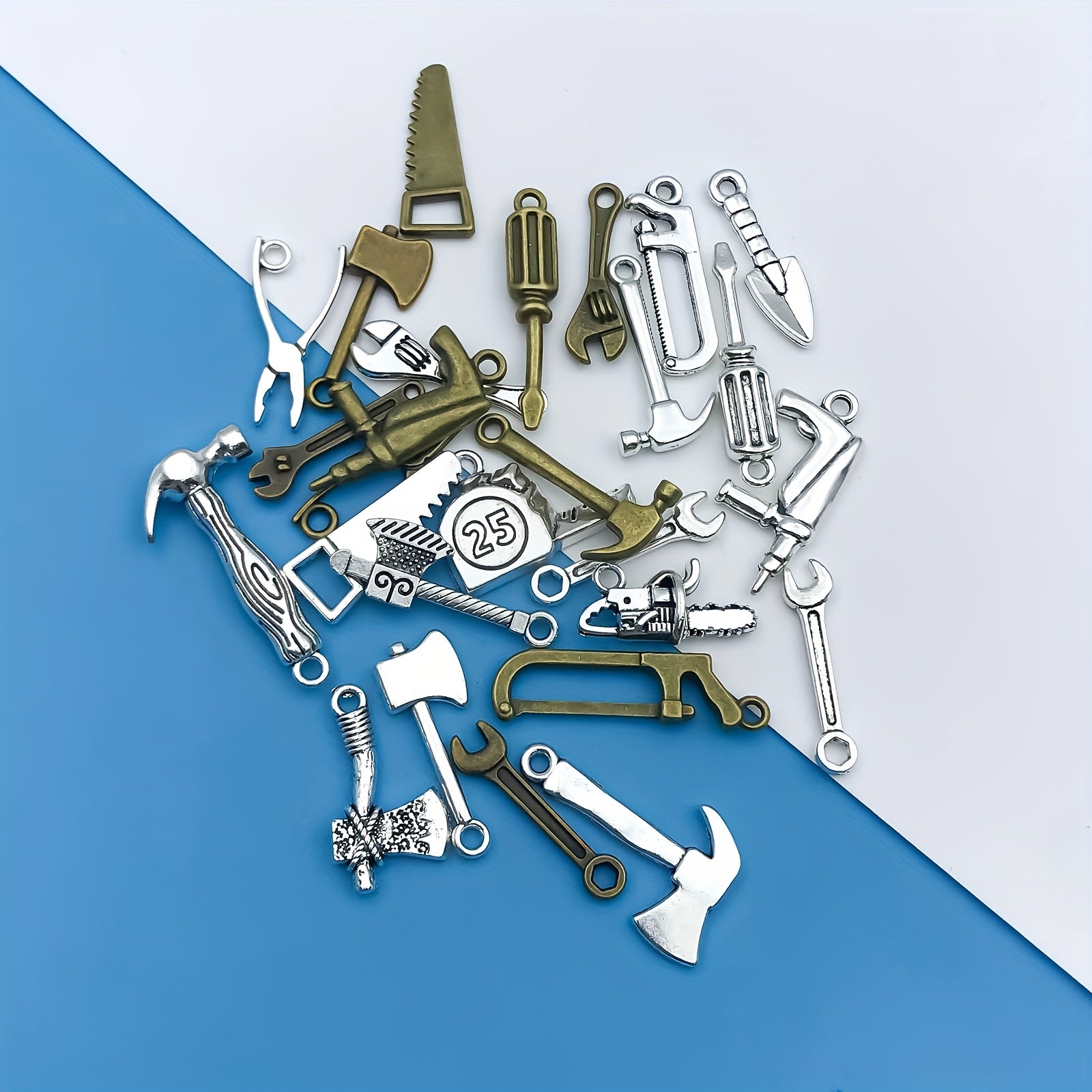 26pcs Set Antique Tool Saxes Saws Clips Charms for DIY Jewelry Making