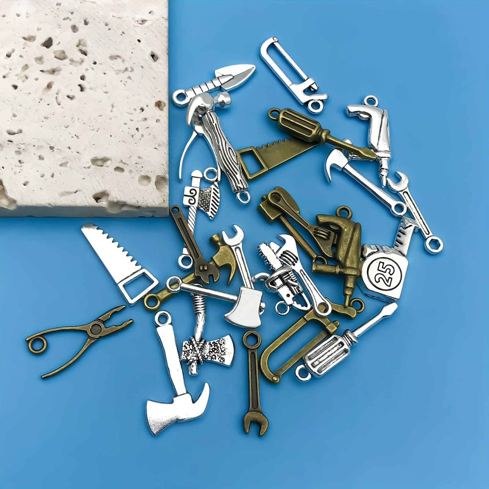 This set includes 26 zinc alloy antique daily tool shaped charms for creating unique necklaces, bracelets, and earrings. Perfect for DIY jewelry making projects.