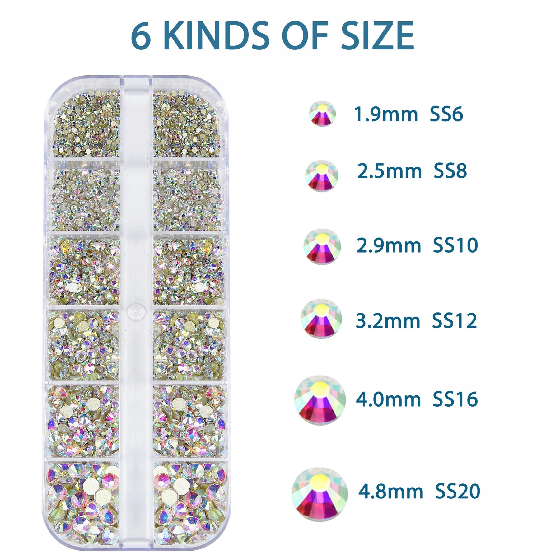 Get a variety of 2800 clear flat rhinestones with storage box. Perfect for nails art, crafts, eye makeup, DIY projects, jewelry making, and more.