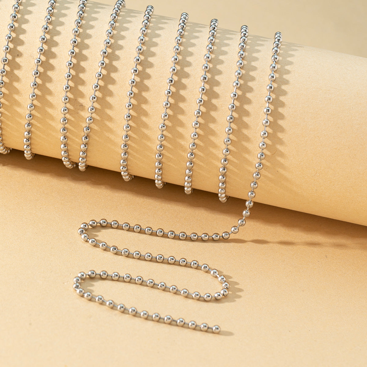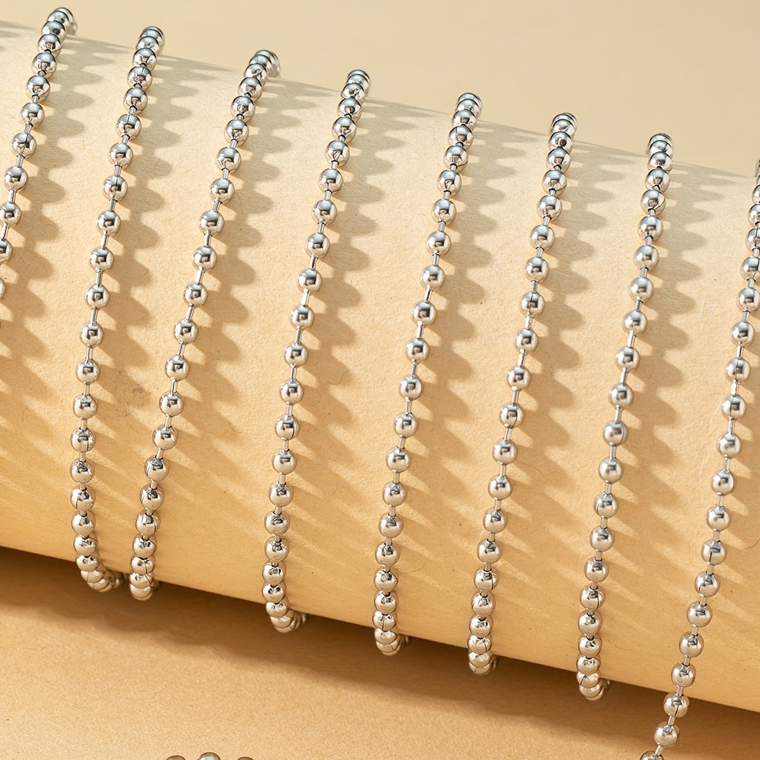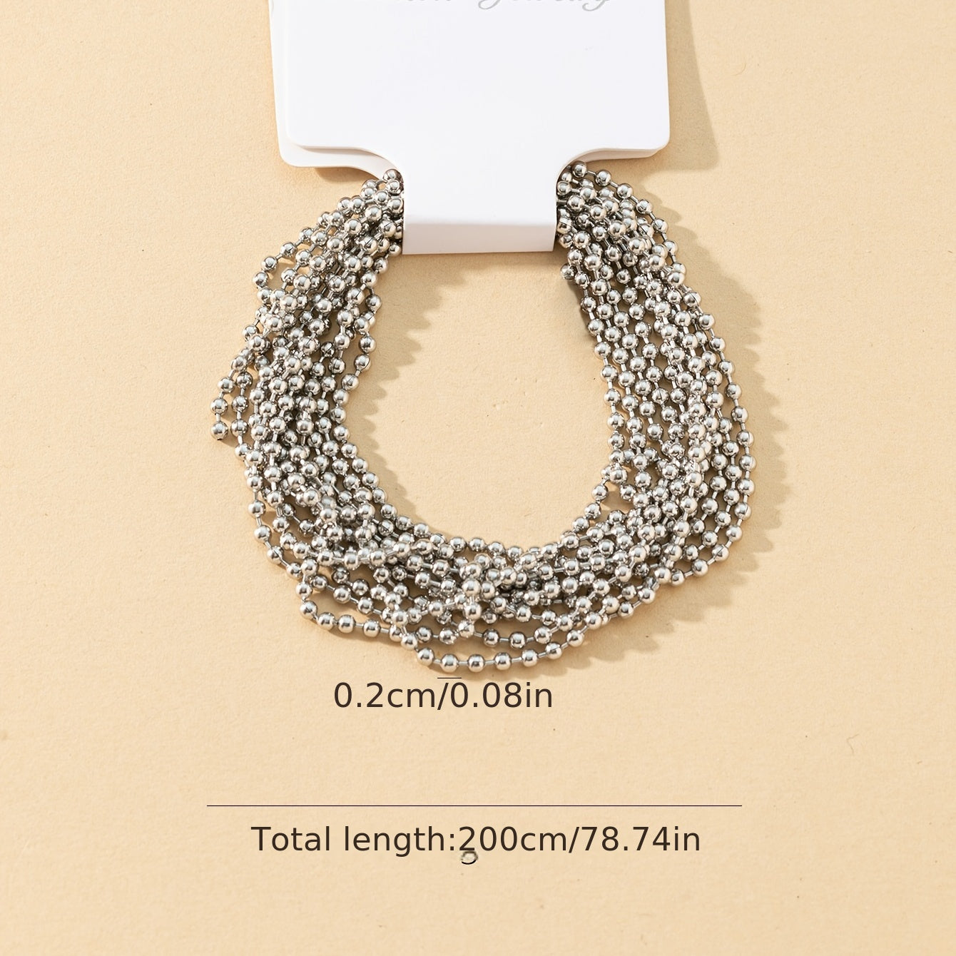 This 78-inch round beaded chain can be used as a hanging sign chain, necklace, or bracelet. It adds a touch of elegance to any accessory or decor piece.
