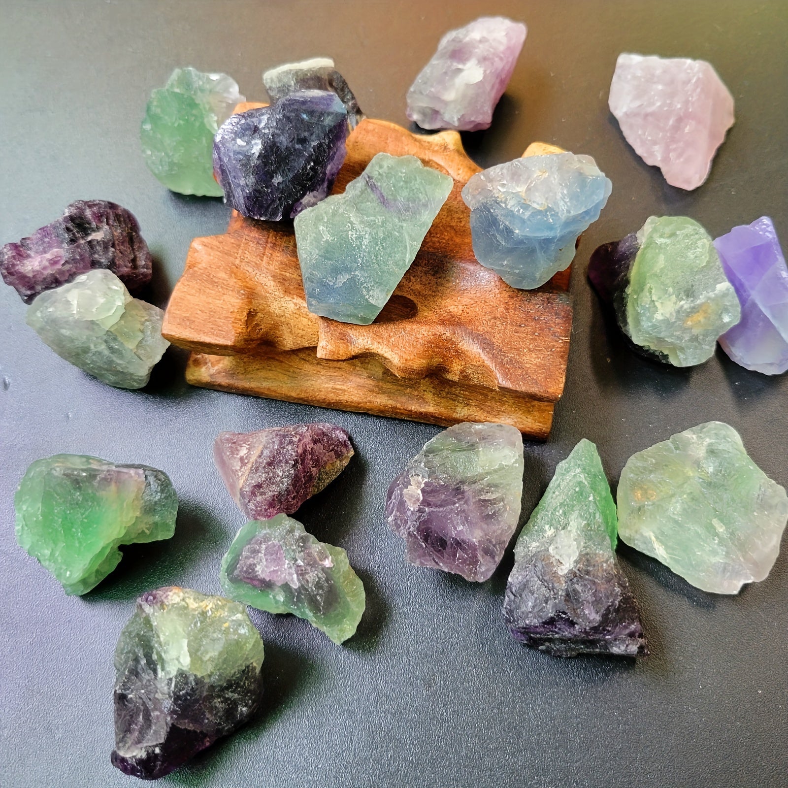 Discover the beauty of Rainbow Fluorite with these raw crystals. Perfect for Wicca, Reiki, jewelry making, or simply as a decorative piece. These stones are ideal for aromatherapy diffusers and can bring calming energy to your space.