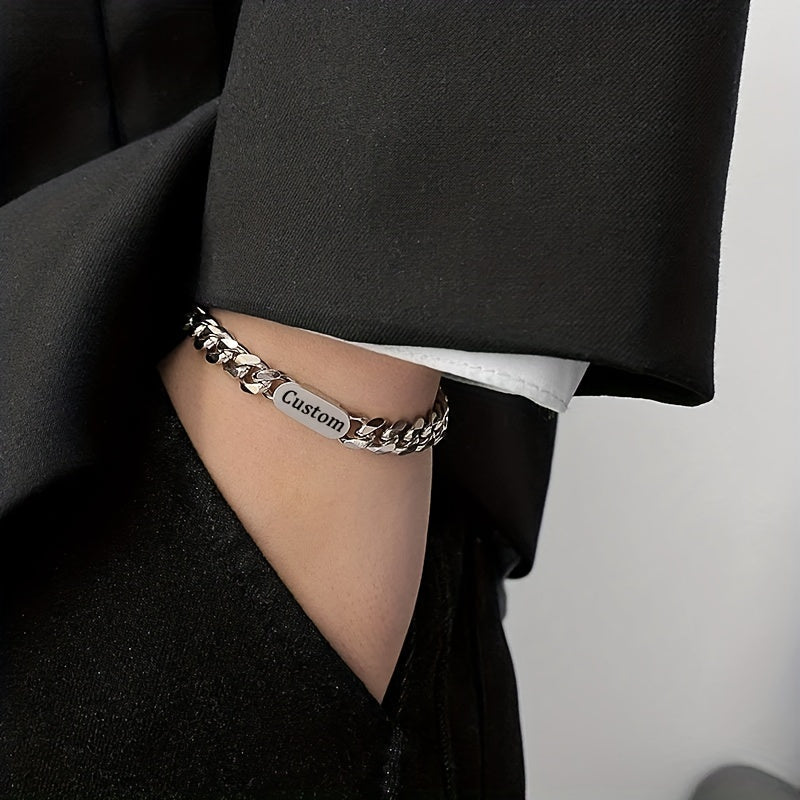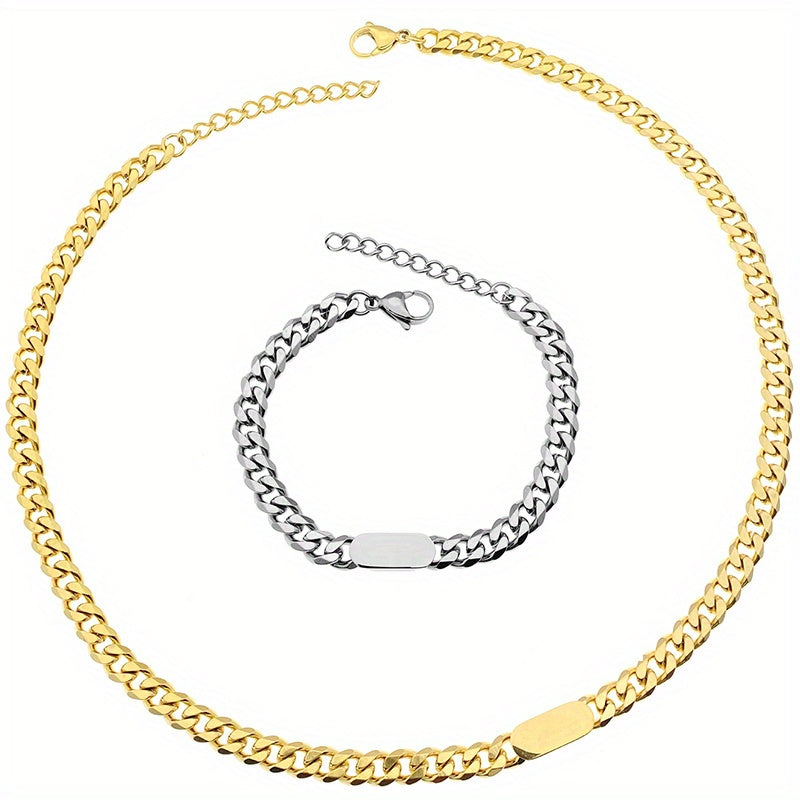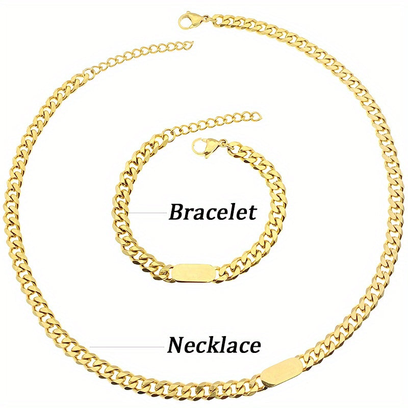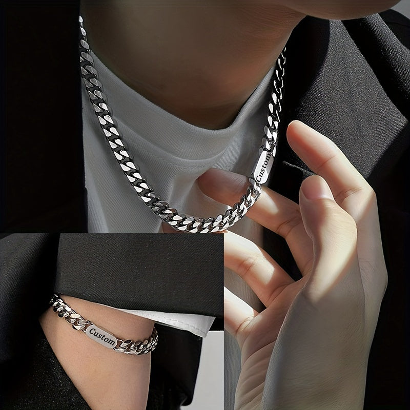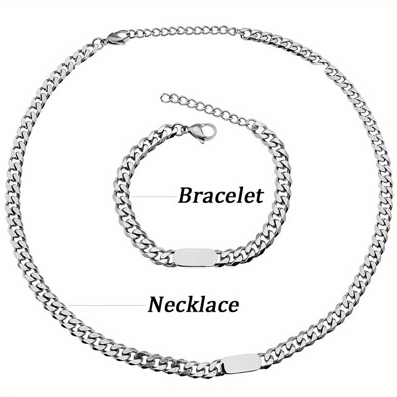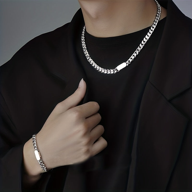 Enhance your style with this hip hop retro stainless steel chain set. The set includes a necklace and a bracelet, perfect for men's jewelry collection.
