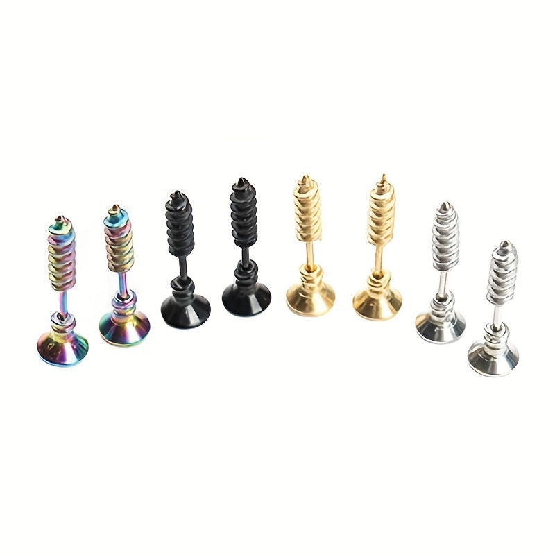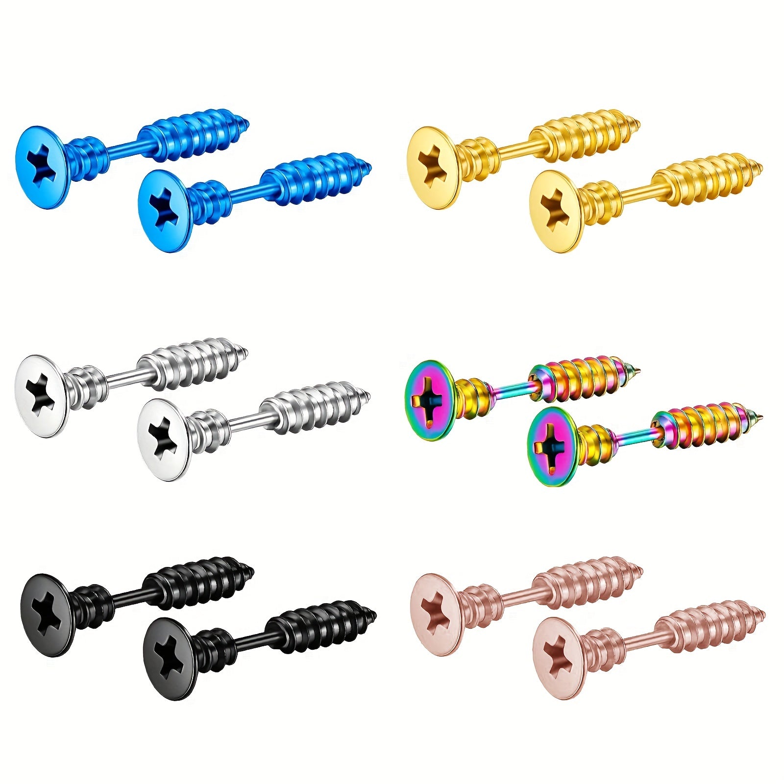 Add an edgy touch to your look with these stainless steel cross screw stud earrings. Perfect for body or ear piercing, this punk style jewelry set features 2 pieces of 7mm earrings.
