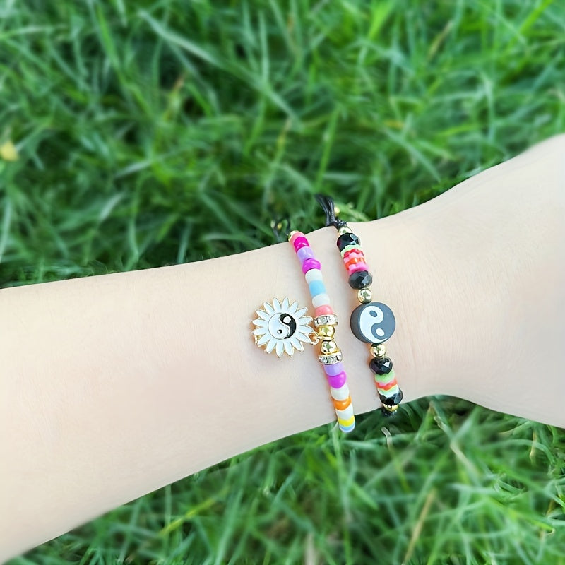 Elevate your style with this unique set featuring soft pottery colorful beads and Tai Chi pendant. Perfect for ladies who love ethnic-inspired accessories.