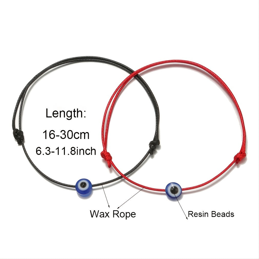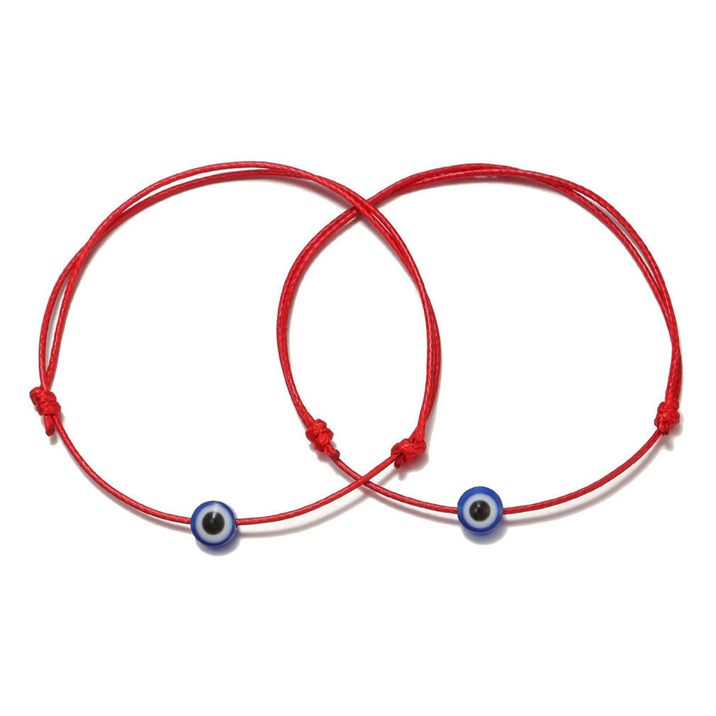 These charming string bracelets feature an evil eye charm design, representing protection and good luck. Perfect for friends or couples looking to share a symbol of positivity.