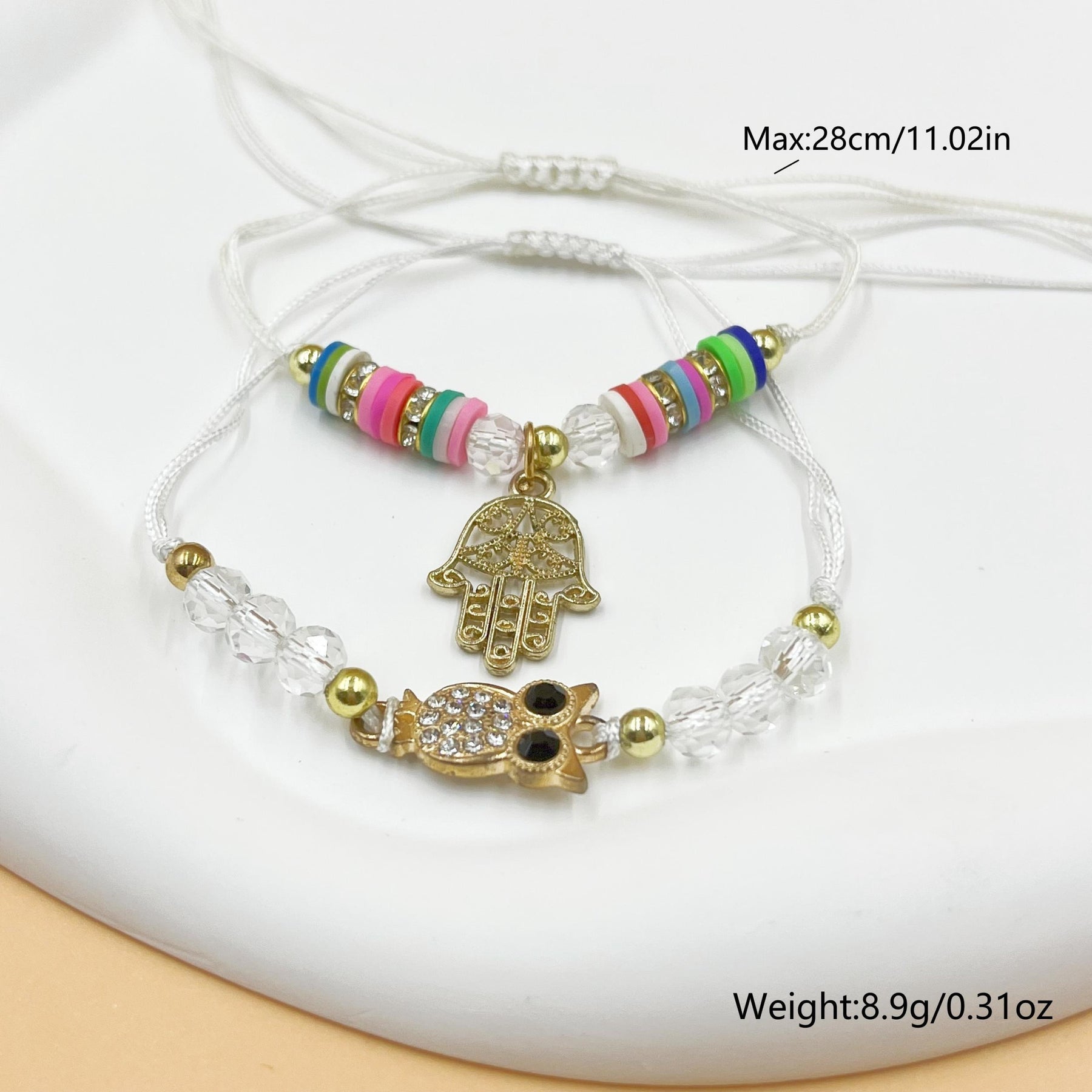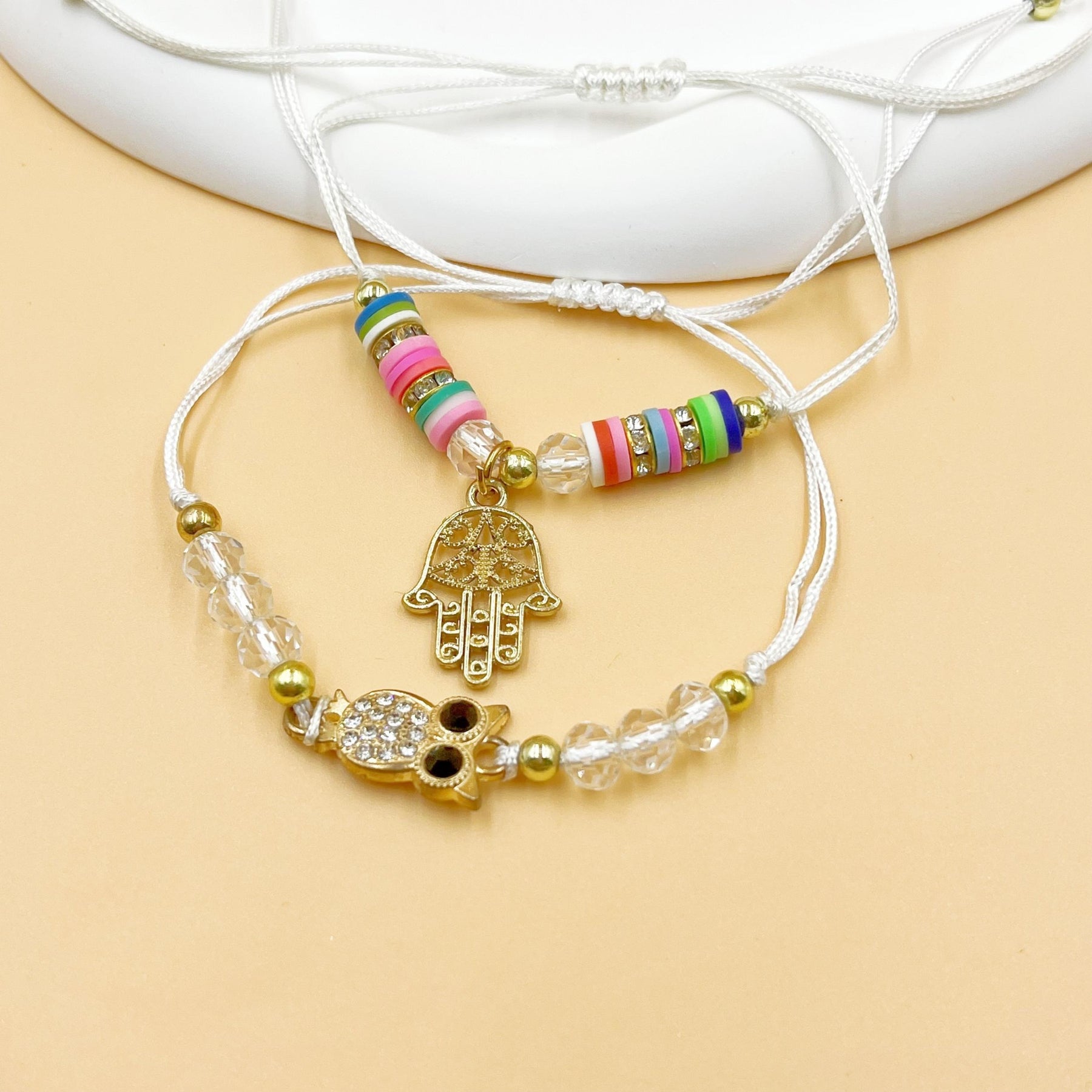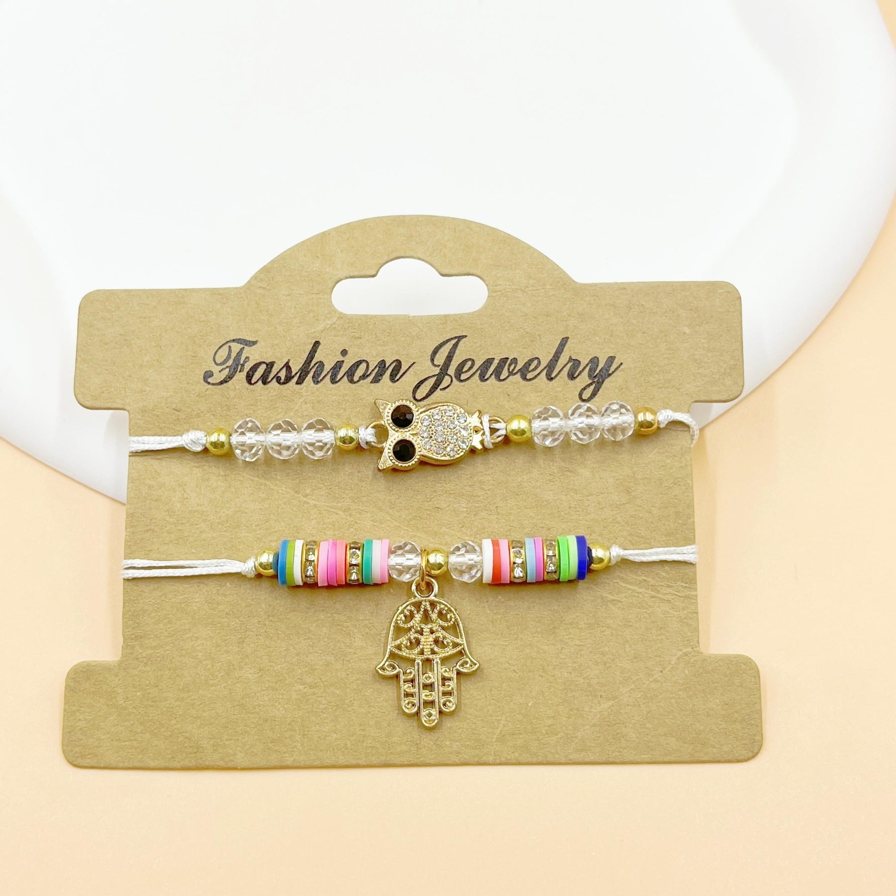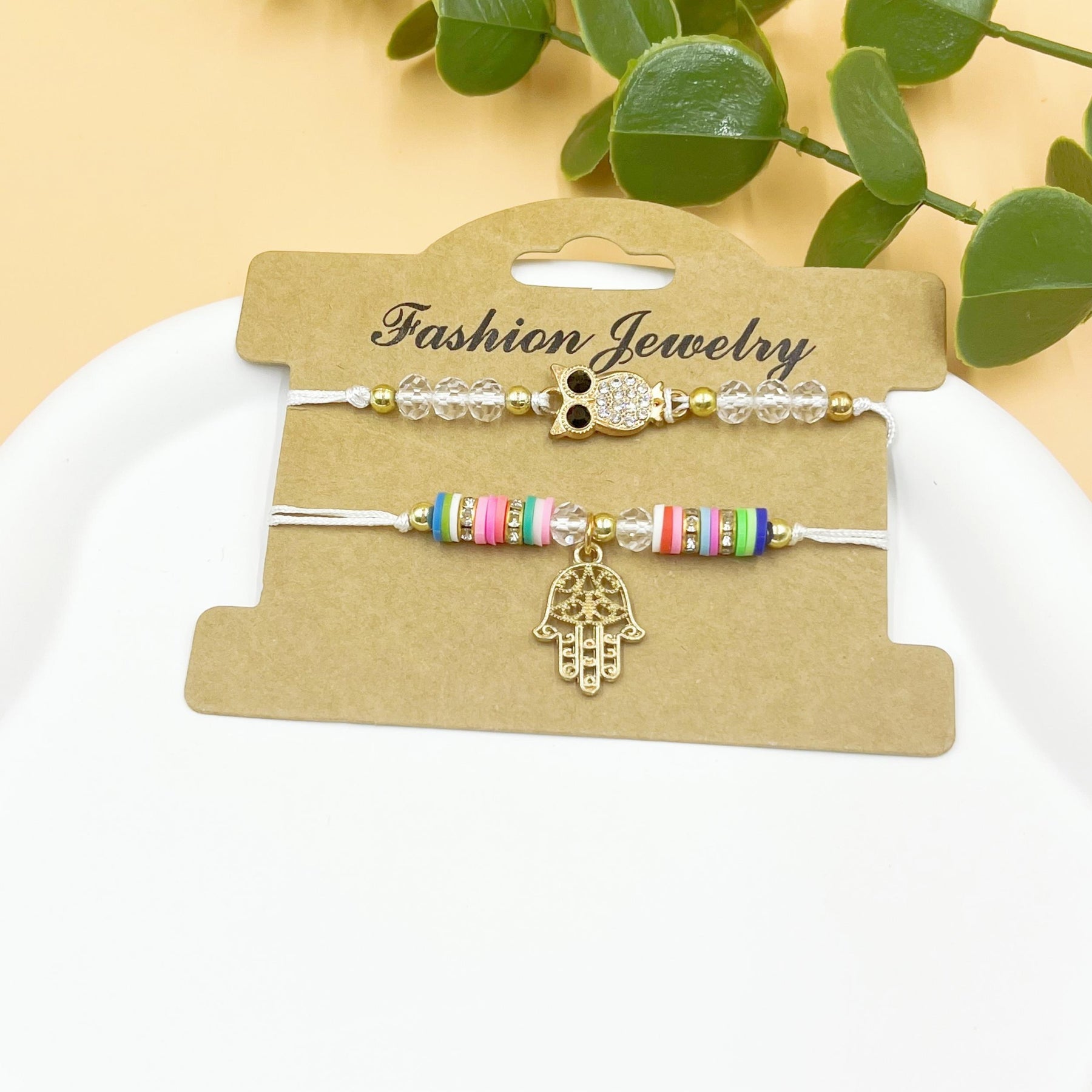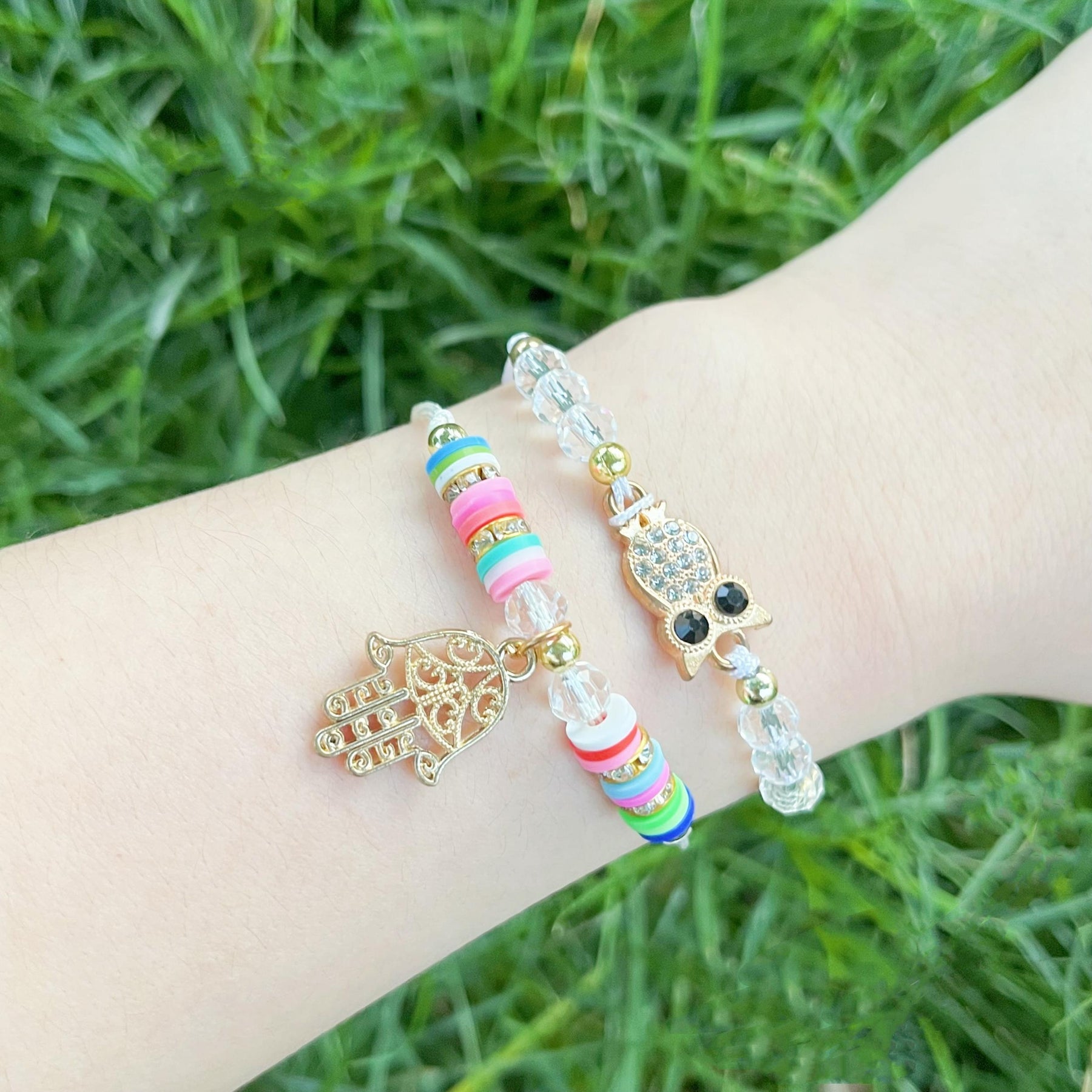 Bohemian style bracelet set featuring Evil's Eye and owl beads. Perfect for a boho vacation look.