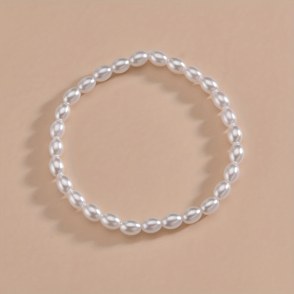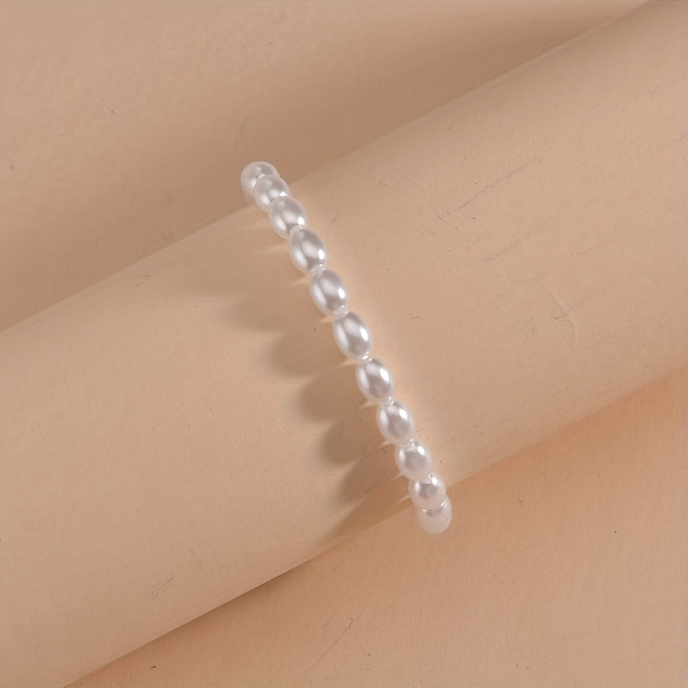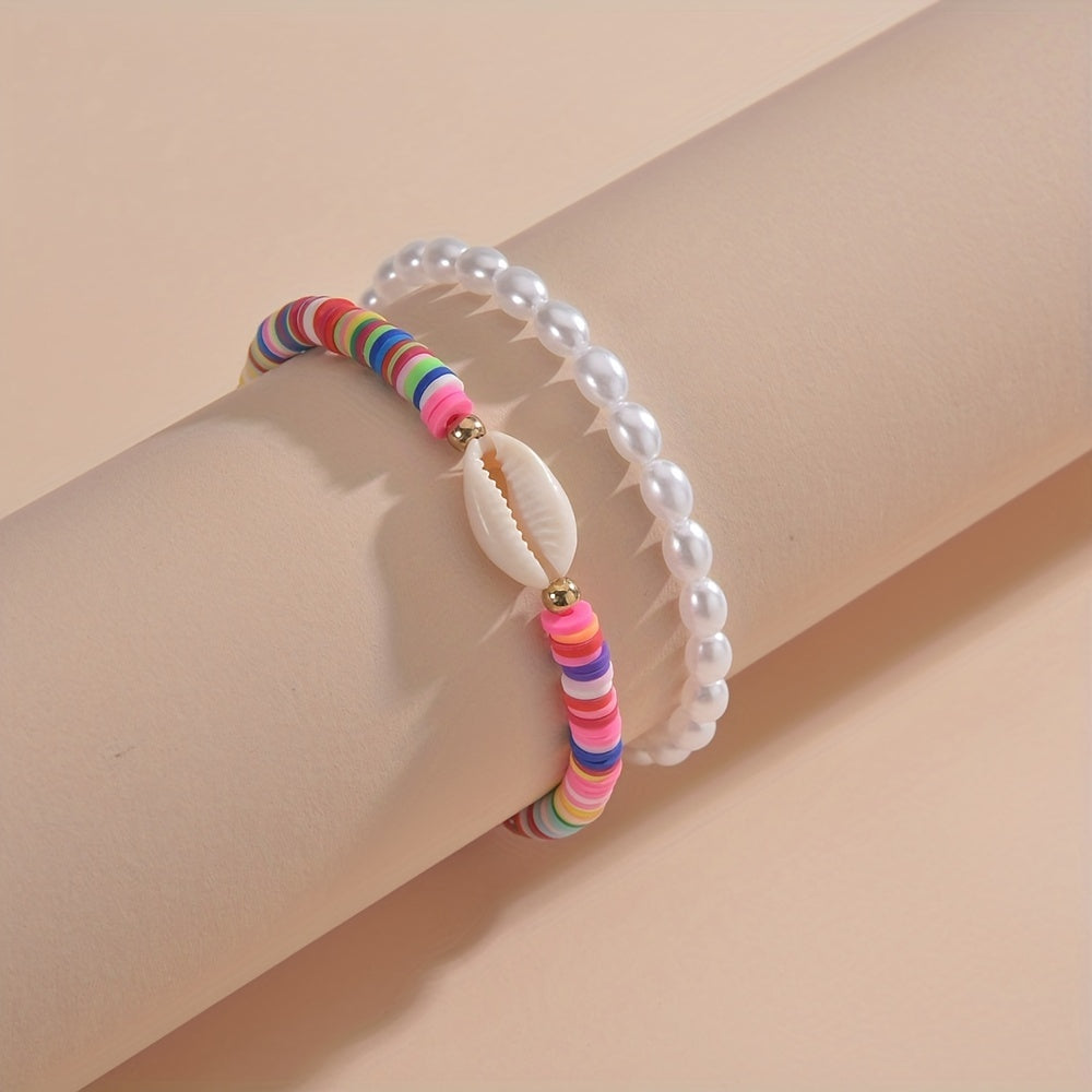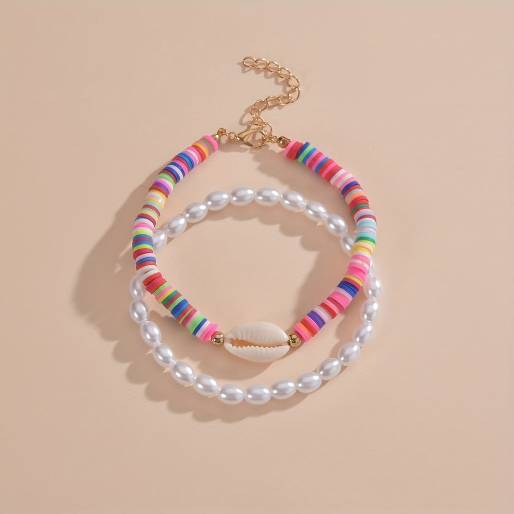 2pcs Faux Pearls Beads Beaded Anklet Set With Colorful Clay Beads