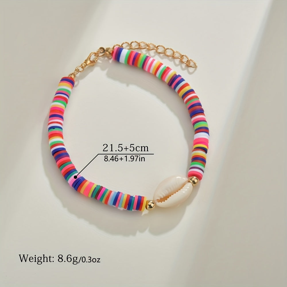 This anklet set includes 2 pieces of anklets featuring faux pearls beads and colorful clay beads. The anklets are adjustable and perfect for adding a touch of style to your outfit.