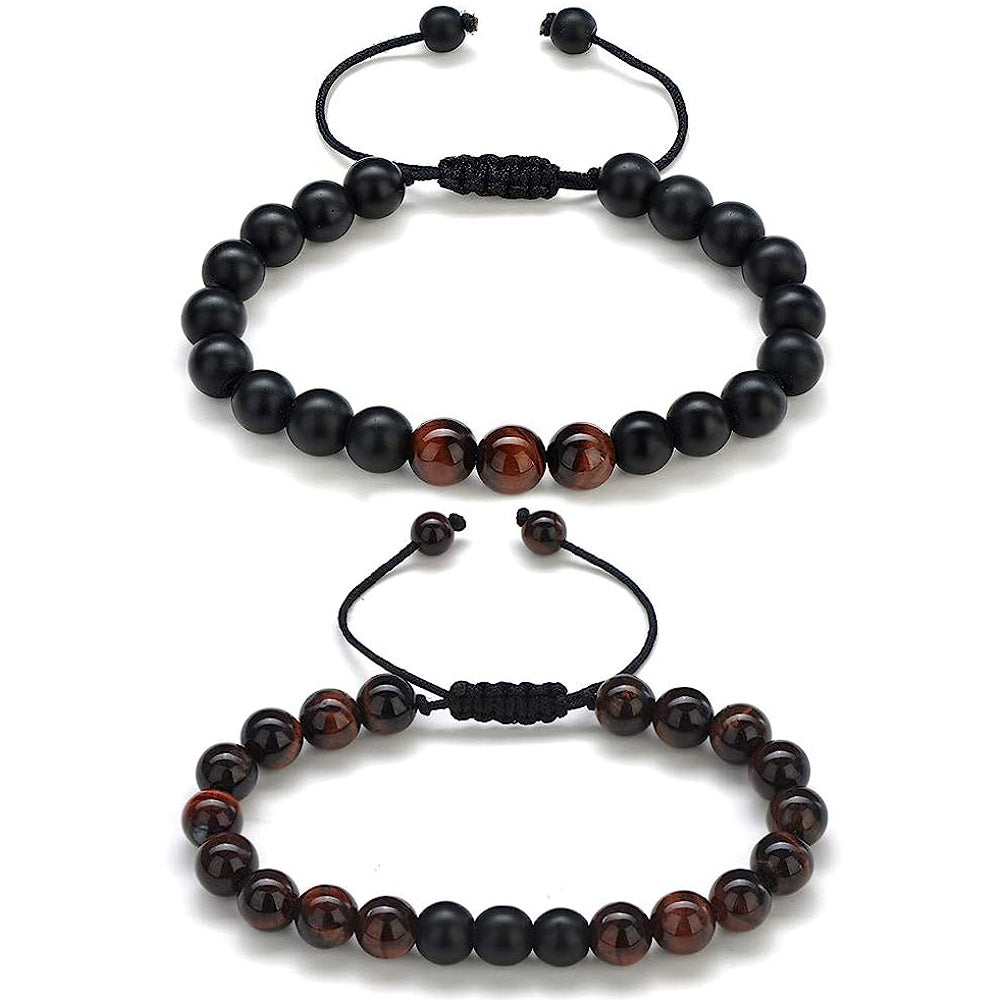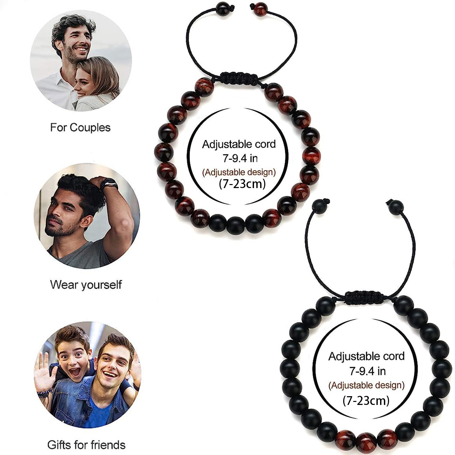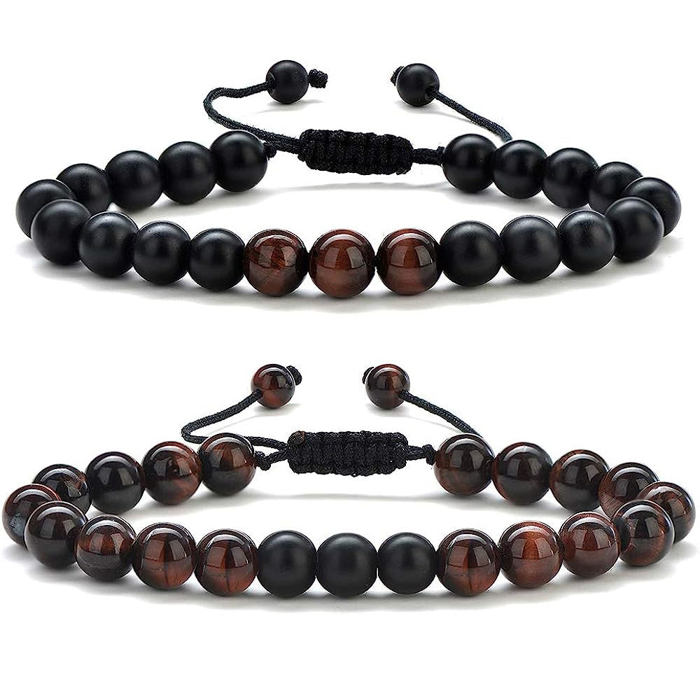 This set of 2 Tiger Eye Stone Bracelets is the perfect mens jewelry for your Dad, Grandpa, Boyfriend, Husband, Son, or Brother. It offers stress relief and a stylish look.