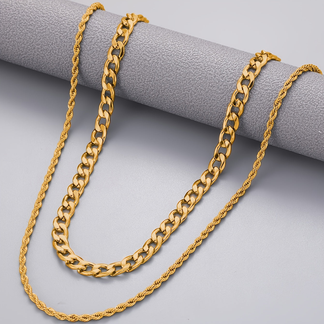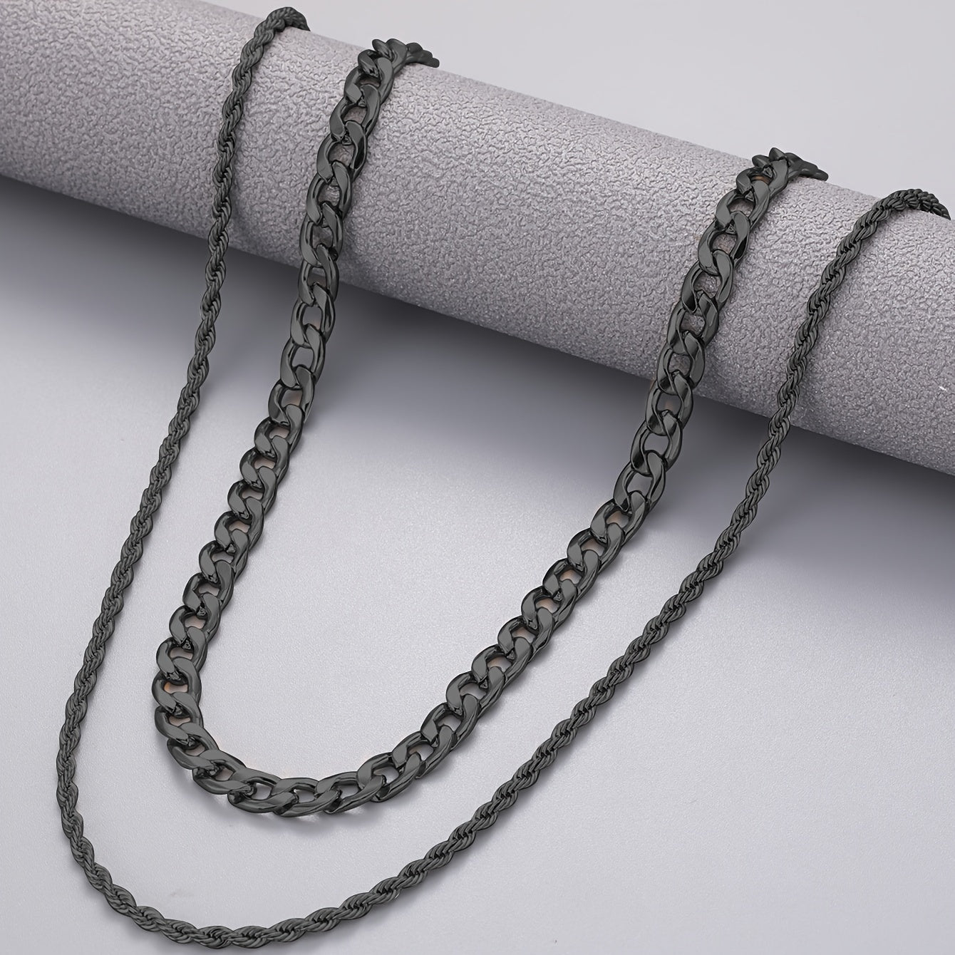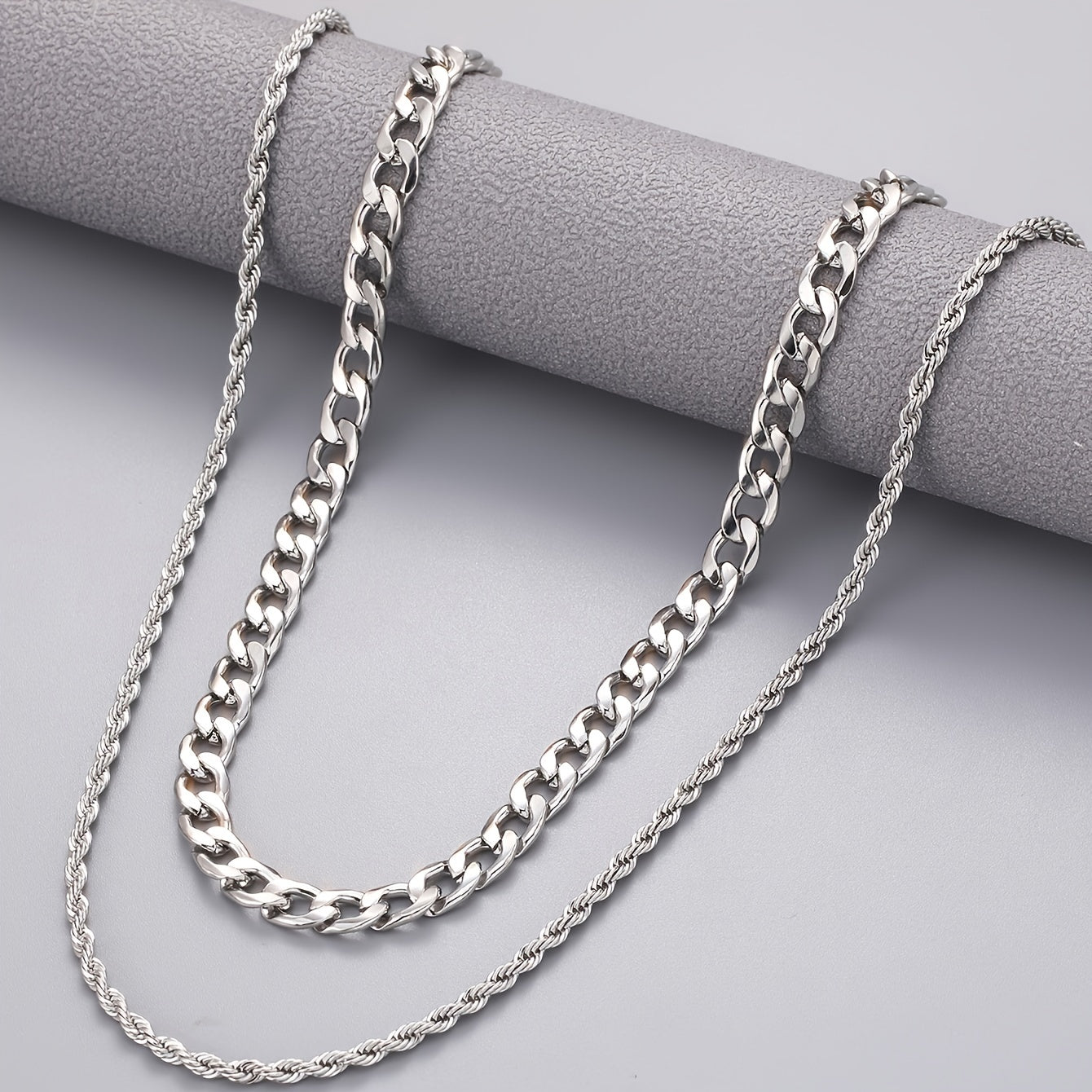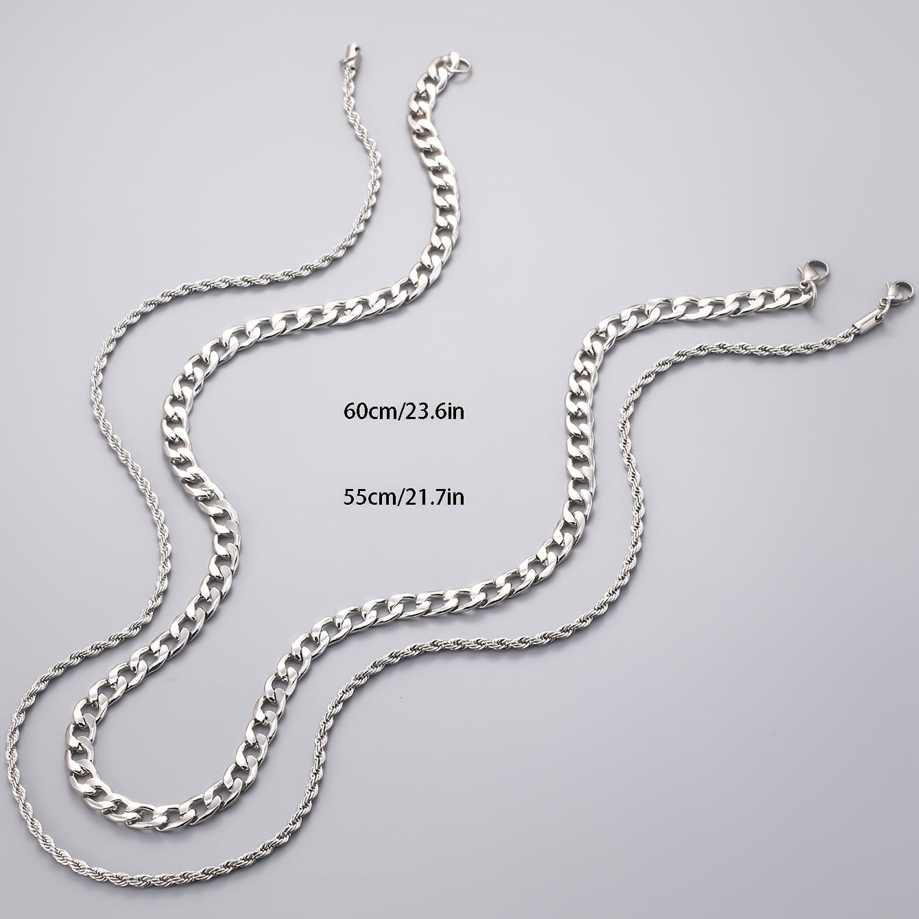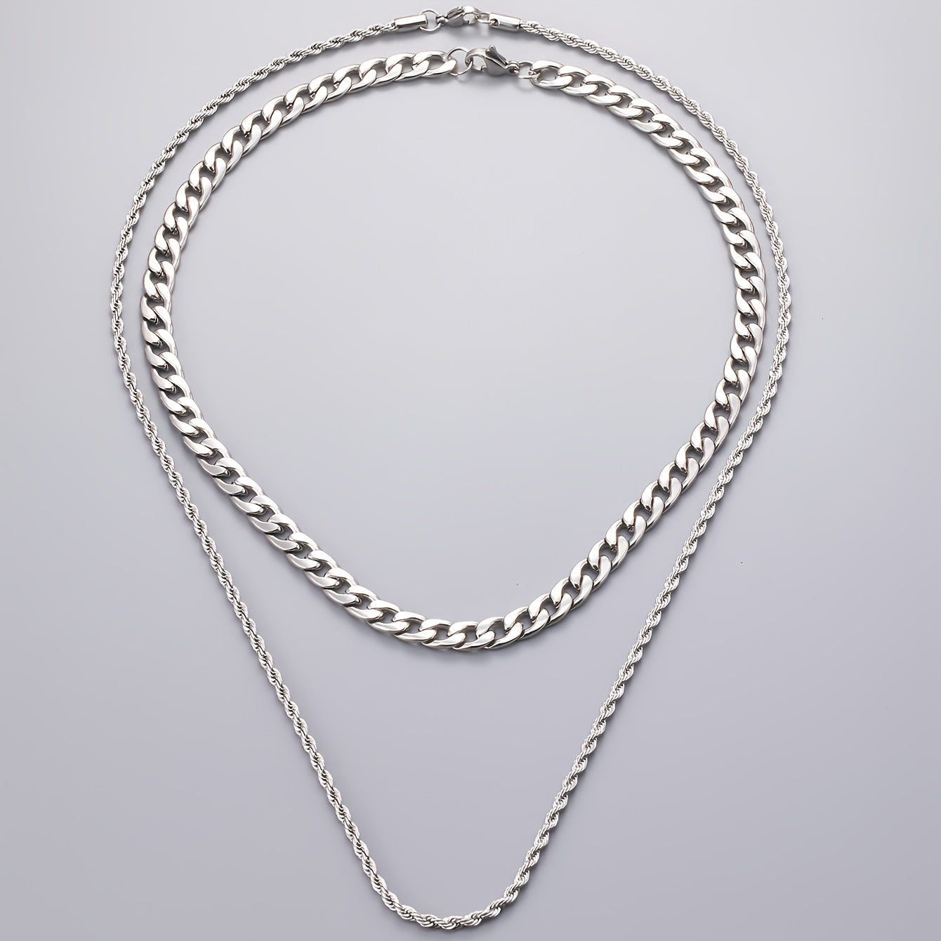 Enhance your style with this set of two stainless steel necklaces for men. Perfect for everyday wear or special occasions.