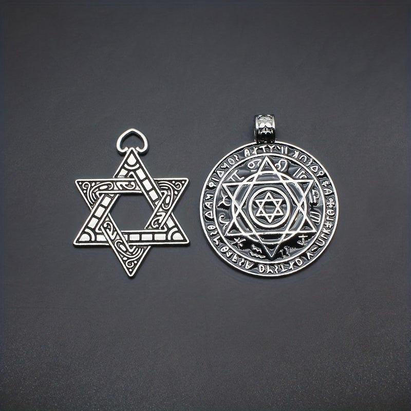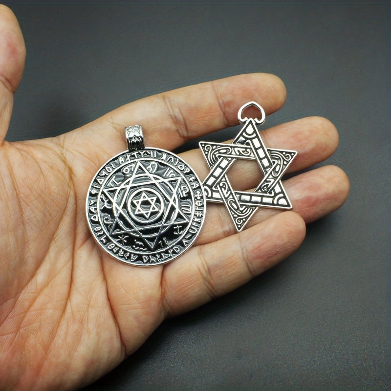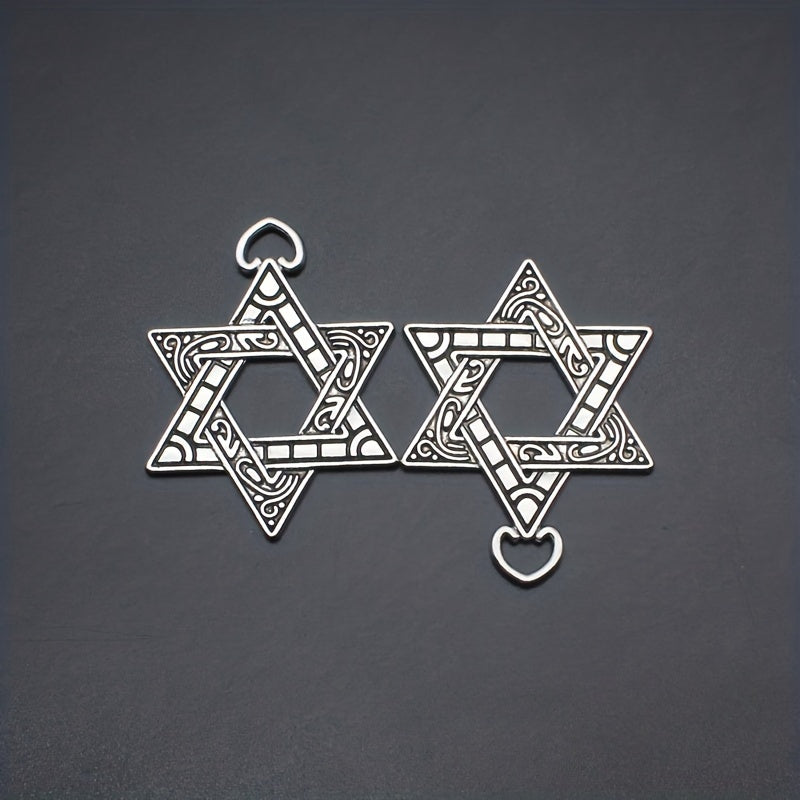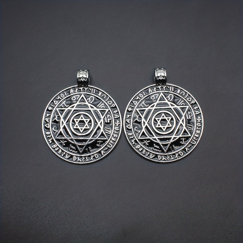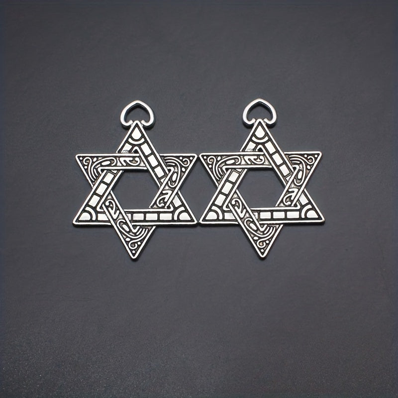 Enhance your style with these retro silvery rune word decor hexagram pendants. Perfect for DIY projects into necklaces or keychains.
