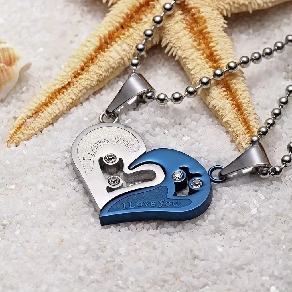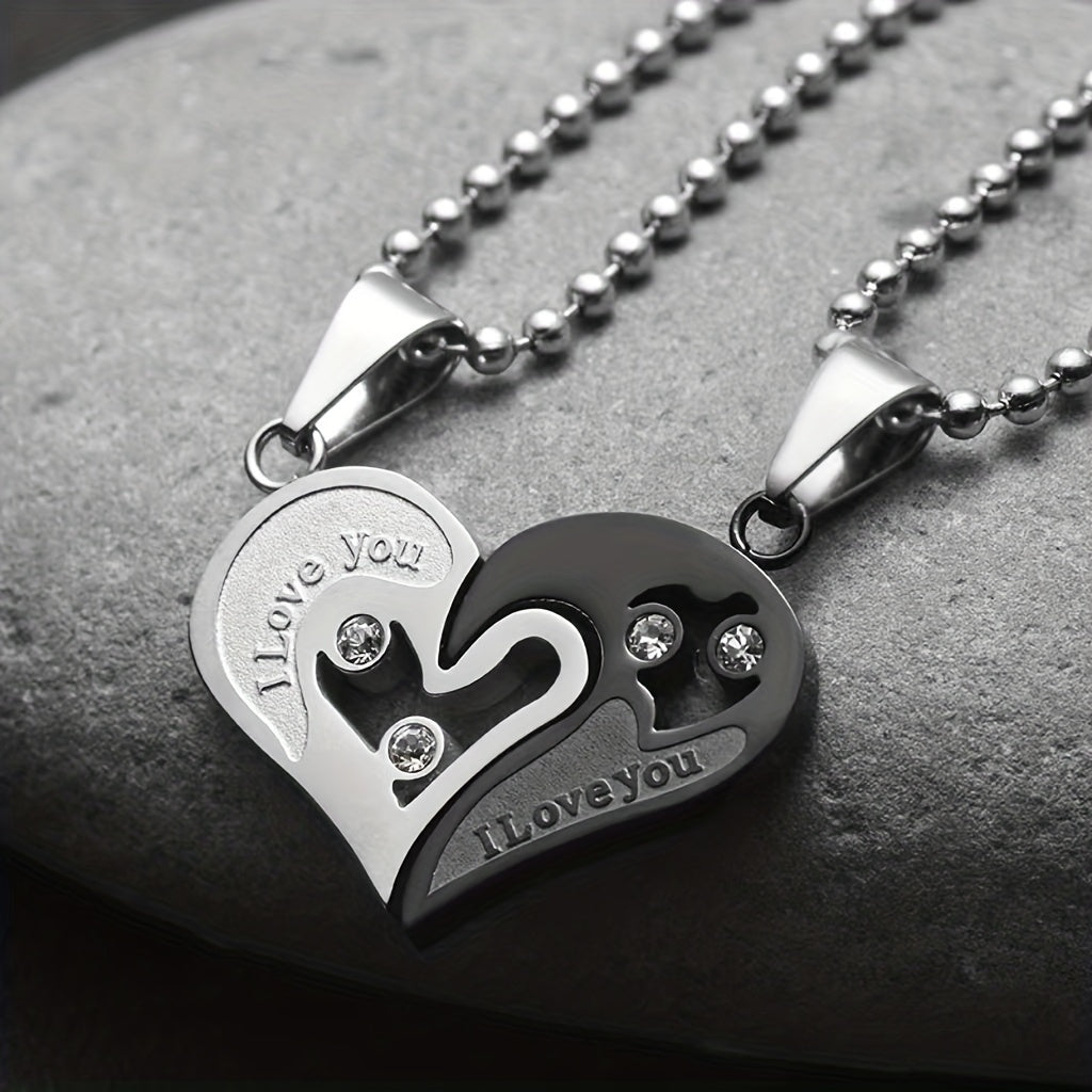 Express your love with this set of 2 stainless steel necklaces featuring a heart design. Ideal for couples, these necklaces symbolize love and unity.