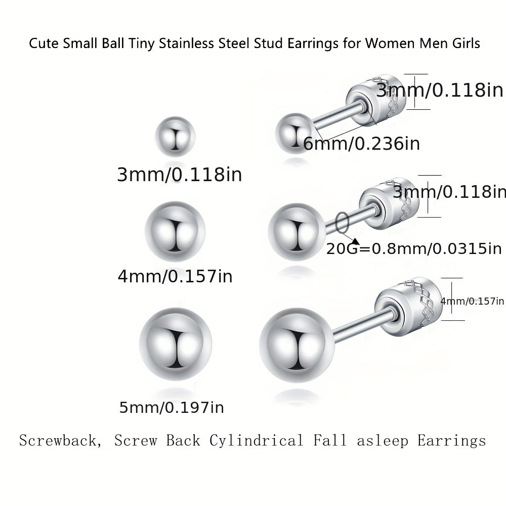 3 Pairs Stainless Steel Stud Earring Hypoallergenic