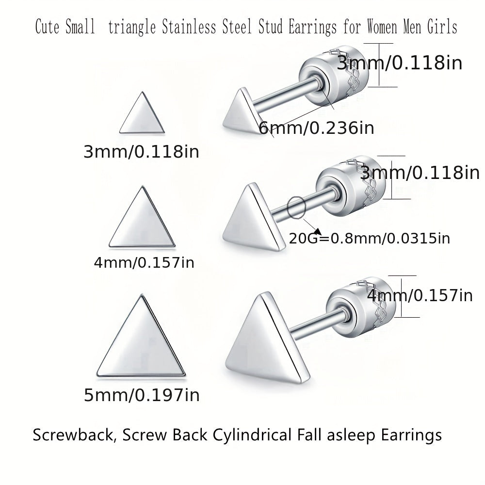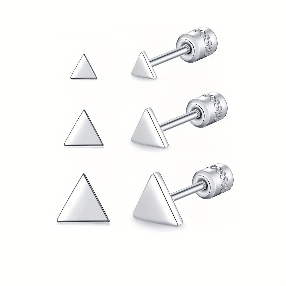 • Includes 3 pairs of stud earrings in triangle and spherical designs