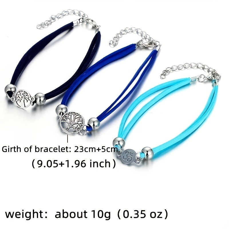 Elevate your summer look with this 3-piece boho style anklet set. Made with PU leather, these ankle bracelets are perfect for the beach and add a touch of unique style to your outfit.