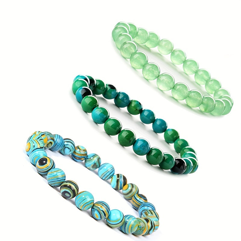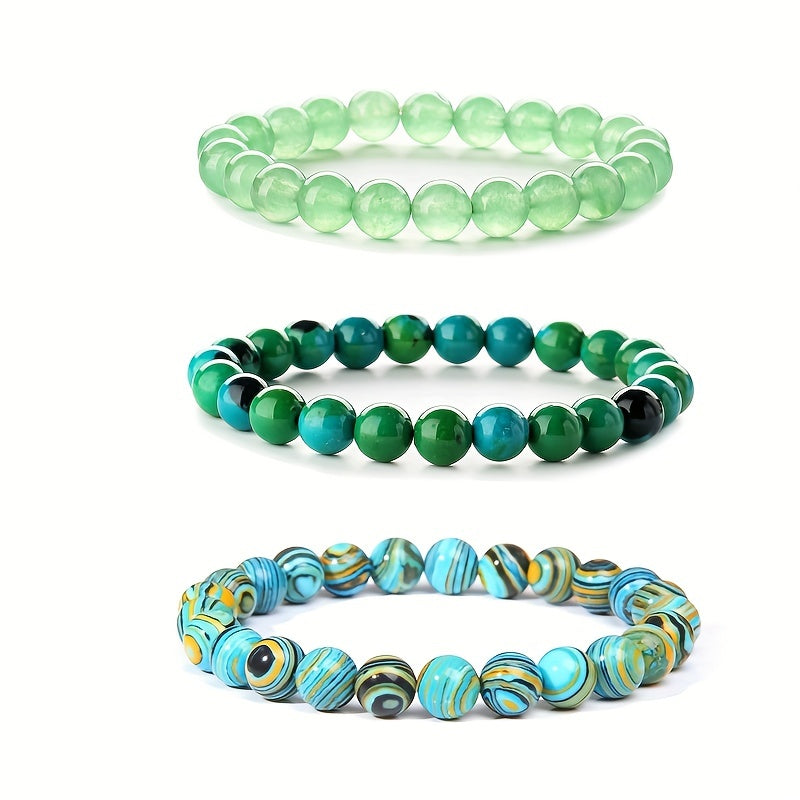 This 3-piece set includes elastic healing stone beaded bracelets designed for men. They are perfect for yoga and healing practices.