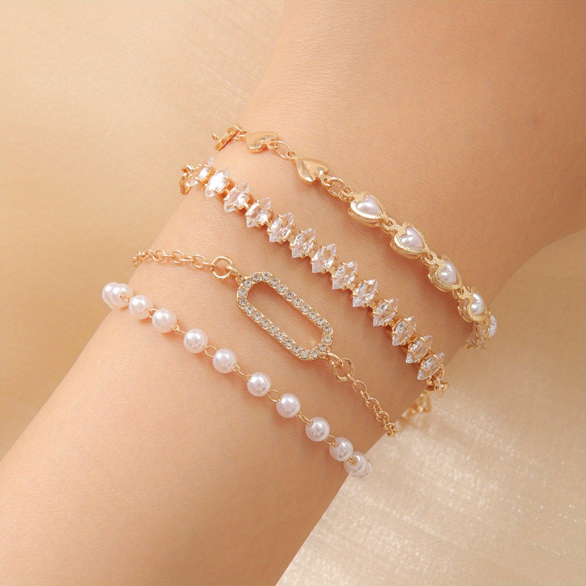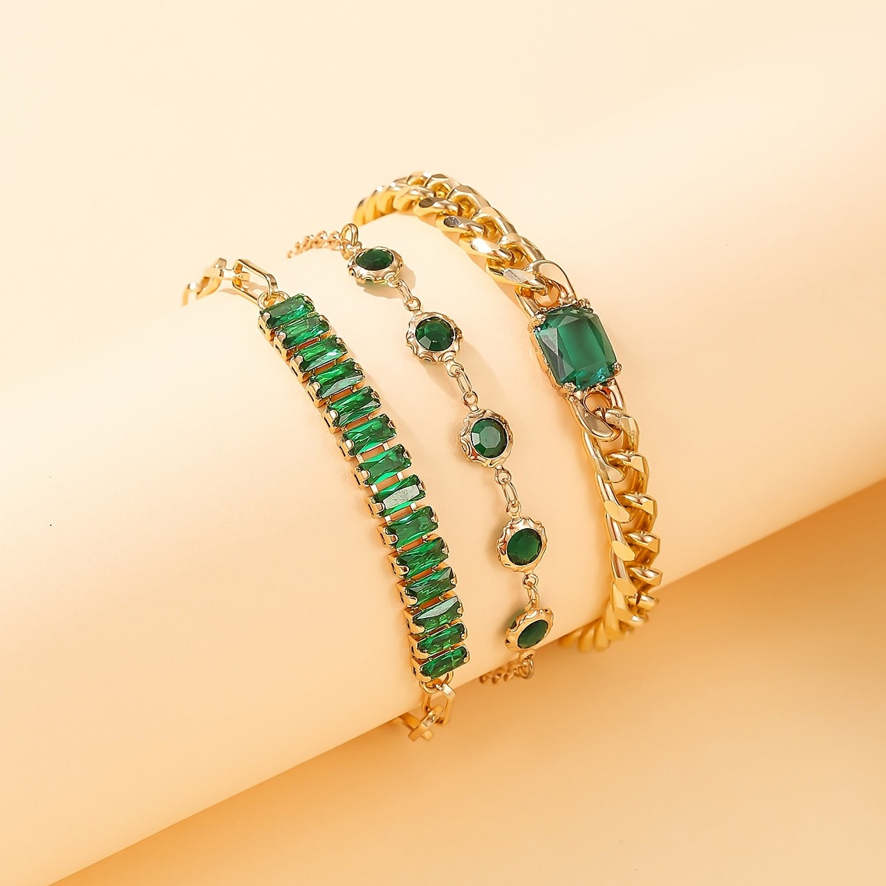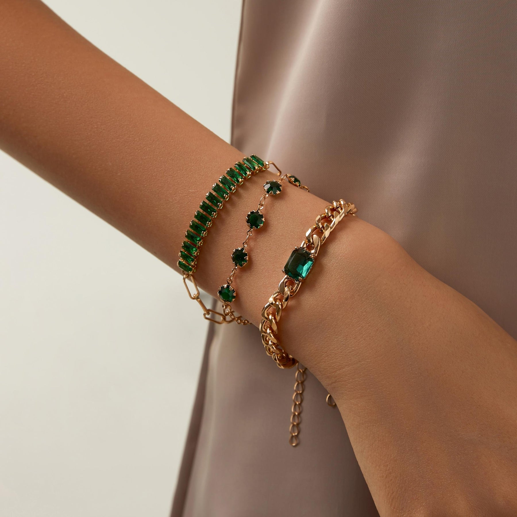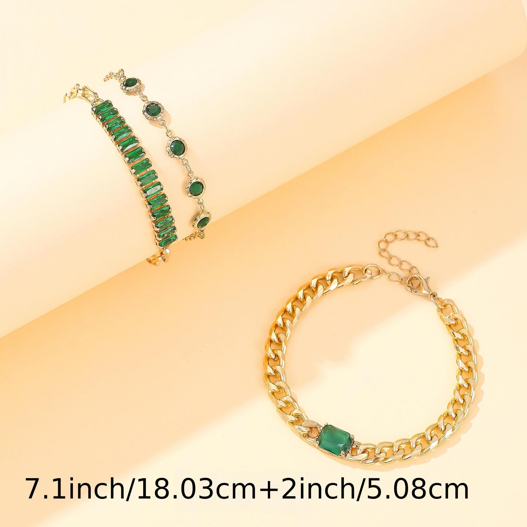 Add a touch of elegance with this 3-piece bracelet set featuring square shaped synthetic gemstones on a hollow chain. Perfect for women and girls at banquets or as everyday jewelry decor.