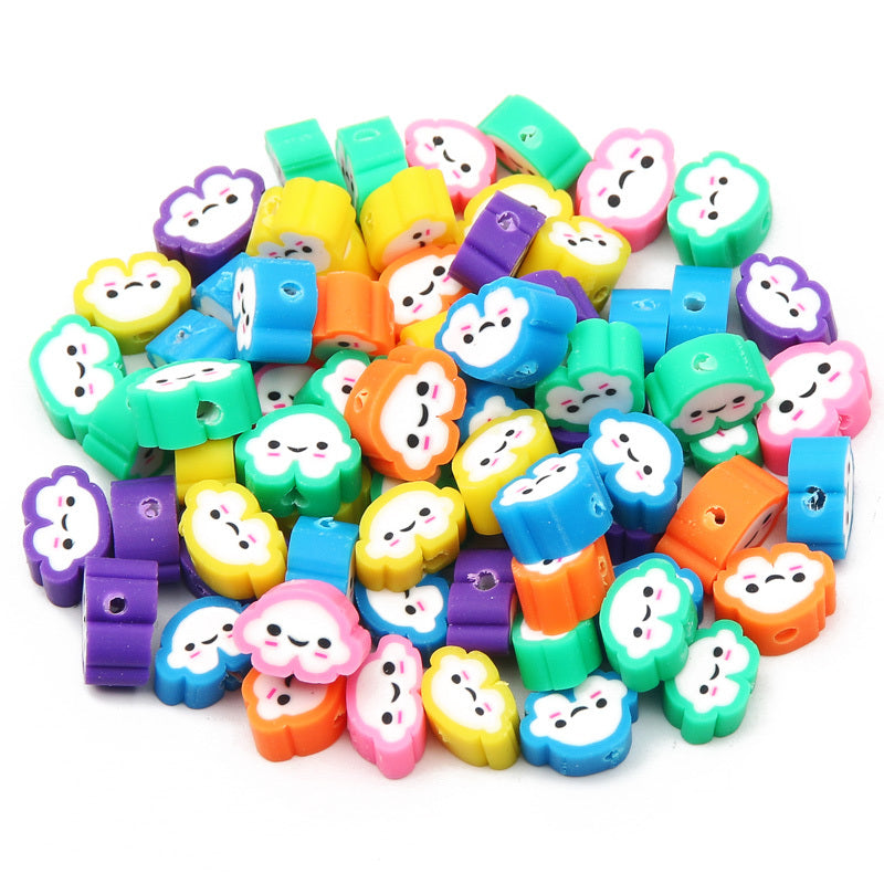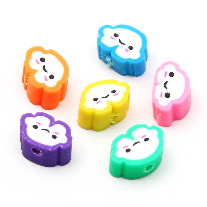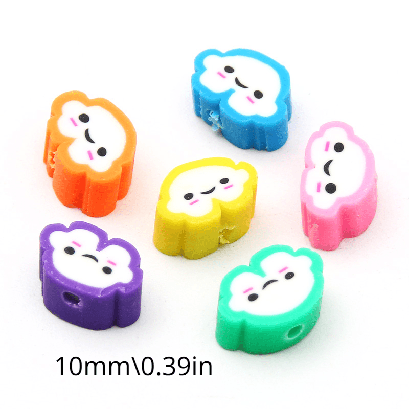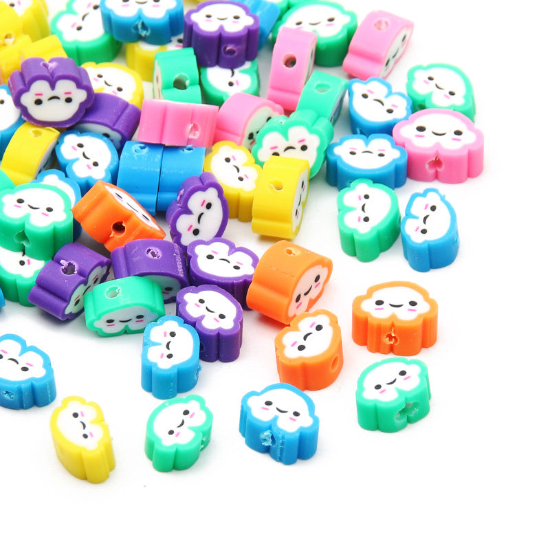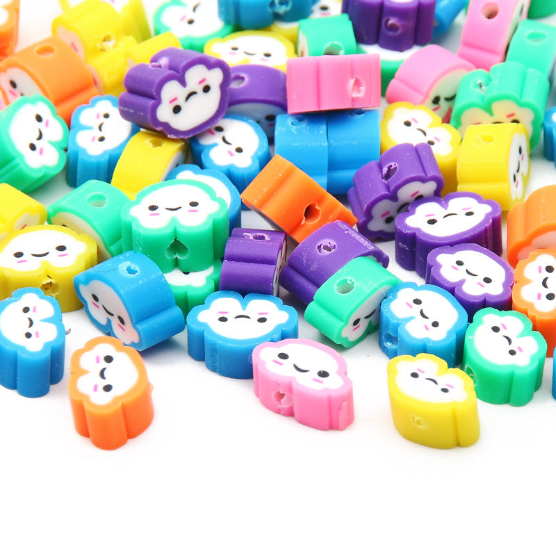 Create adorable jewelry pieces with this set of 30 mixed cartoon clouds polymer clay beads. Perfect for DIY bracelets and necklaces. Material: Polymer Clay.