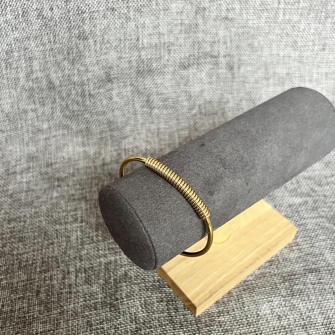 Elegant 304 stainless steel bangle bracelet with golden spring design. Perfect for adding a touch of glamour to any outfit. Adjustable to fit various wrist sizes.