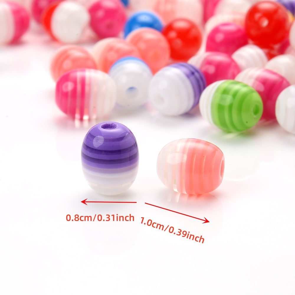 These acrylic beads are perfect for creating bracelets, necklaces, and DIY accessories. Each bead measures 8x10mm (0.31-0.39inch) with a double stripe design.