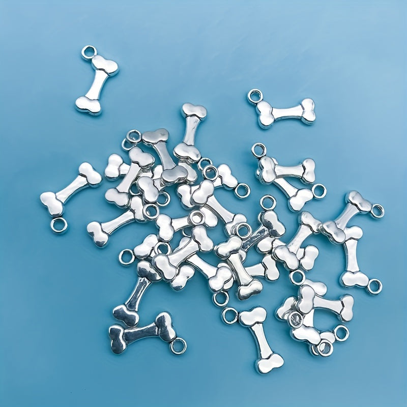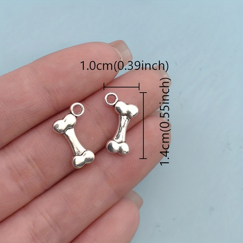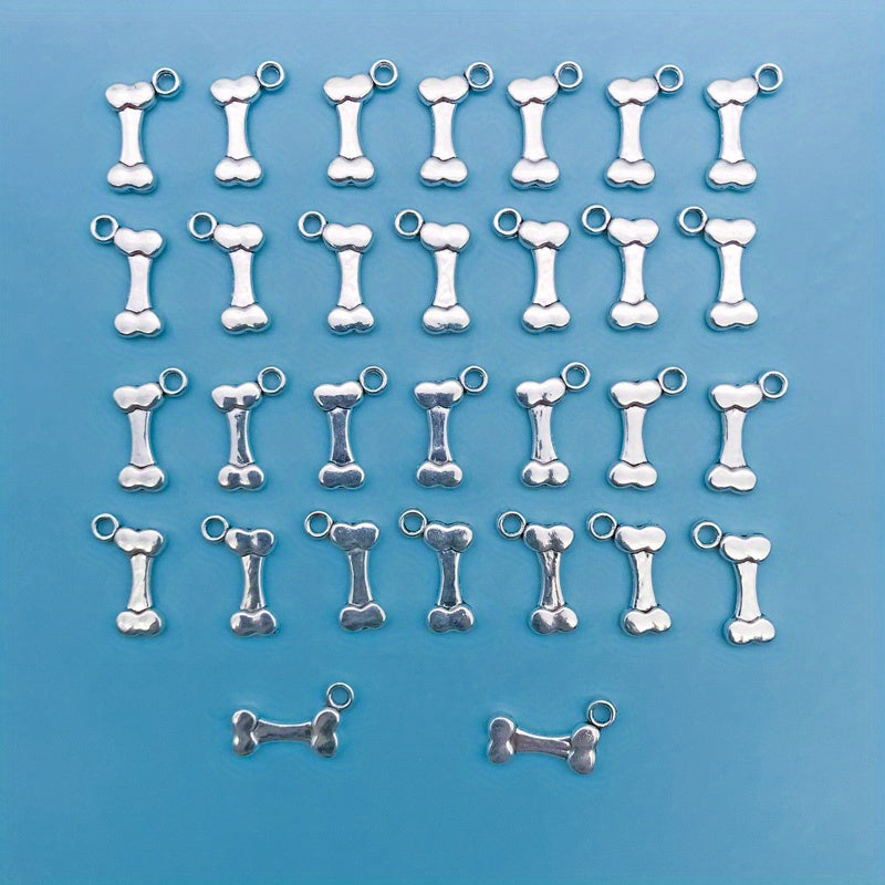 This pack includes 30 pieces of zinc alloy antique silver bone shape charms pendants, perfect for creating necklaces, bracelets, earrings, and other jewelry items. The charms are 14x10mm in size.