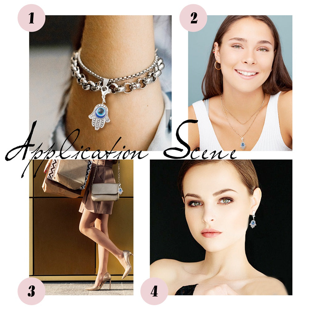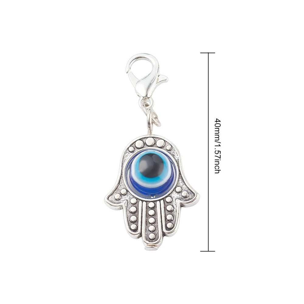 30Pcs Antique Silver & Platinum Hamsa Hand Evil Eye Pendants 40mm