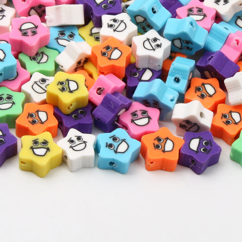 Add a touch of color and fun to your jewelry projects with these colorful expression star pattern polymer clay spacer beads. Perfect for bracelets, necklaces, and more.