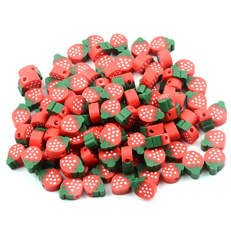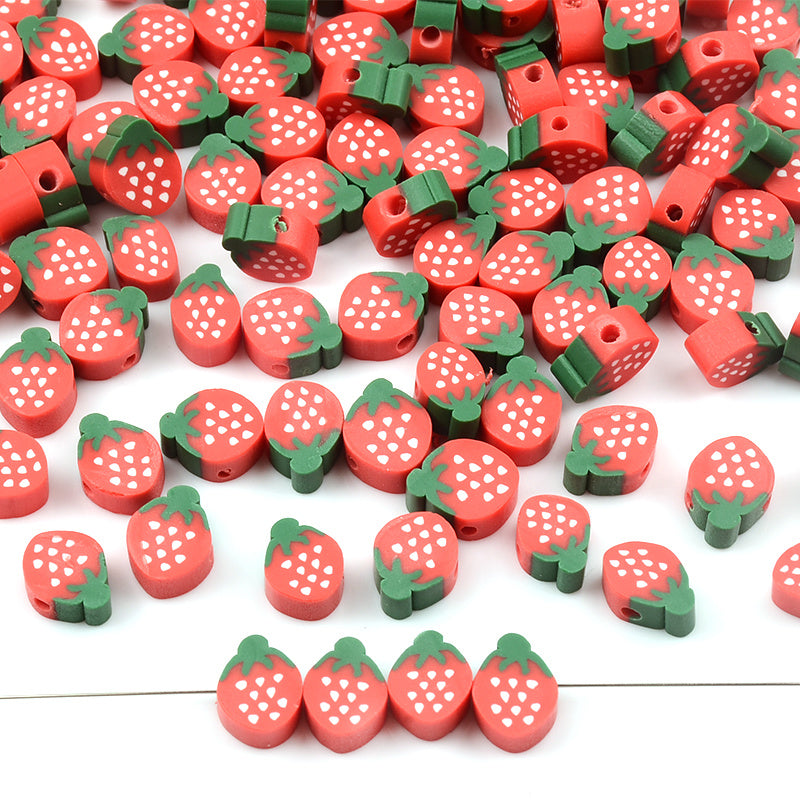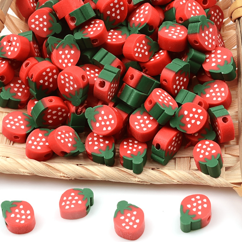 Create adorable jewelry pieces with these funky red strawberry clay beads. Ideal for making necklaces, bracelets, and other crafts.