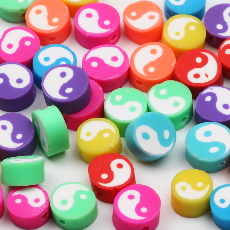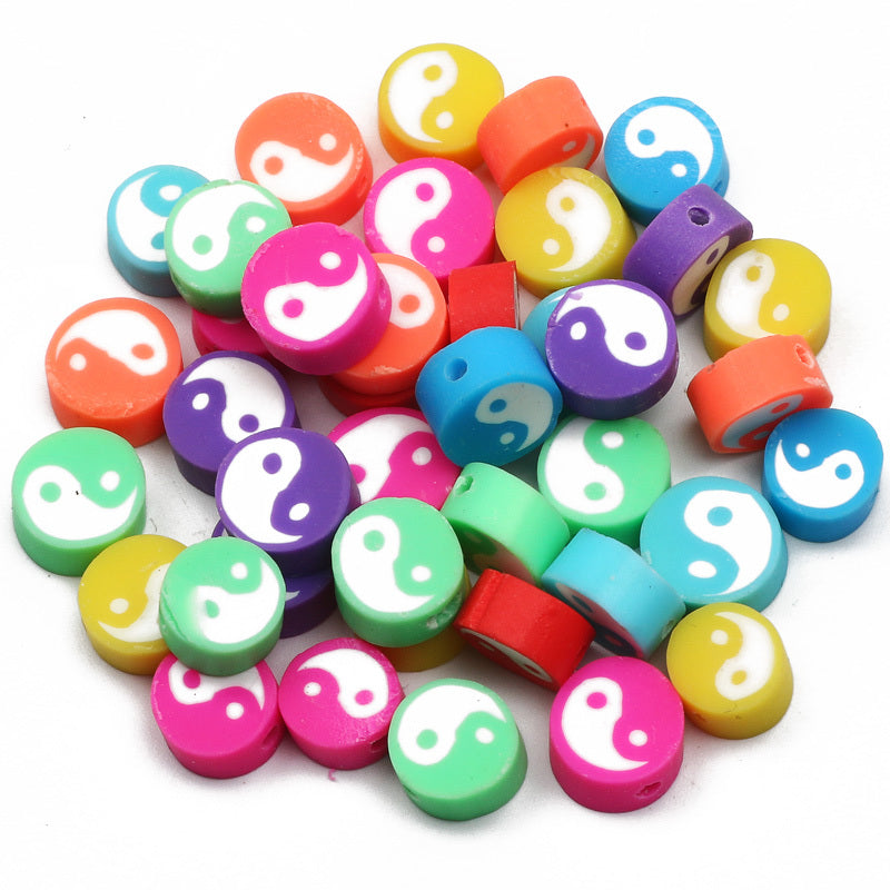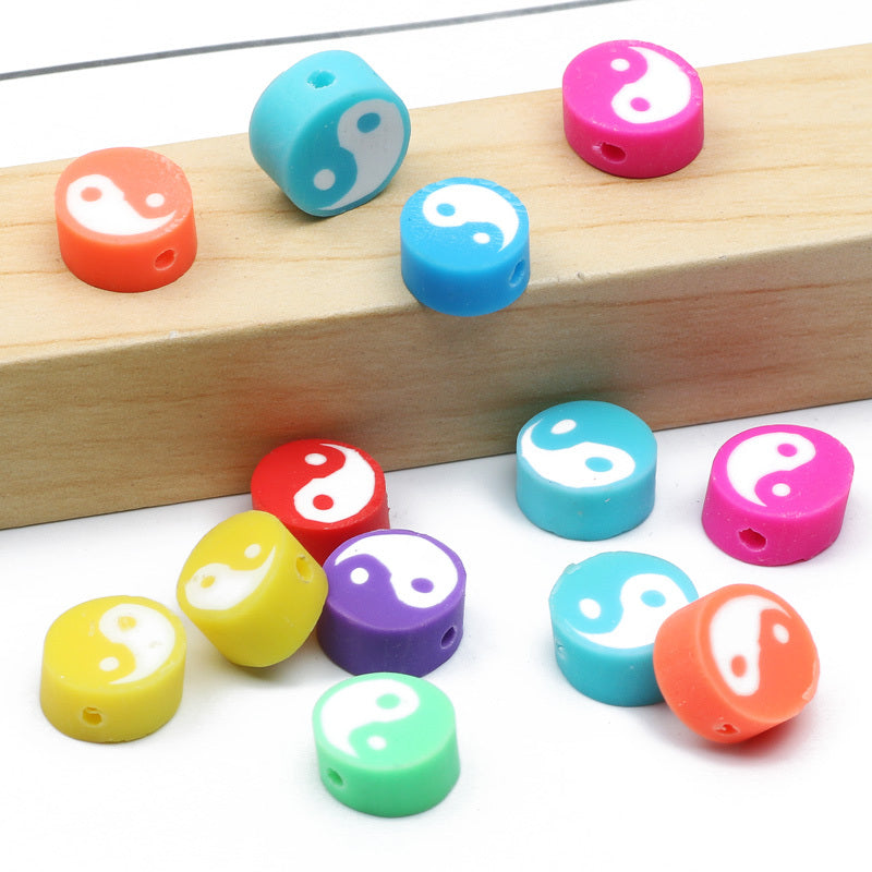 Create unique jewelry with this set of 30 mixed Tai Chi Yin Yang clay round beads. Ideal for necklaces, bracelets, and other craft projects.