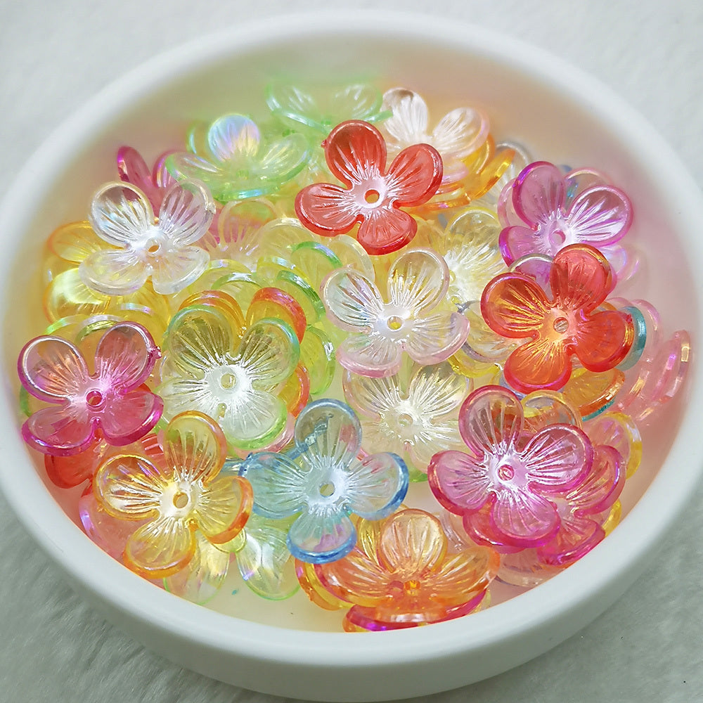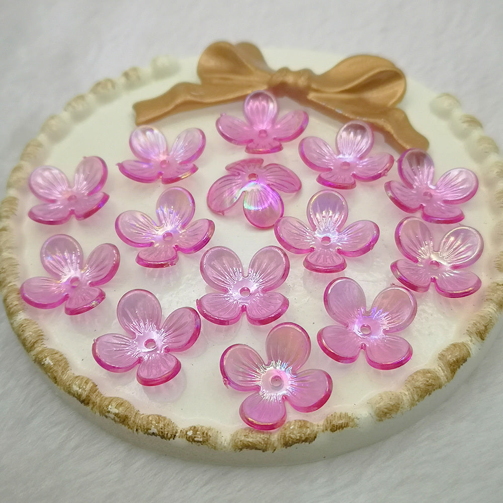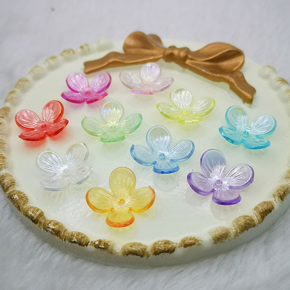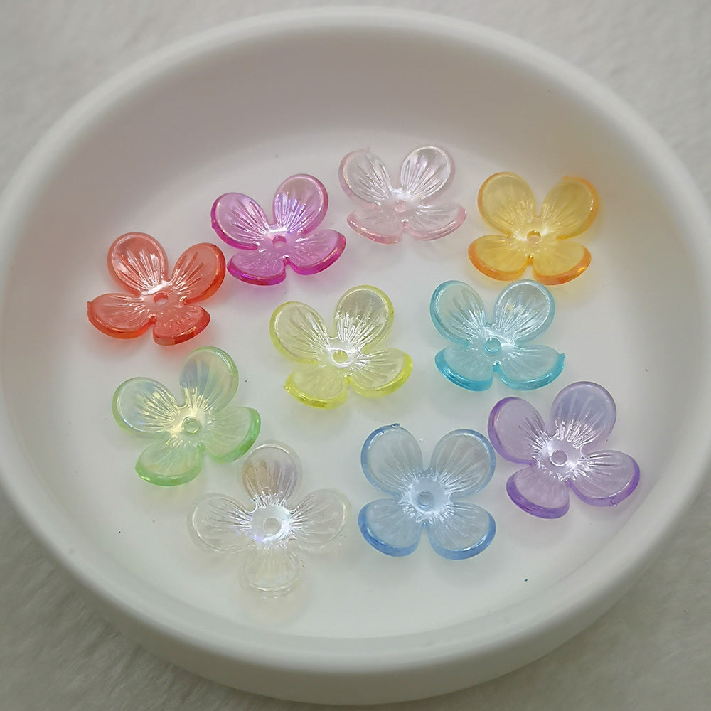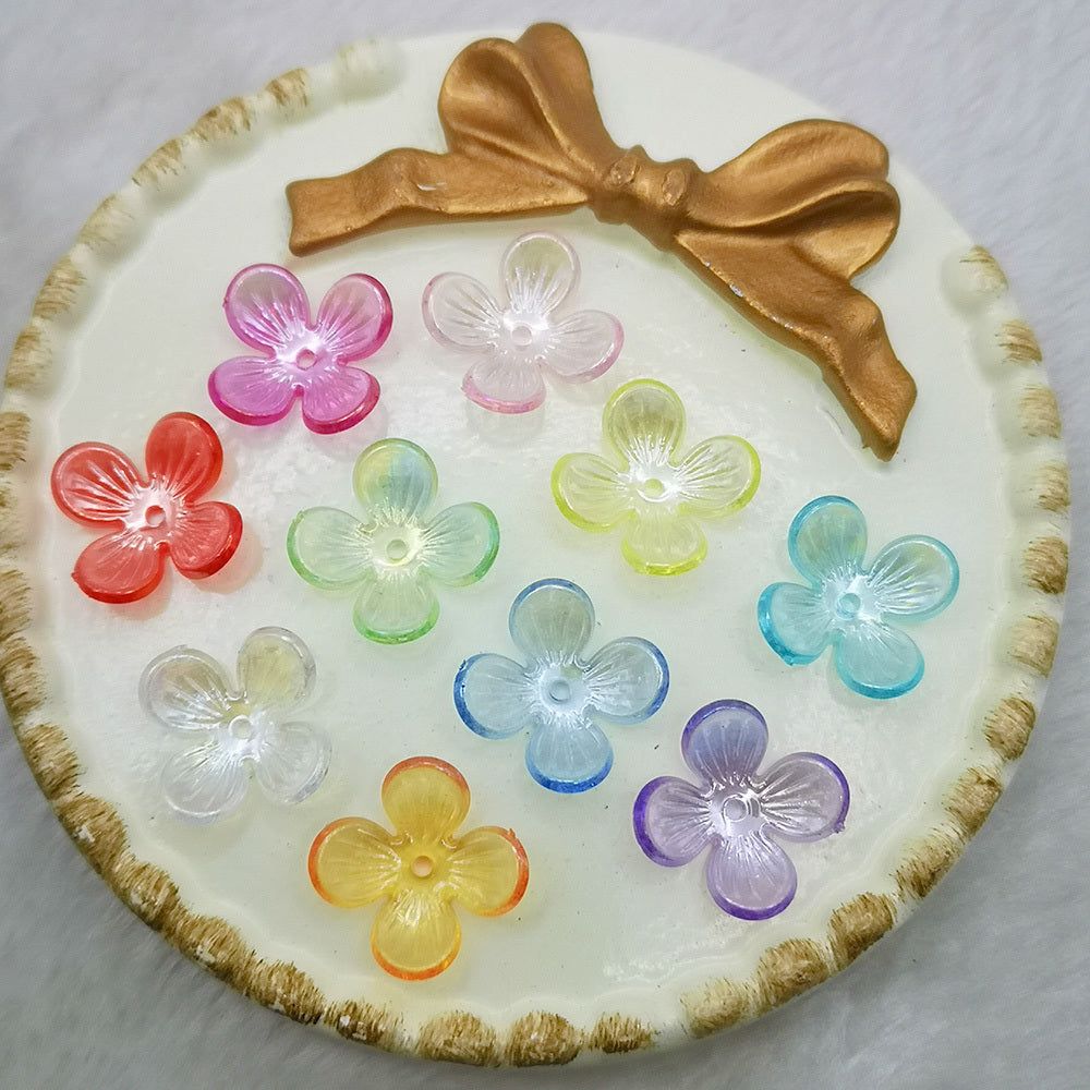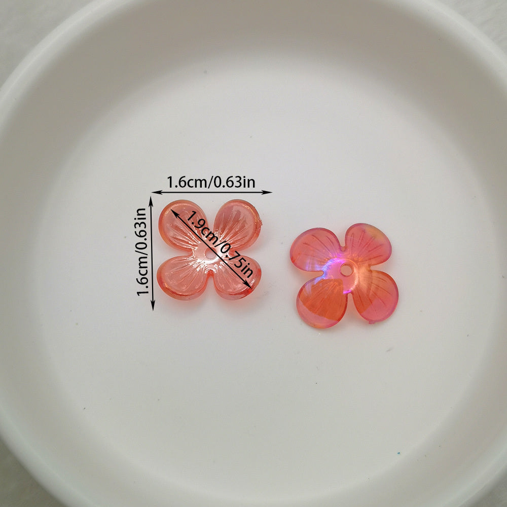 These 1.0 inch transparent four petal flower acrylic beads are perfect for creating jewelry, hairclips, keychains, phone chains, and decorative pendants.
